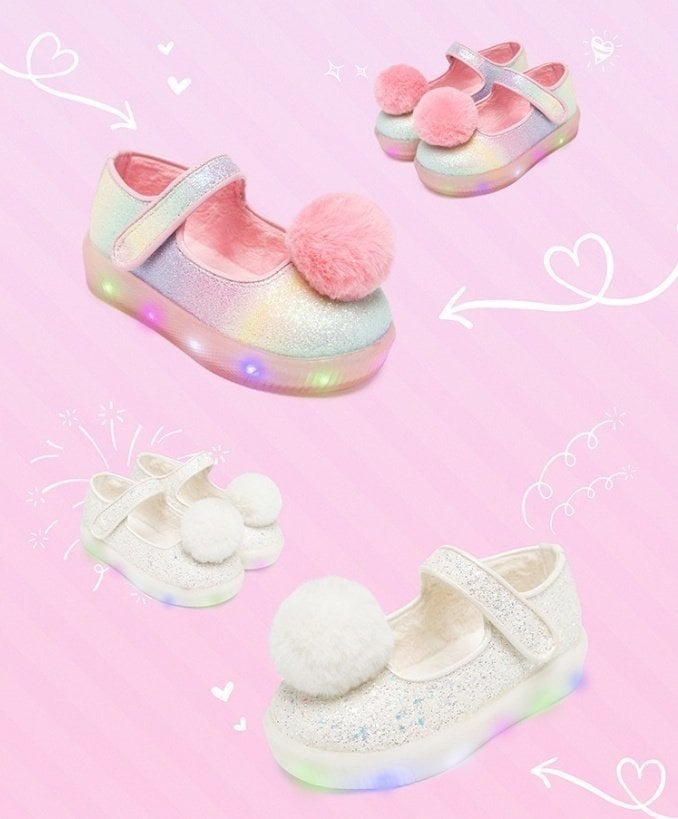 🇰🇷預訂 韓國直送🇰🇷LA STELLA兩色大毛毛球閃粉幻彩閃燈鞋