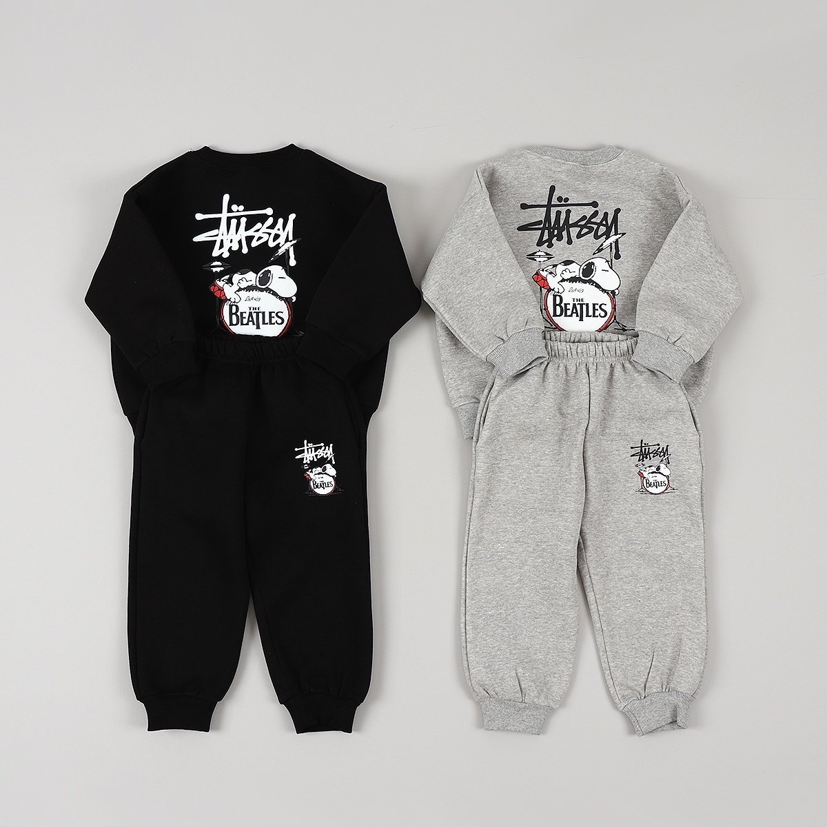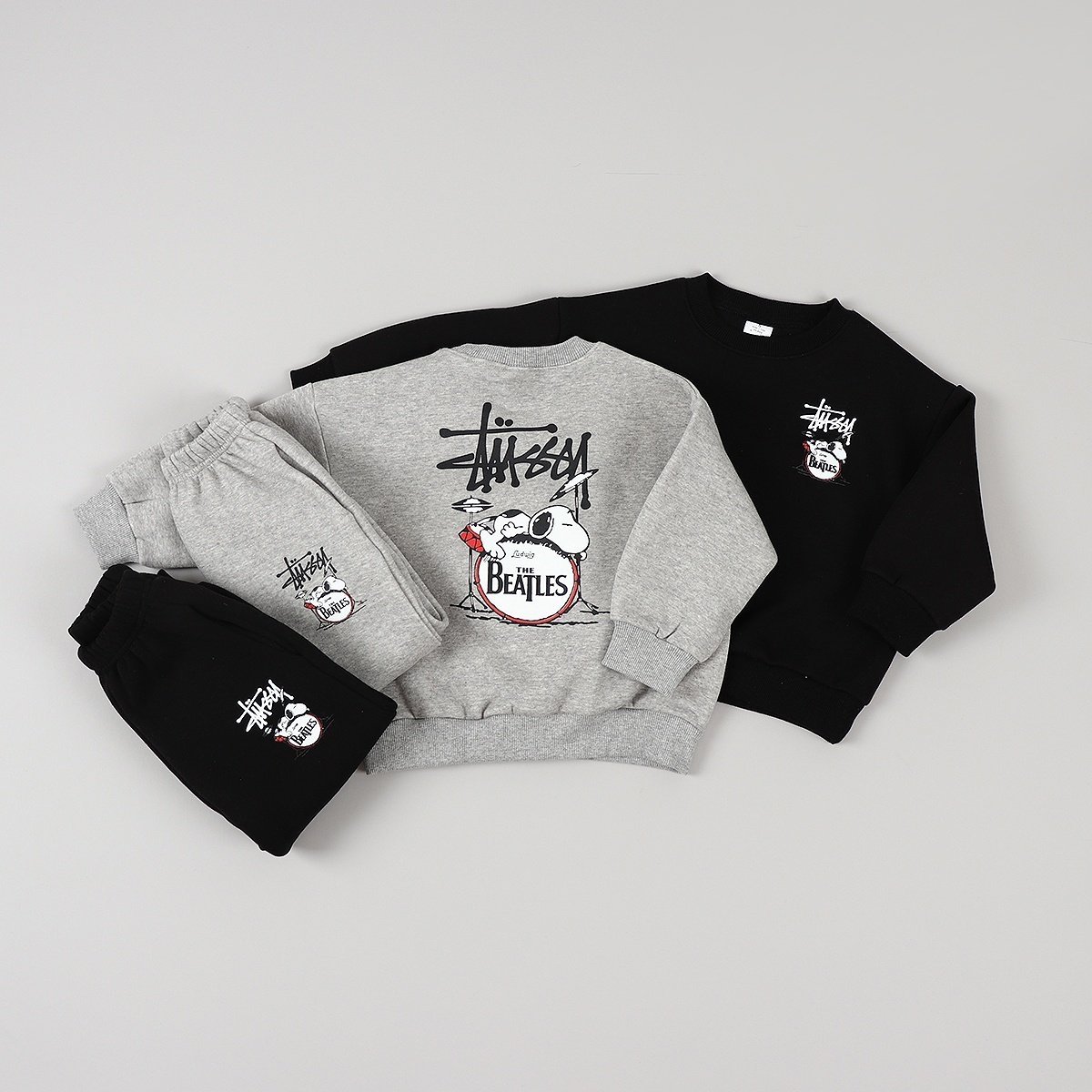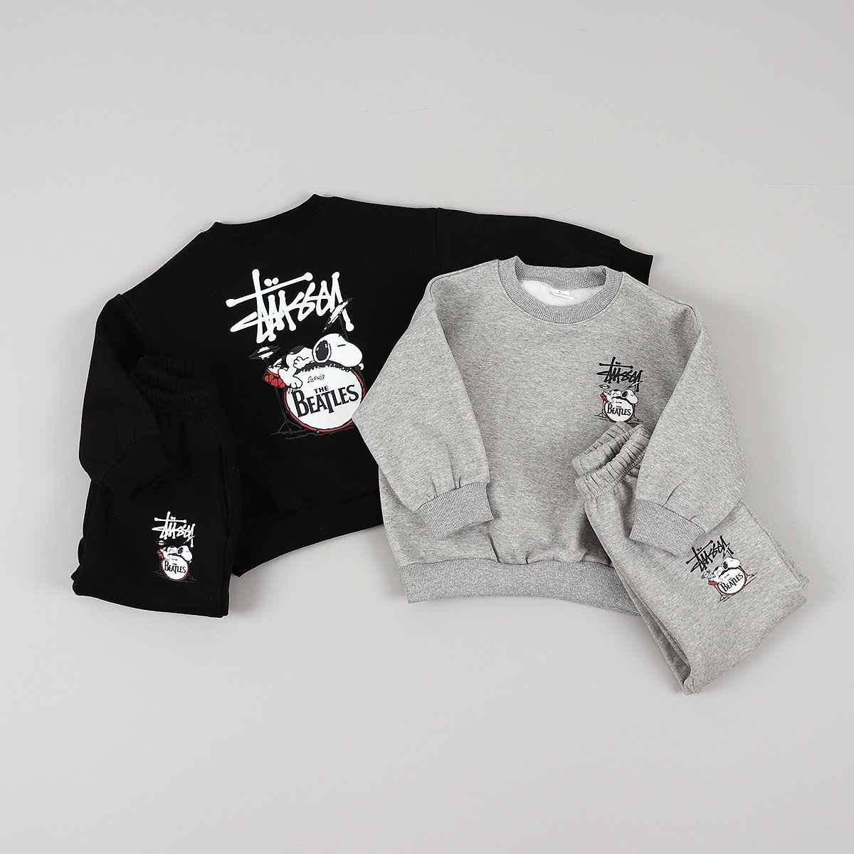 ❄️預訂 韓國直送❄️韓國翻玩系列兩色Stussy x Snoopy前後印花寬鬆拉絨衛衣套裝
