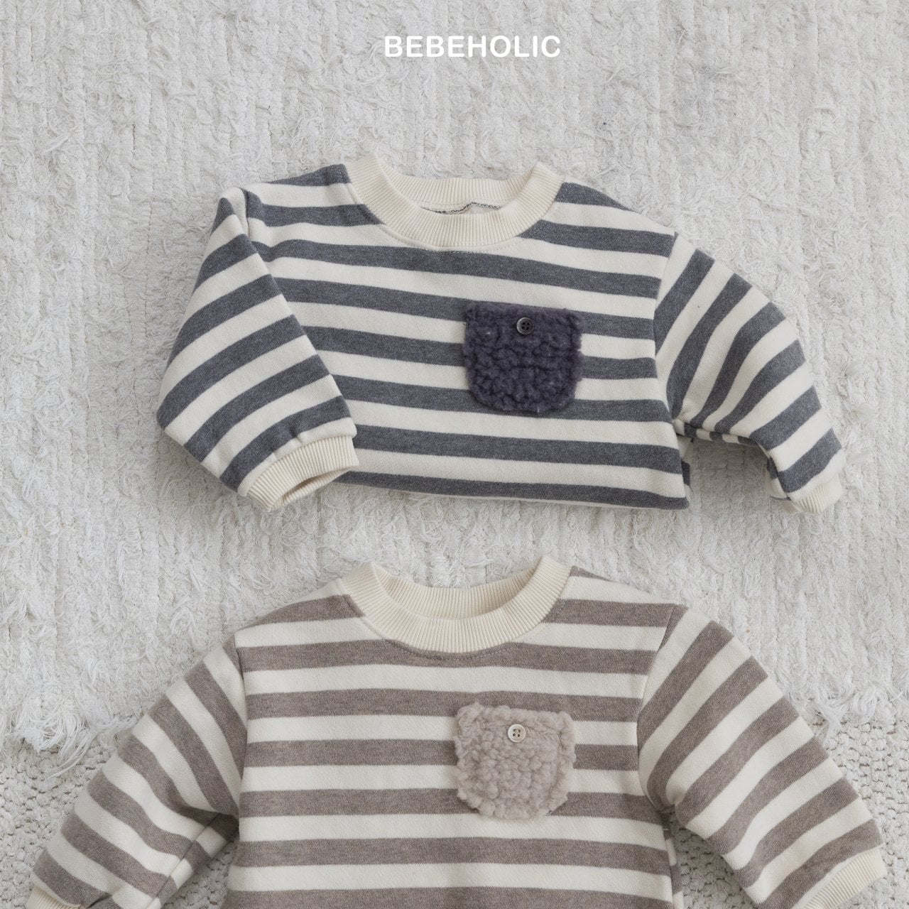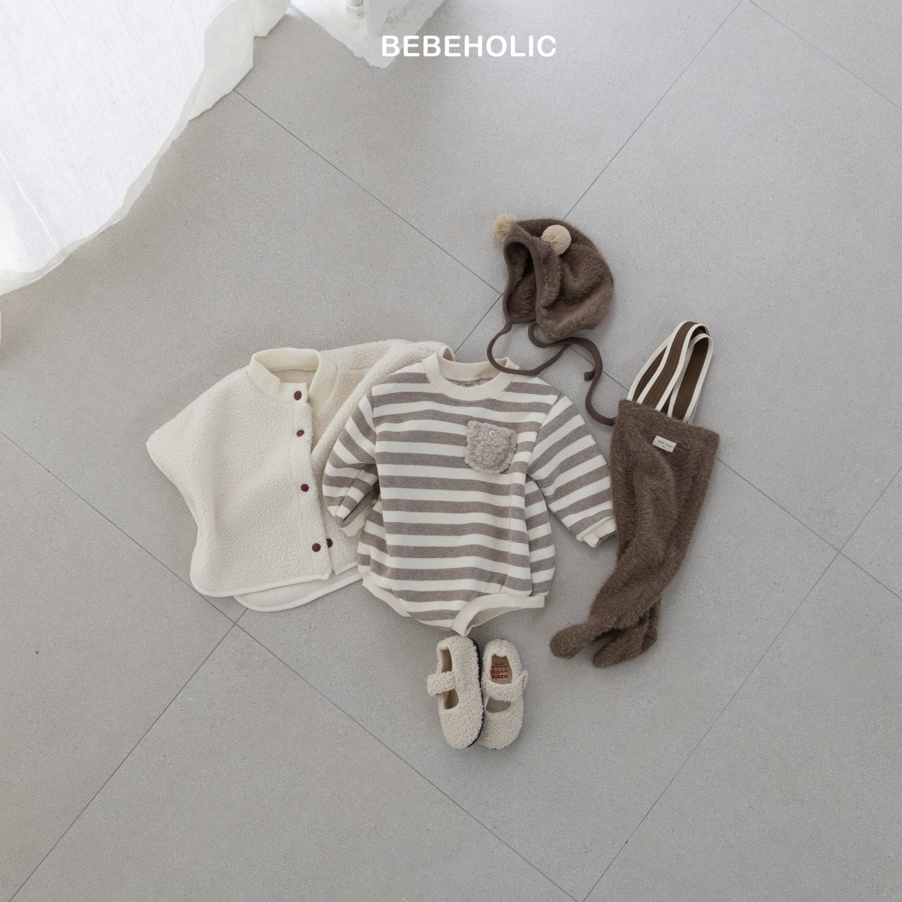 ❄️預訂 韓國直送❄️🇰🇷BEBEHOLIC兩色毛毛口袋條紋抓絨長袖包屁衣