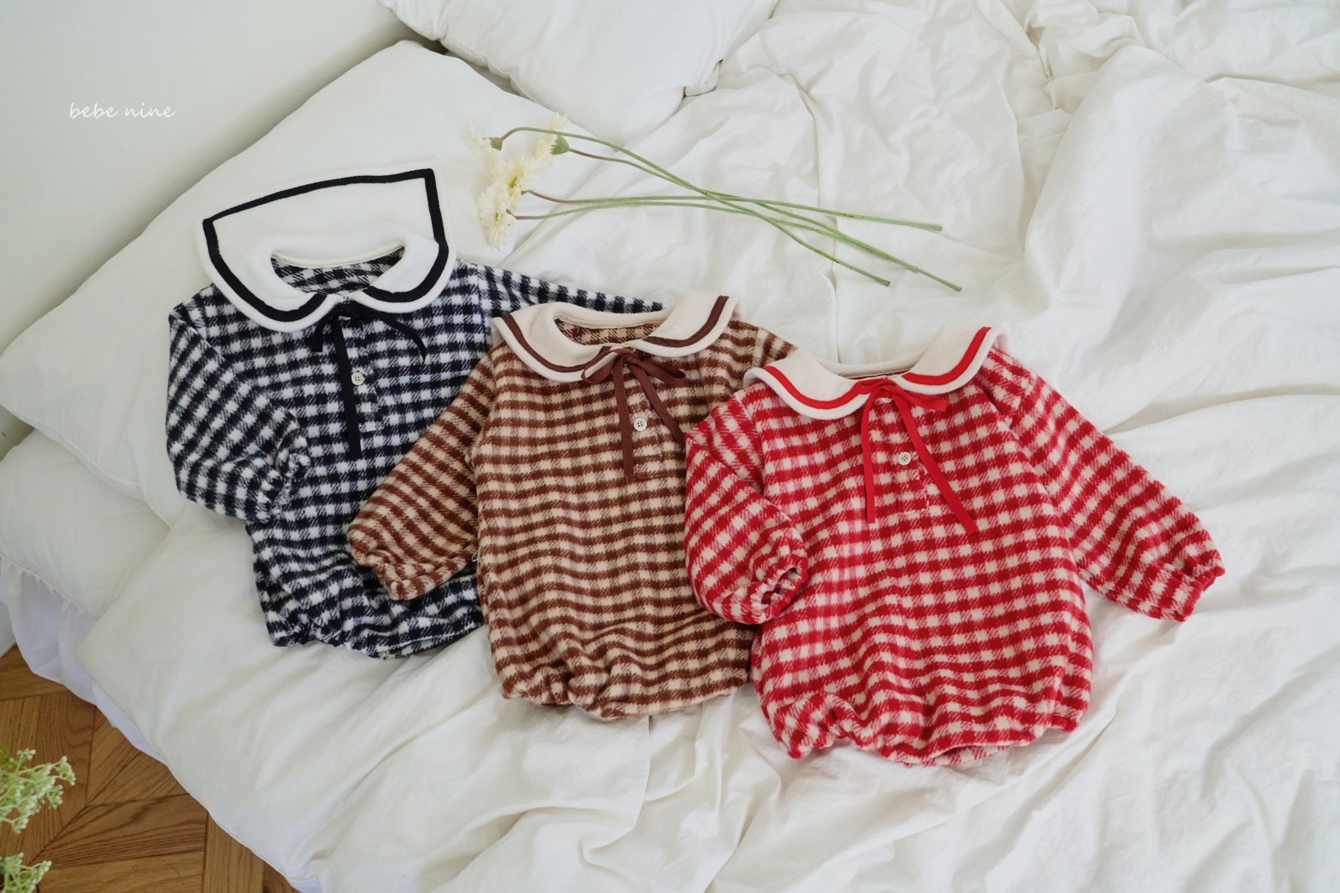 ❄️預訂 韓國直送❄️🇰🇷Bebenine三色水手領格紋長袖包屁衣