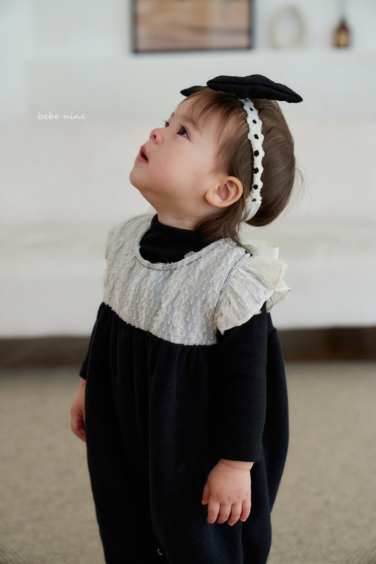 ❄️預訂 韓國直送❄️🇰🇷Bebenine三色蕾絲花邊後背大絲帶連身服 *不包括其他服飾及配件 🚚預計貨期:約14-21個工作日 (貨期有機會提早或延遲) 🎨顏色:象牙|灰色|黑色 📐尺碼:12m(80)|18m(90) 聚酯纖維 100% MADE IN KOREA🇰🇷 📦熱門貨品將跟據客人付款先後次序分配💞 🔺如產品出現斷貨將會全數退回🔺 ⚠️除非有列明 否則不包含其他服飾及配飾