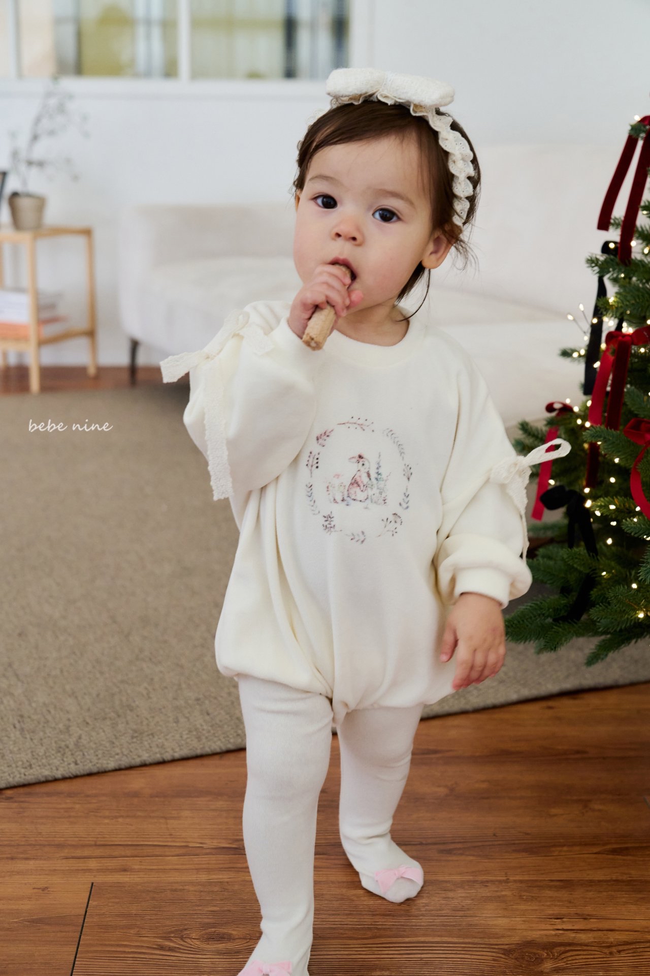 ❄️預訂 韓國直送❄️🇰🇷Bebenine兩色小兔印花側絲帶長袖包屁衣