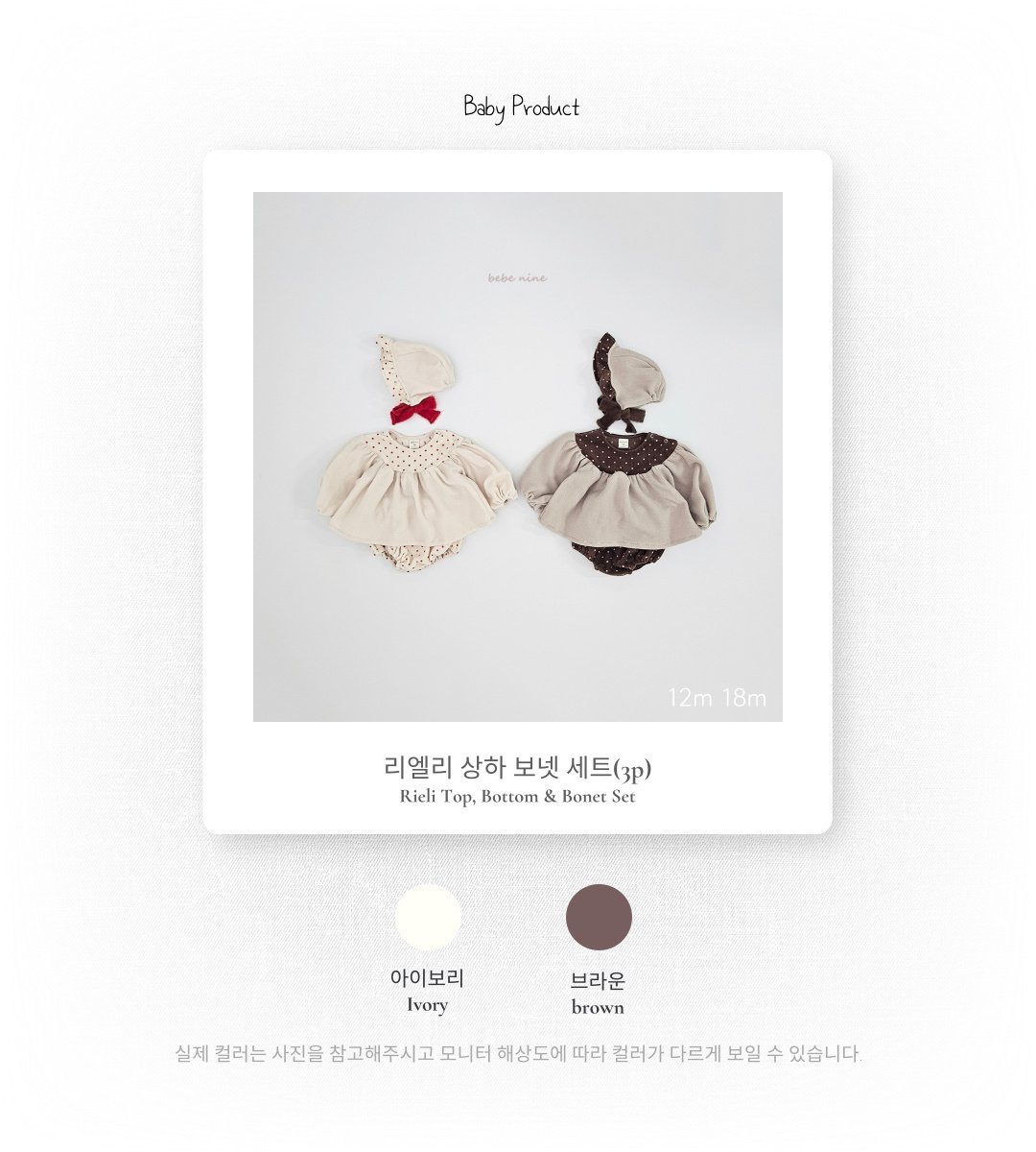 ❄️預訂 韓國直送❄️🇰🇷Bebenine兩色波點毛絨上衣燈籠褲套裝 *不包括其他服飾及配件 🚚預計貨期:約14-21個工作日 (貨期有機會提早或延遲) 🎨顏色:棕色|象牙 📐尺碼:12m(80)|18m(90) 聚酯纖維 100% MADE IN KOREA🇰🇷 📦熱門貨品將跟據客人付款先後次序分配💞 🔺如產品出現斷貨將會全數退回🔺 ⚠️除非有列明 否則不包含其他服飾及配飾