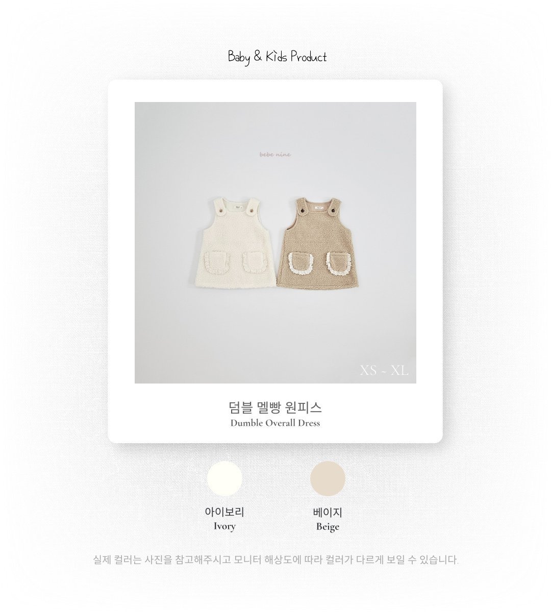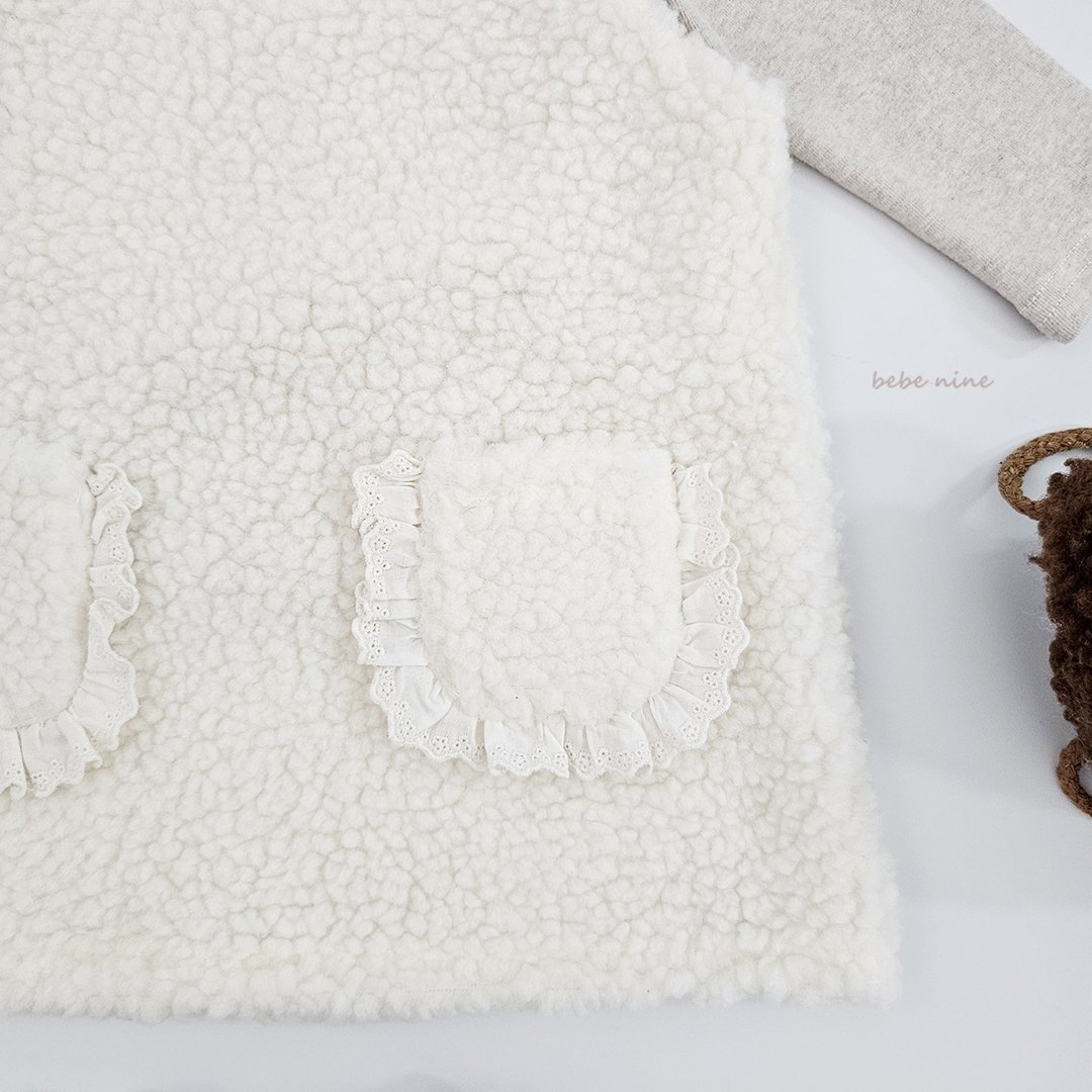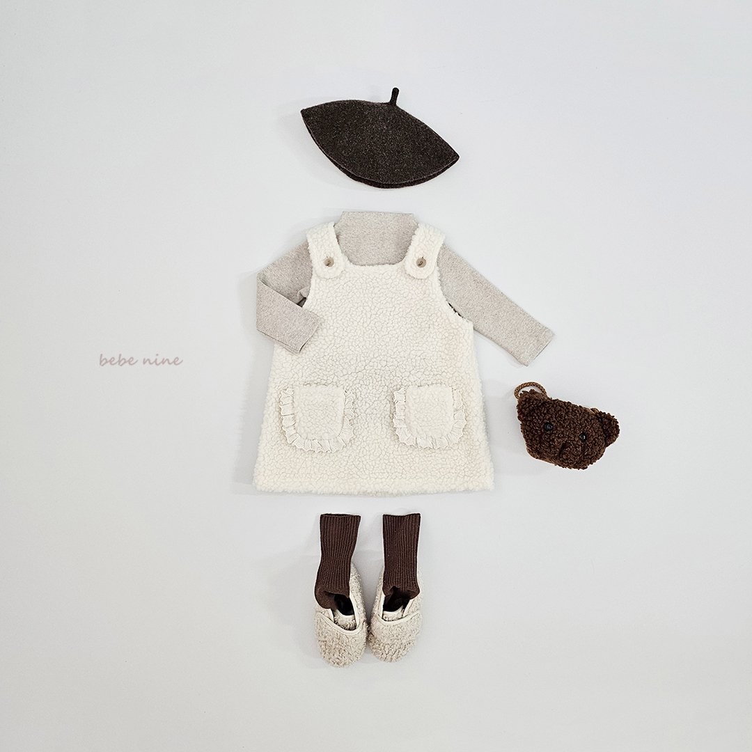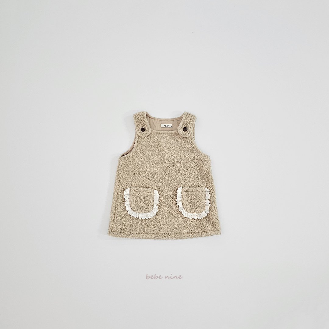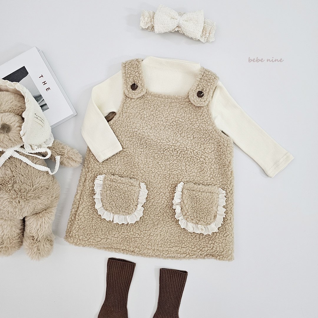 ❄️預訂 韓國直送❄️🇰🇷𝐵𝑒𝑏𝑒𝑛𝑖𝑛𝑒 兩色蕾絲花邊口袋毛絨吊帶連身裙 *不包括其他服飾 🚚預計貨期:約14-21個工作日 (貨期有機會提早或延遲) 🎨顏色:象牙|米色 📐尺碼:XS(80)|S(90)|M(100)|L(110)|XL(120) 聚酯纖維 100% MADE IN KOREA🇰🇷 📦熱門貨品將跟據客人付款先後次序分配💞 🔺如產品出現斷貨將會全數退回🔺 ⚠️除非有列明 否則不包含其他服飾及配飾