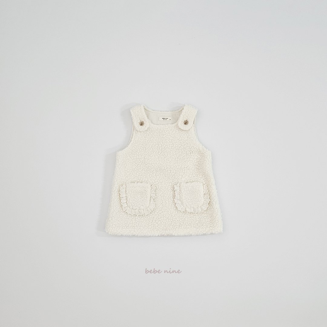 ❄️預訂 韓國直送❄️🇰🇷Bebenine兩色蕾絲花邊口袋毛絨吊帶連身裙