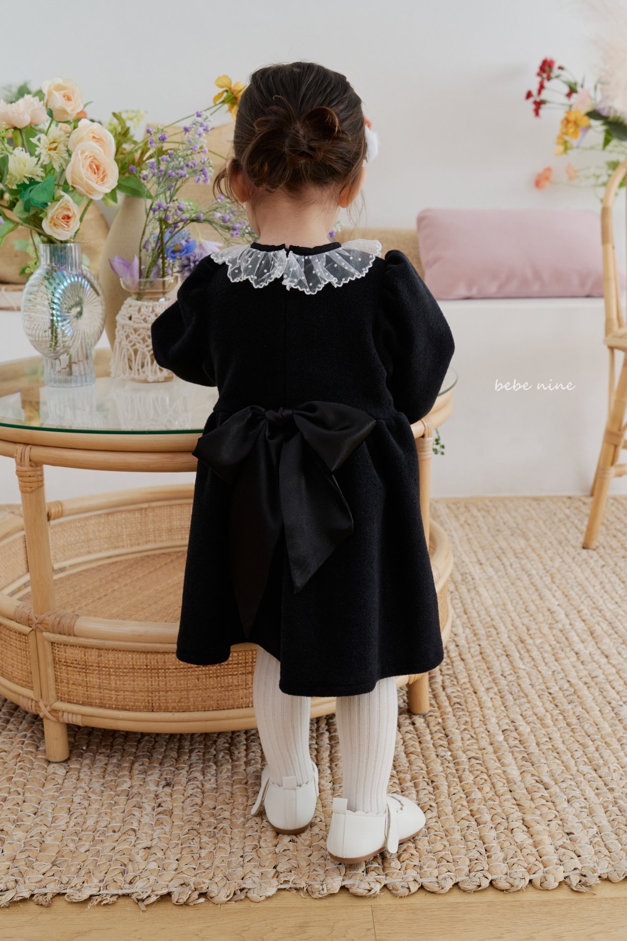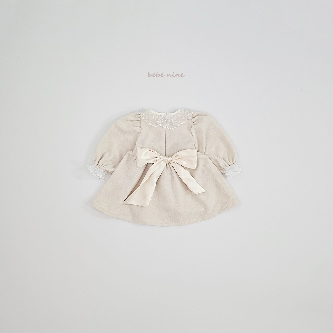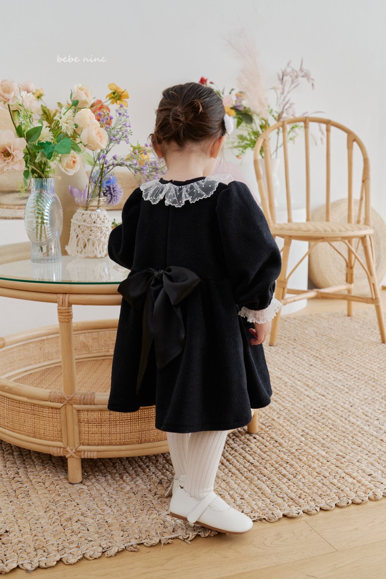 ❄️預訂 韓國直送❄️🇰🇷Bebenine兩色蕾絲領後背大絲帶拉絨長袖連身裙