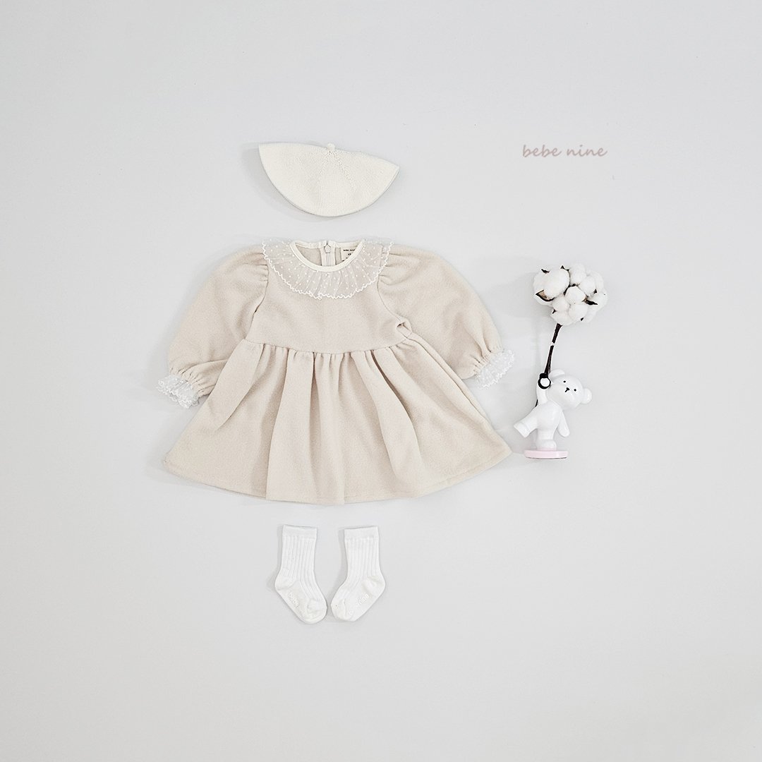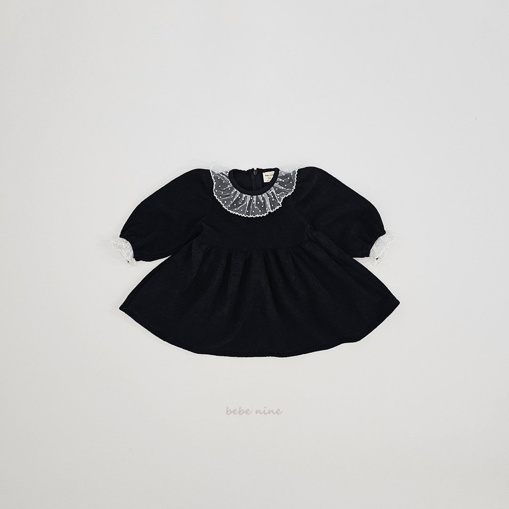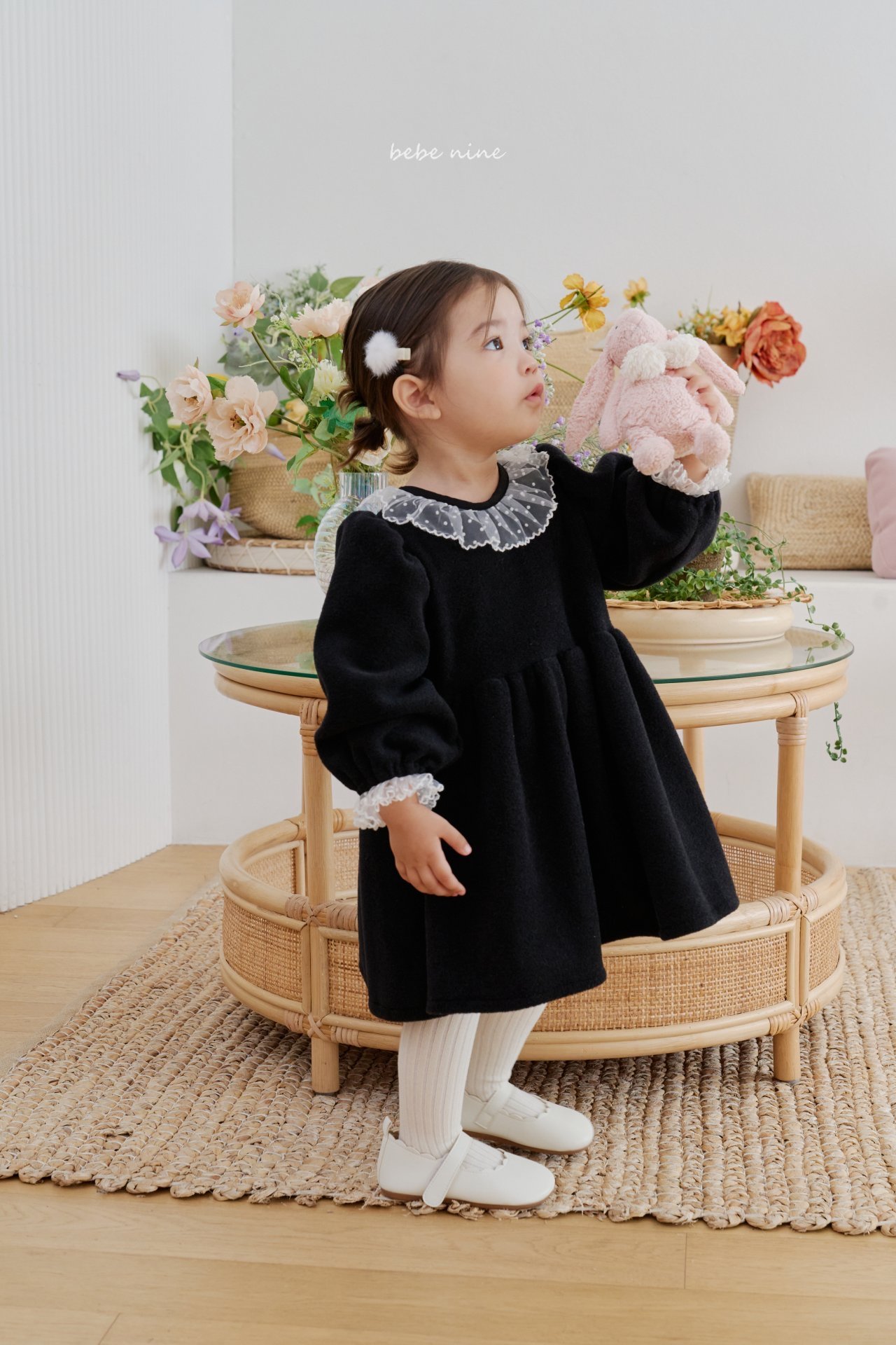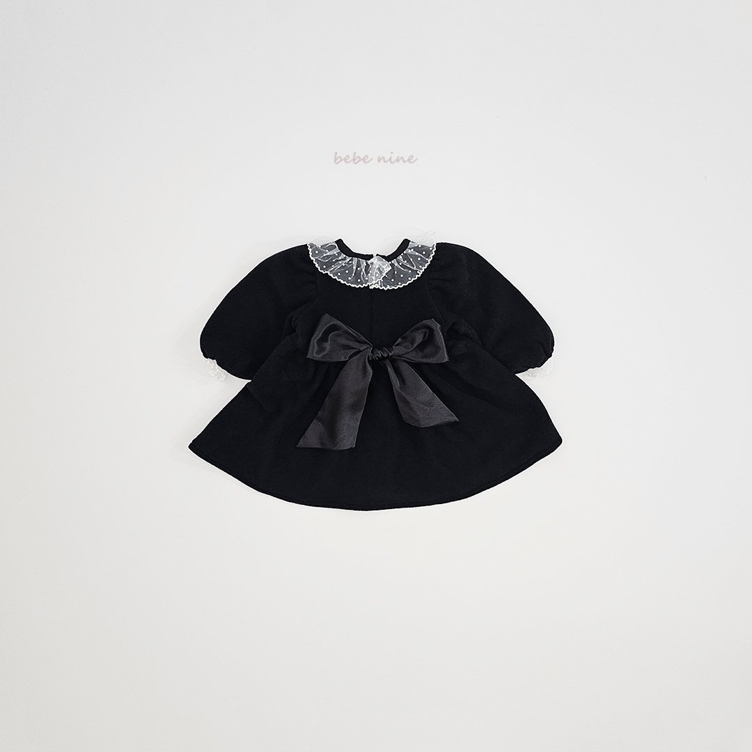 ❄️預訂 韓國直送❄️🇰🇷Bebenine兩色蕾絲領後背大絲帶拉絨長袖連身裙