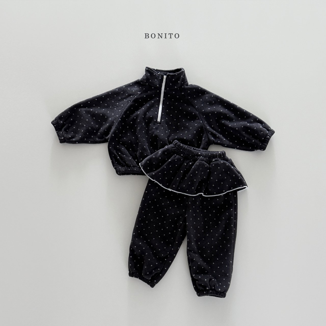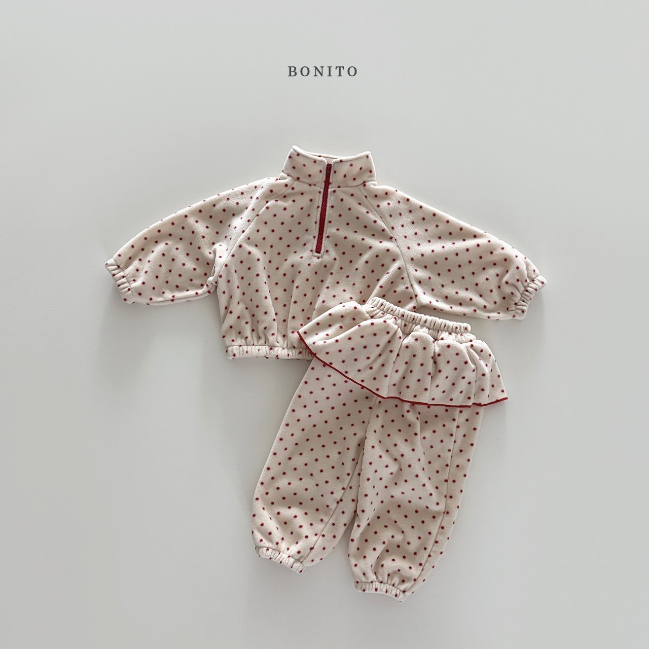 ❄️預訂 韓國直送❄️🇰🇷Bonito三色波點抓絨半拉鍊高領裙擺上下套裝