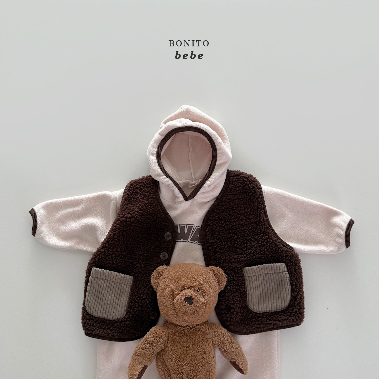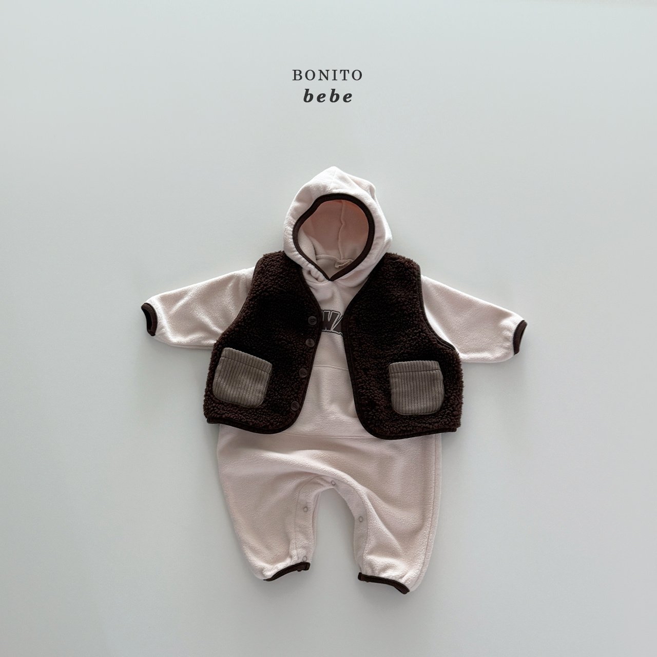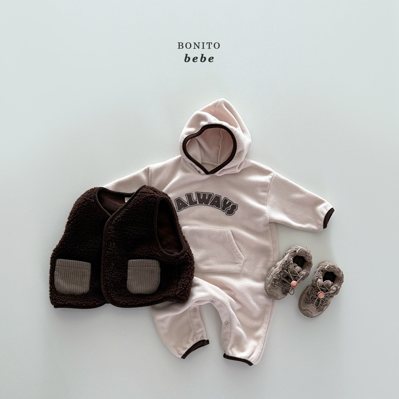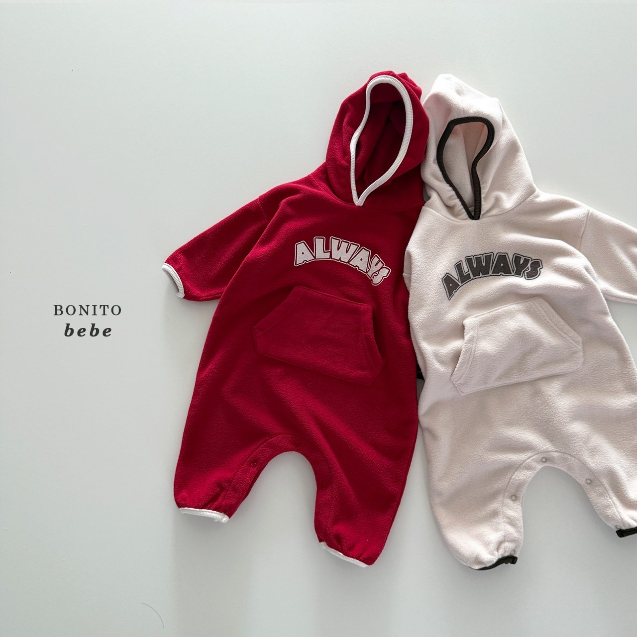 ❄️預訂 韓國直送❄️🇰🇷Bonito兩色英文印花抓絨連帽長袖連身服