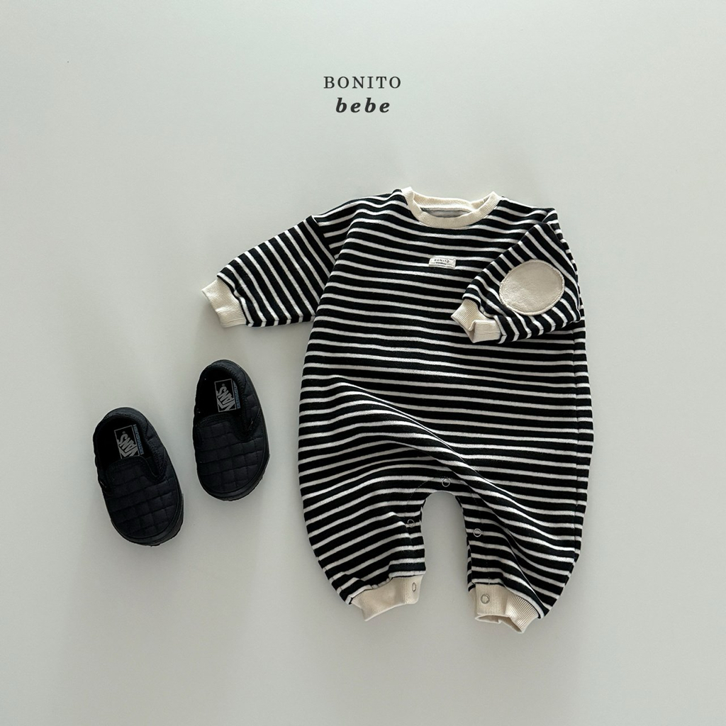 ❄️預訂 韓國直送❄️🇰🇷Bonito兩色貼布條紋拉絨長袖連身服