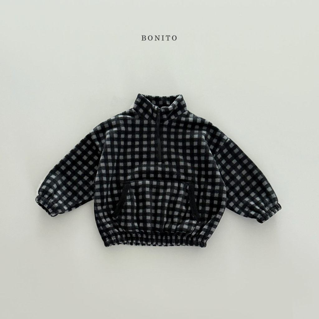 ❄️預訂 韓國直送❄️🇰🇷Bonito兩色迷你格紋拉絨半拉鍊口袋衛衣