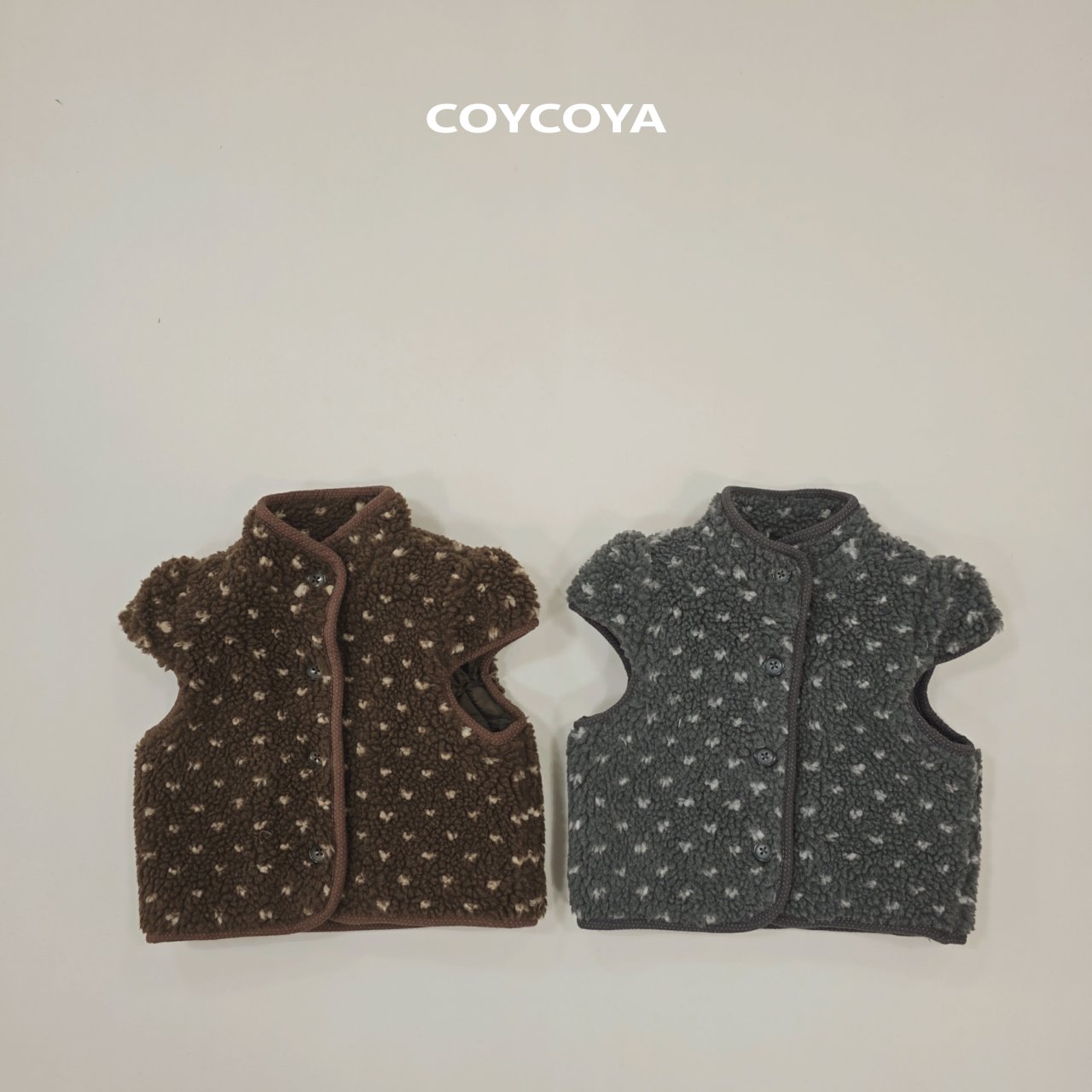 ❄️預訂 韓國直送❄️🇰🇷COYCOYA兩色心形波點抓絨絎縫開襟背心外套