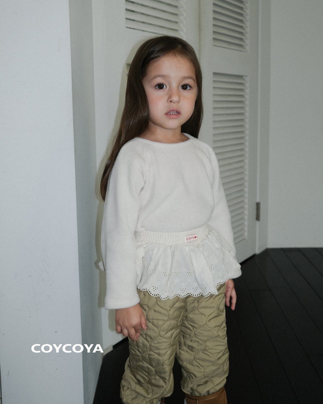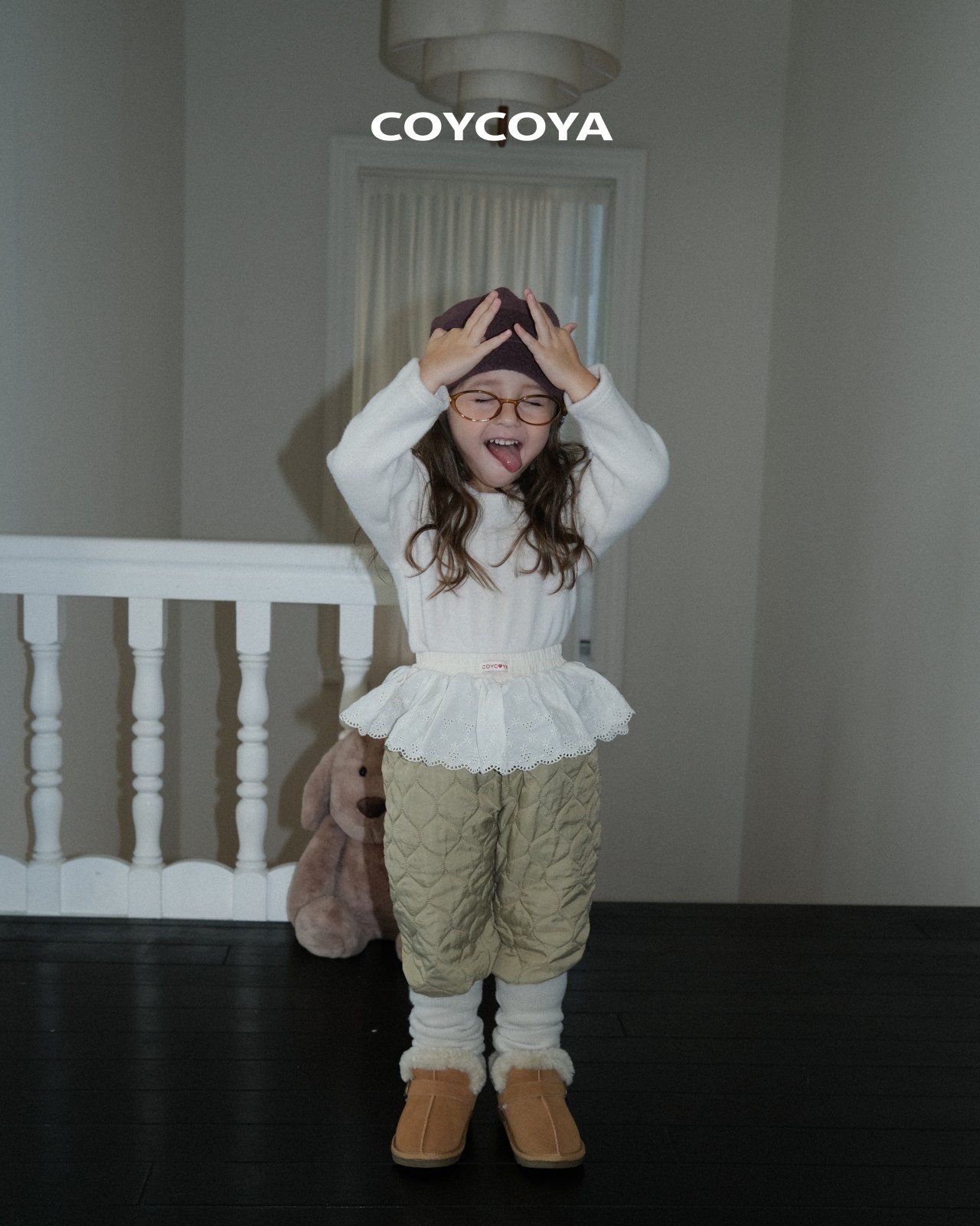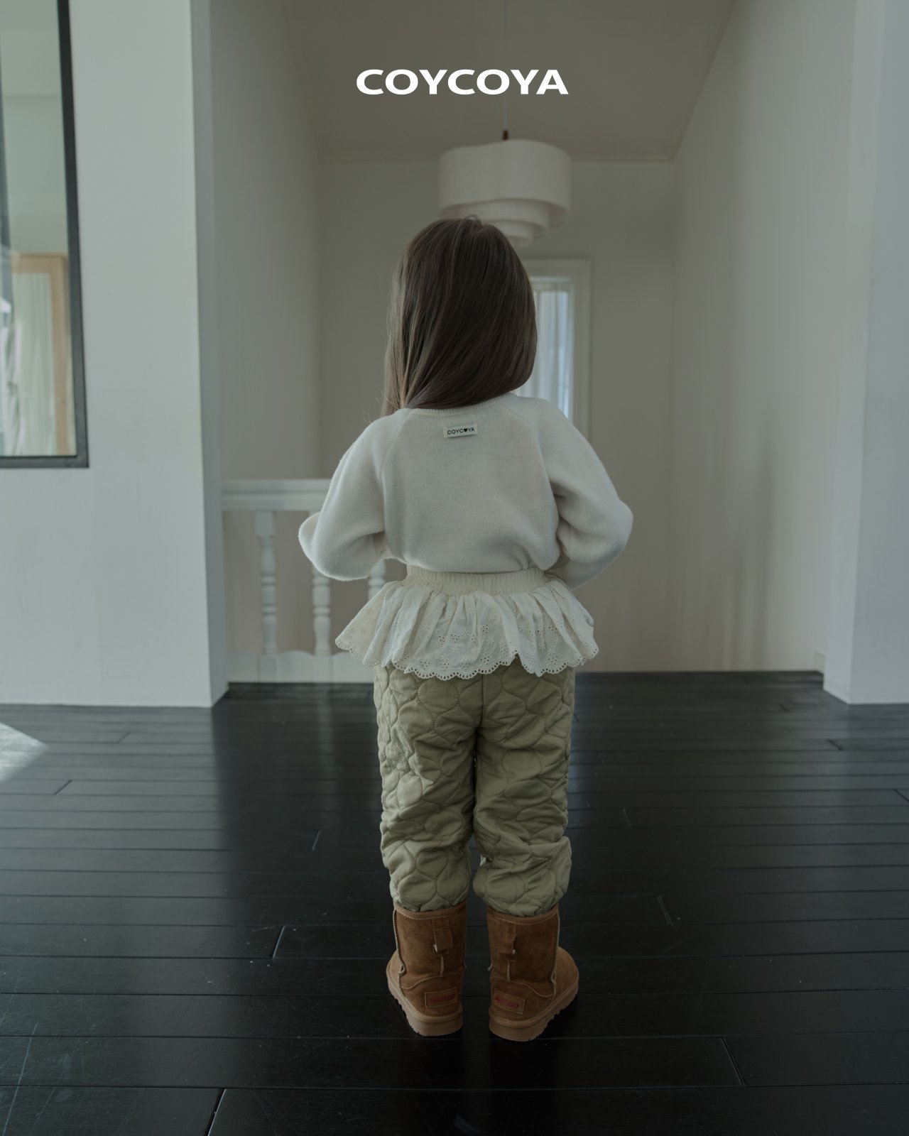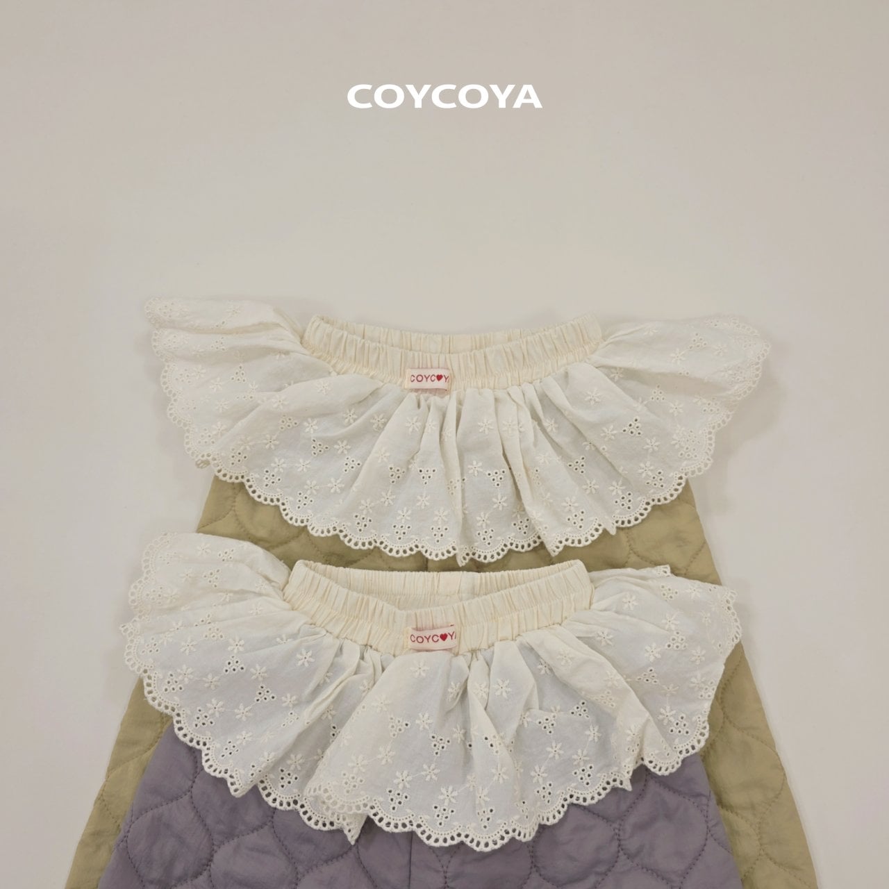 ❄️預訂 韓國直送❄️🇰🇷COYCOYA兩色標籤蕾絲裙擺絎縫寬鬆束腳褲 *不包括其他服飾 🚚預計貨期:約14-21個工作日 (貨期有機會提早或延遲) 🎨顏色:紫色|米色 📐尺碼:XS(80)|S(90)|M(100)|L(110)|XL(120) MADE IN KOREA🇰🇷 📦熱門貨品將跟據客人付款先後次序分配💞 🔺如產品出現斷貨將會全數退回🔺 ⚠️除非有列明 否則不包含其他服飾及配飾