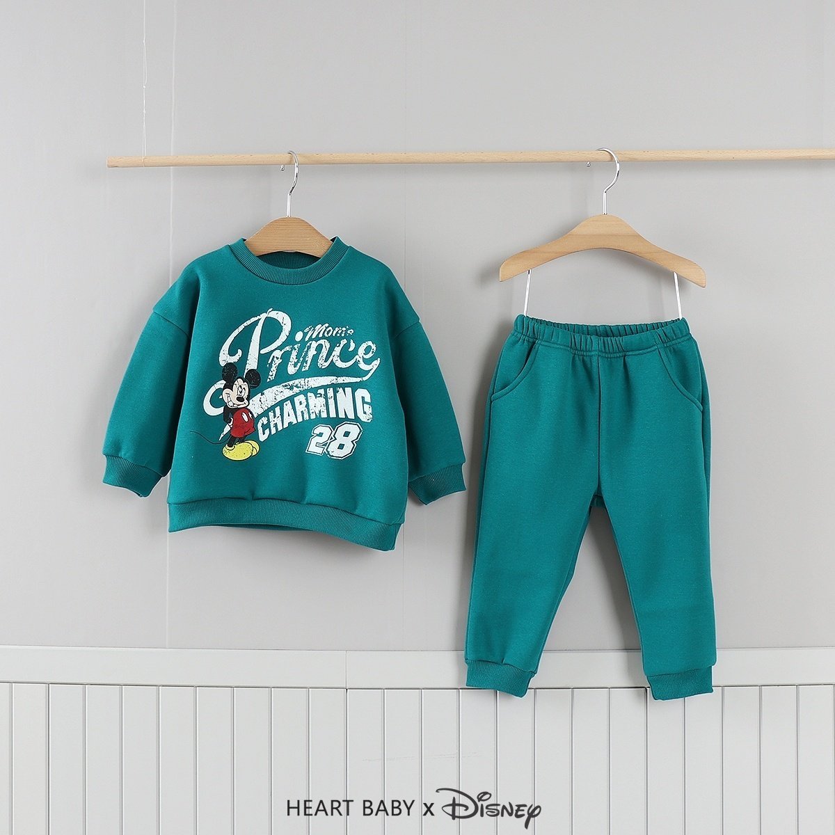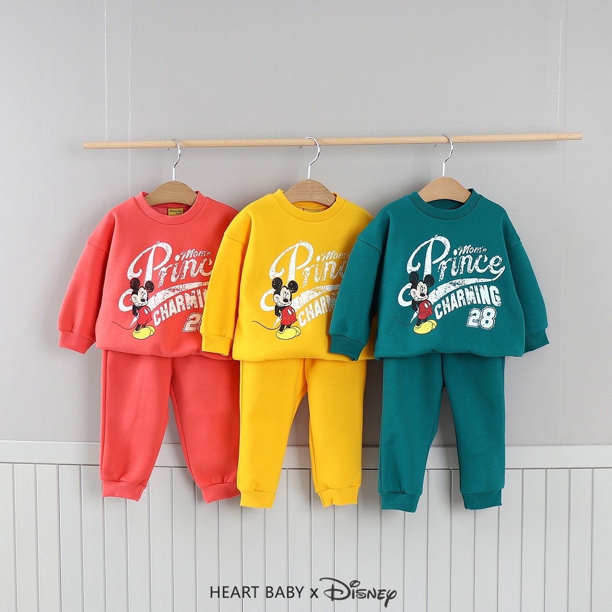 ❄️預訂 韓國直送❄️🇰🇷Heartbaby x Disney正版授權三色復古米奇印花拉絨衞衣上下套裝
