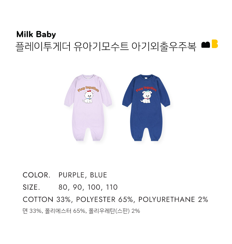 ❄️預訂 韓國直送❄️🇰🇷Milk Baby兩色動物印花寬鬆拉絨連身服 🚚預計貨期:約14-21個工作日 (貨期有機會提早或延遲) 🎨顏色:藍色|紫色 📐尺碼:80|90|100|110 棉 33%, 聚酯纖維 65%, 聚氨酯 2% 韓國布料 越南代工 風格資料 合身 :寬鬆 彈性 :中等 厚度 :厚 襯墊 :有 穿著季節 :冬天 📦熱門貨品將跟據客人付款先後次序分配💞 🔺如產品出現斷貨將會全數退回🔺 ⚠️除非有列明 否則不包含其他服飾及配飾