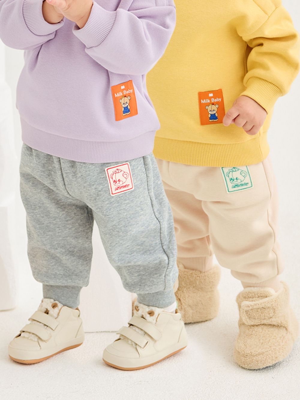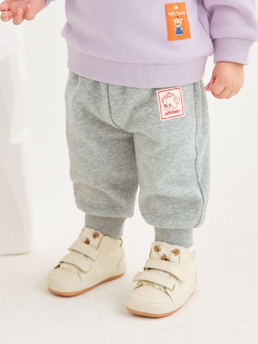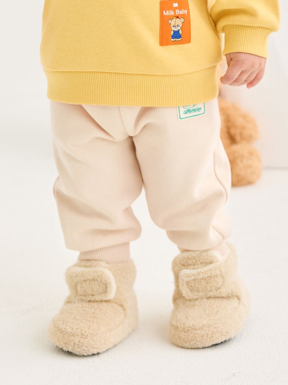 ❄️預訂 韓國直送❄️🇰🇷Milk Baby兩色小熊標籤寬鬆拉絨長褲