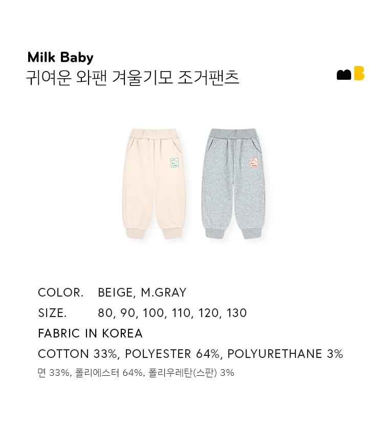 ❄️預訂 韓國直送❄️🇰🇷Milk Baby兩色小熊標籤寬鬆拉絨長褲 🚚預計貨期:約14-21個工作日 (貨期有機會提早或延遲) 🎨顏色:米色|灰色 📐尺碼:80|90|100|110|120|130 棉 33%, 聚酯纖維 64%, 聚氨酯 3% 韓國布料 越南代工 風格資料 合身 :寬鬆 彈性 :中等 厚度 :厚 襯墊 :不存在 穿著季節 :冬天 📦熱門貨品將跟據客人付款先後次序分配💞 🔺如產品出現斷貨將會全數退回🔺 ⚠️除非有列明 否則不包含其他服飾及配飾