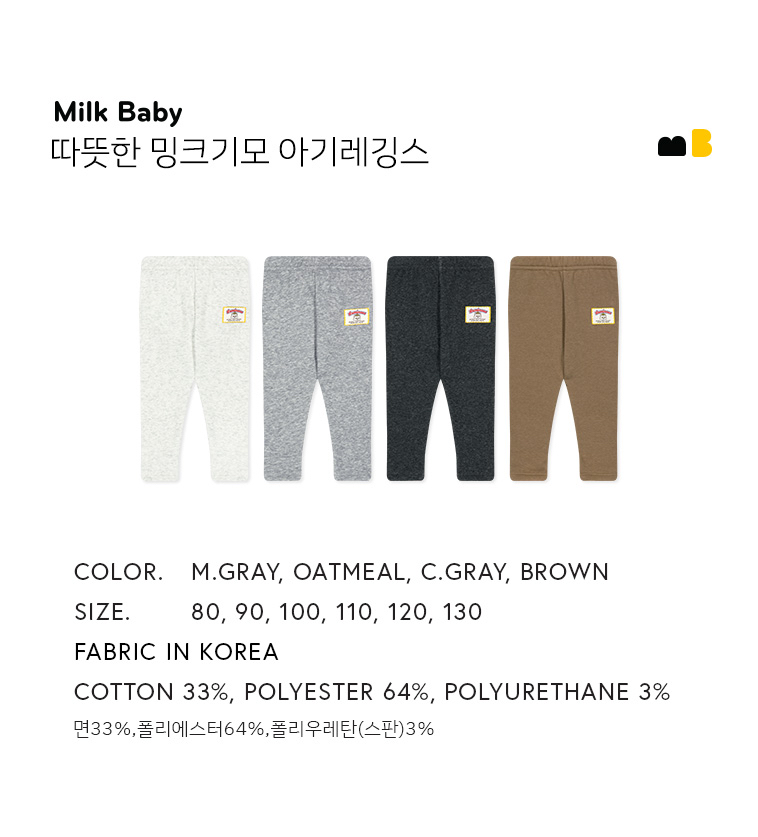 ❄️預訂 韓國直送❄️🇰🇷Milk Baby四色松鼠標籤拉絨緊身打底褲 🚚預計貨期:約14-21個工作日 (貨期有機會提早或延遲) 🎨顏色:灰色|燕麥|深灰|棕色 📐尺碼:80|90|100|110|120|130 棉 33%, 聚酯纖維 64%, 聚氨酯 3% 韓國布料 越南代工 風格資料 合身 :修身 彈性 :中等 厚度 :厚 襯墊 :不存在 穿著季節 :秋冬 📦熱門貨品將跟據客人付款先後次序分配💞 🔺如產品出現斷貨將會全數退回🔺 ⚠️除非有列明 否則不包含其他服飾及配飾
