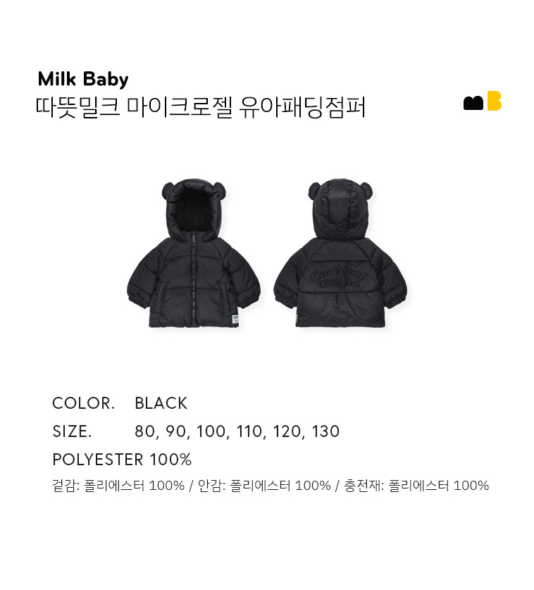 ❄️預訂 韓國直送❄️🇰🇷Milk Baby後背刺繡小熊耳朵連帽拉鍊外套 🚚預計貨期:約14-21個工作日 (貨期有機會提早或延遲) 🎨顏色:黑色 📐尺碼:80|90|100|110|120|130 布料:100% 聚酯纖維 / 裡料:100% 聚酯纖維 / 填充物:100% 聚酯纖維 韓國布料 中國代工 風格資料 合身 :常規 彈性 :不存在 厚度 :厚 襯墊 :存在 穿著季節 :冬天 📦熱門貨品將跟據客人付款先後次序分配💞 🔺如產品出現斷貨將會全數退回🔺 ⚠️除非有列明 否則不包含其他服飾及配飾