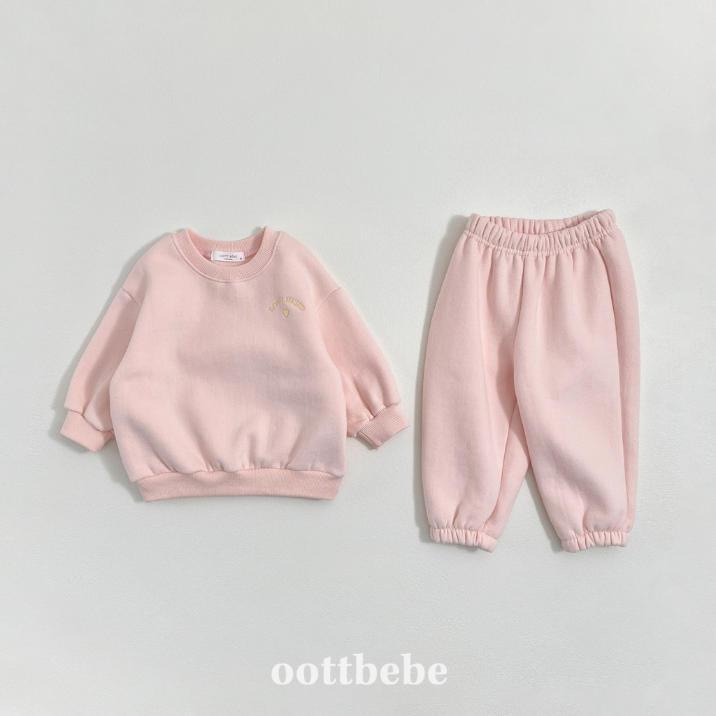 ❄️預訂 韓國直送❄️🇰🇷OOTTBEBE四色LOVE BEBE刺繡衛衣上下套裝