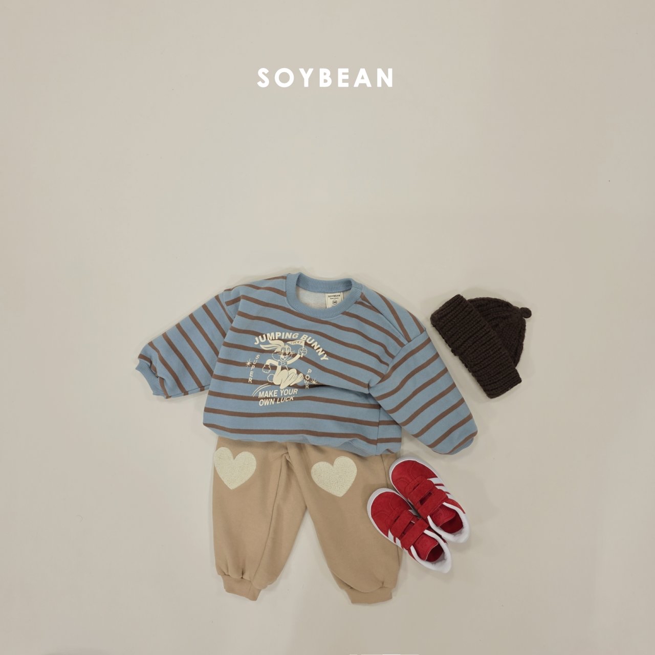 ❄️預訂 韓國直送❄️🇰🇷Soybean三色小兔印花條紋抓絨衛衣