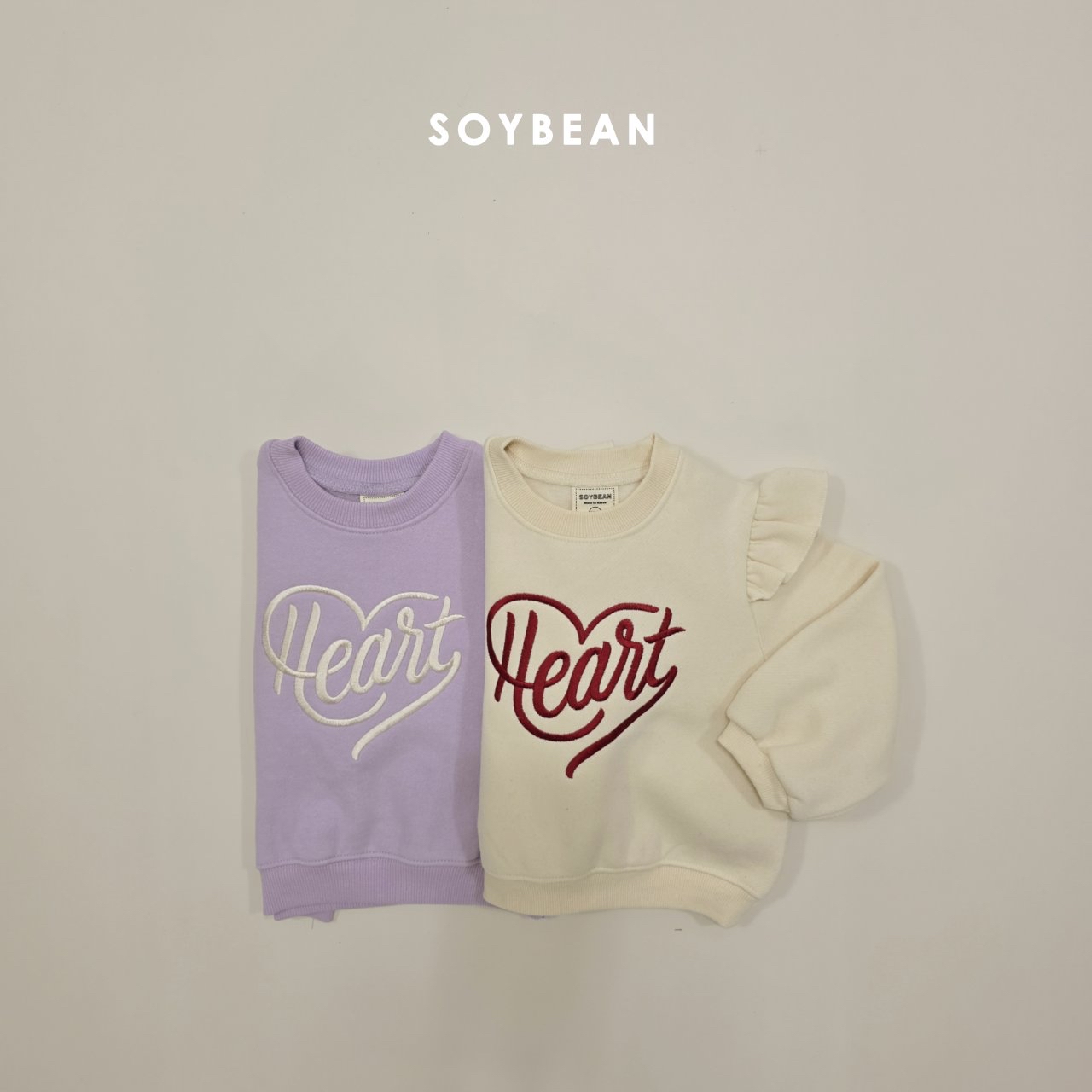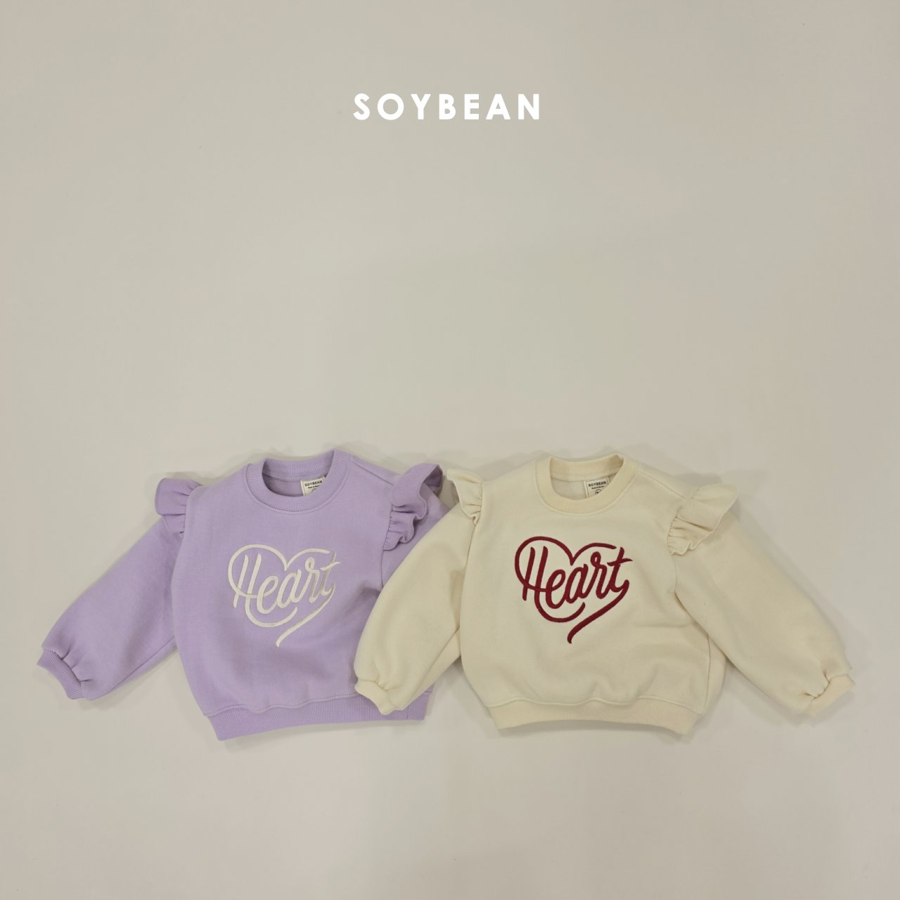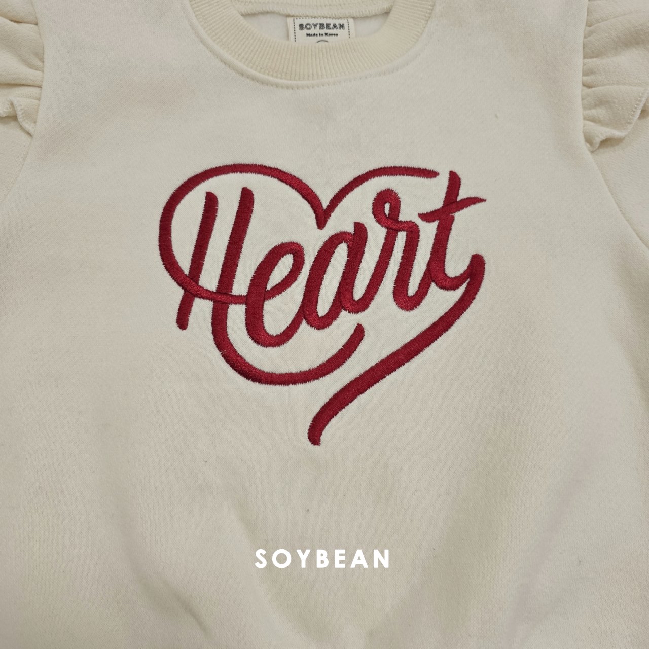 ❄️預訂 韓國直送❄️🇰🇷Soybean兩色愛心刺繡荷葉袖抓絨衛衣