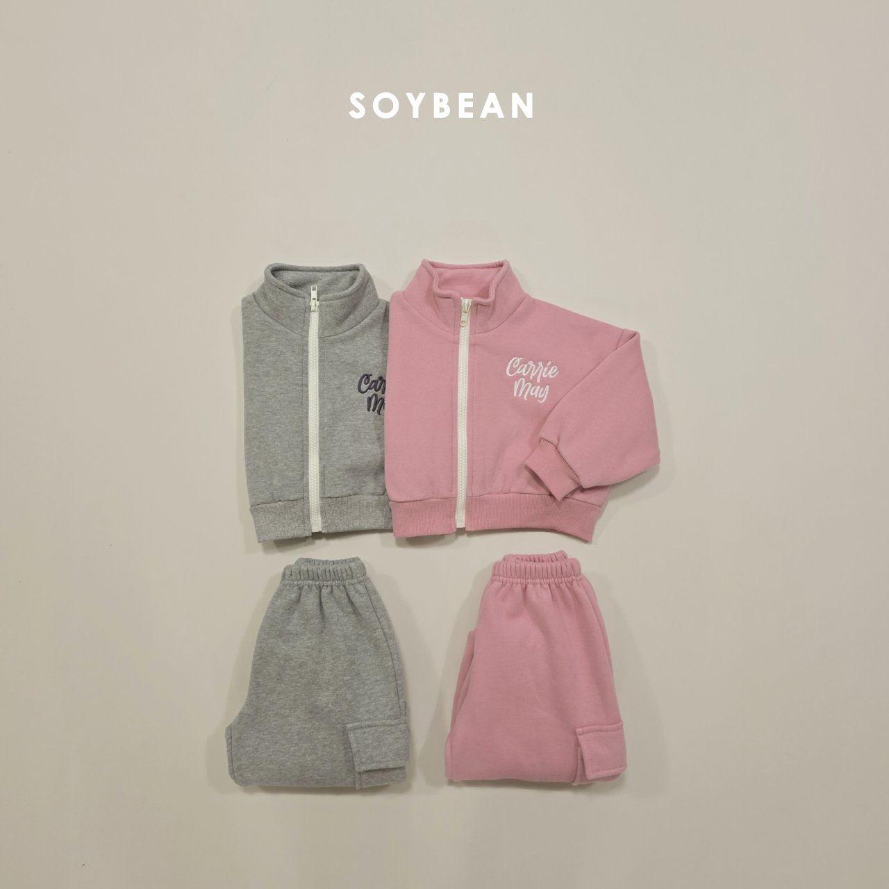 ❄️預訂 韓國直送❄️🇰🇷Soybean兩色英文刺繡拉絨拉鍊衛衣工裝褲上下套裝