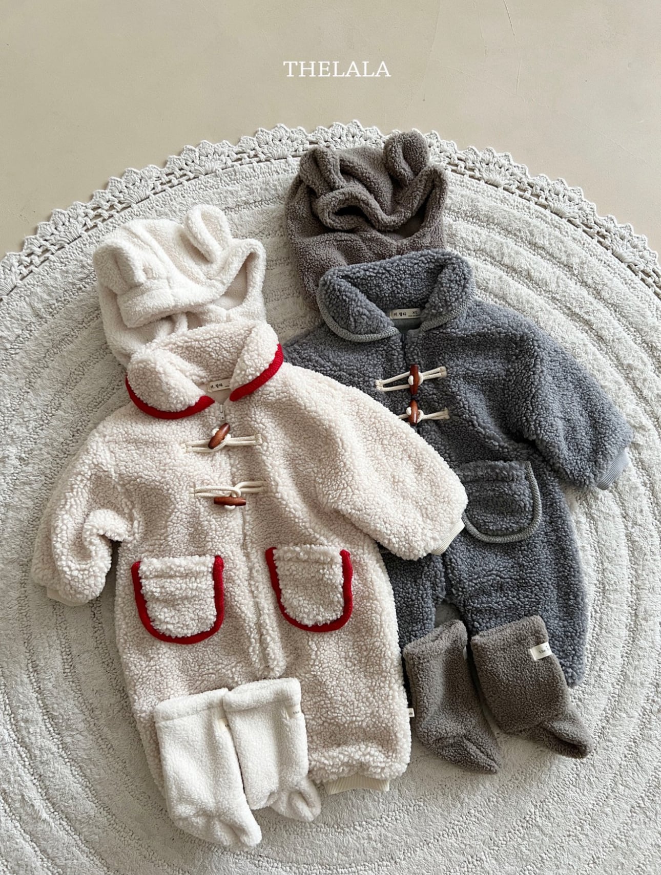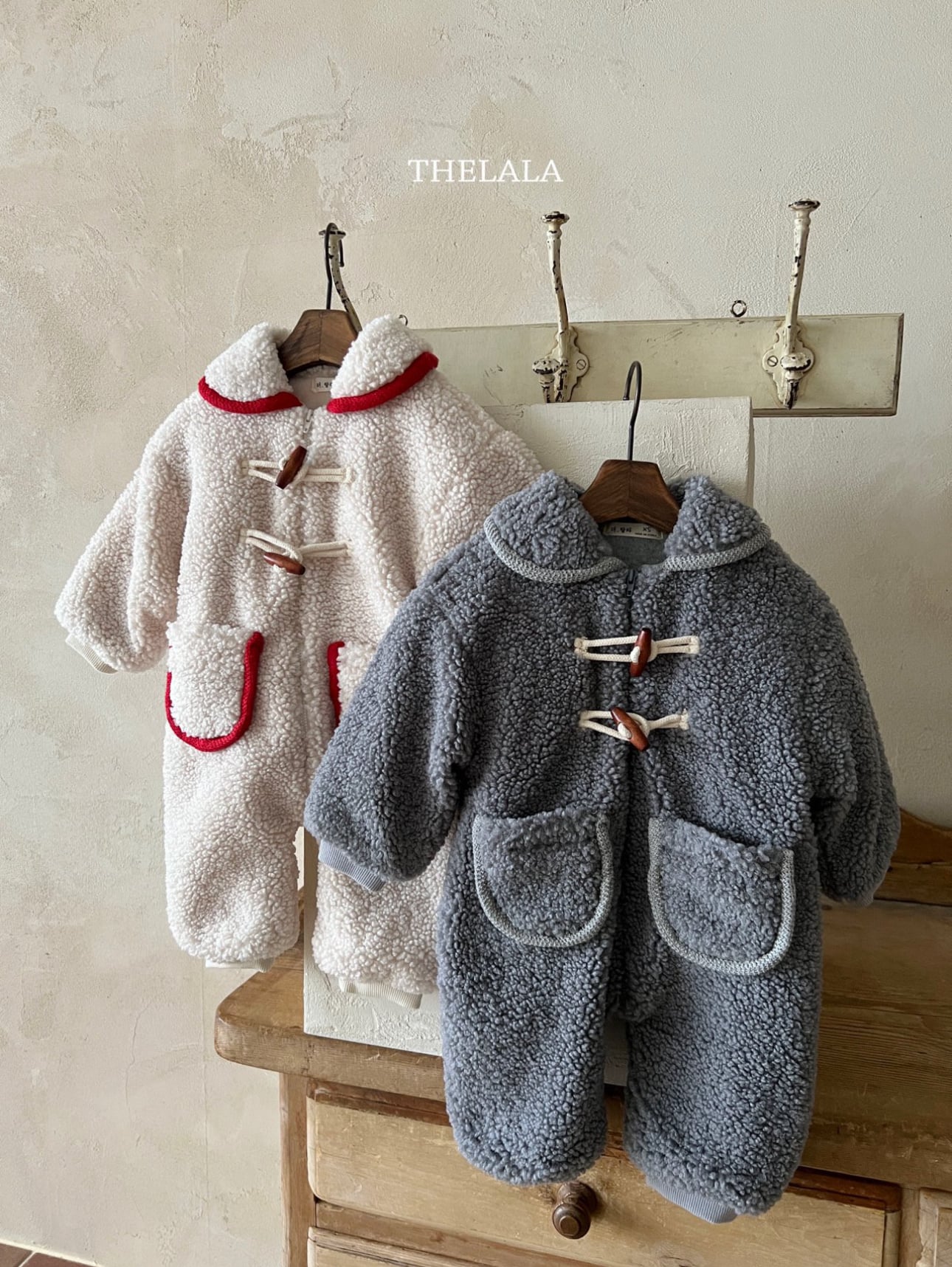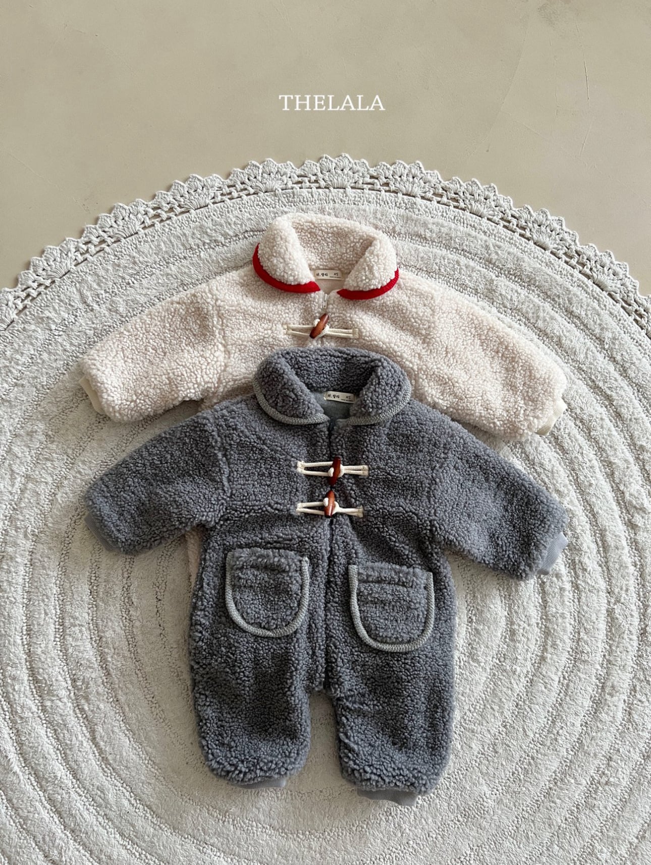 ❄️預訂 韓國直送❄️🇰🇷THELALA兩色口袋抓絨木鈕翻領拉鍊長袖連身服 *不包括其他服飾 🚚預計貨期:約14-21個工作日 (貨期有機會提早或延遲) 🎨顏色:象牙|灰色 📐尺碼:XS(70)|S(80)|M(90) MADE IN KOREA🇰🇷 📦熱門貨品將跟據客人付款先後次序分配💞 🔺如產品出現斷貨將會全數退回🔺 ⚠️除非有列明 否則不包含其他服飾及配飾