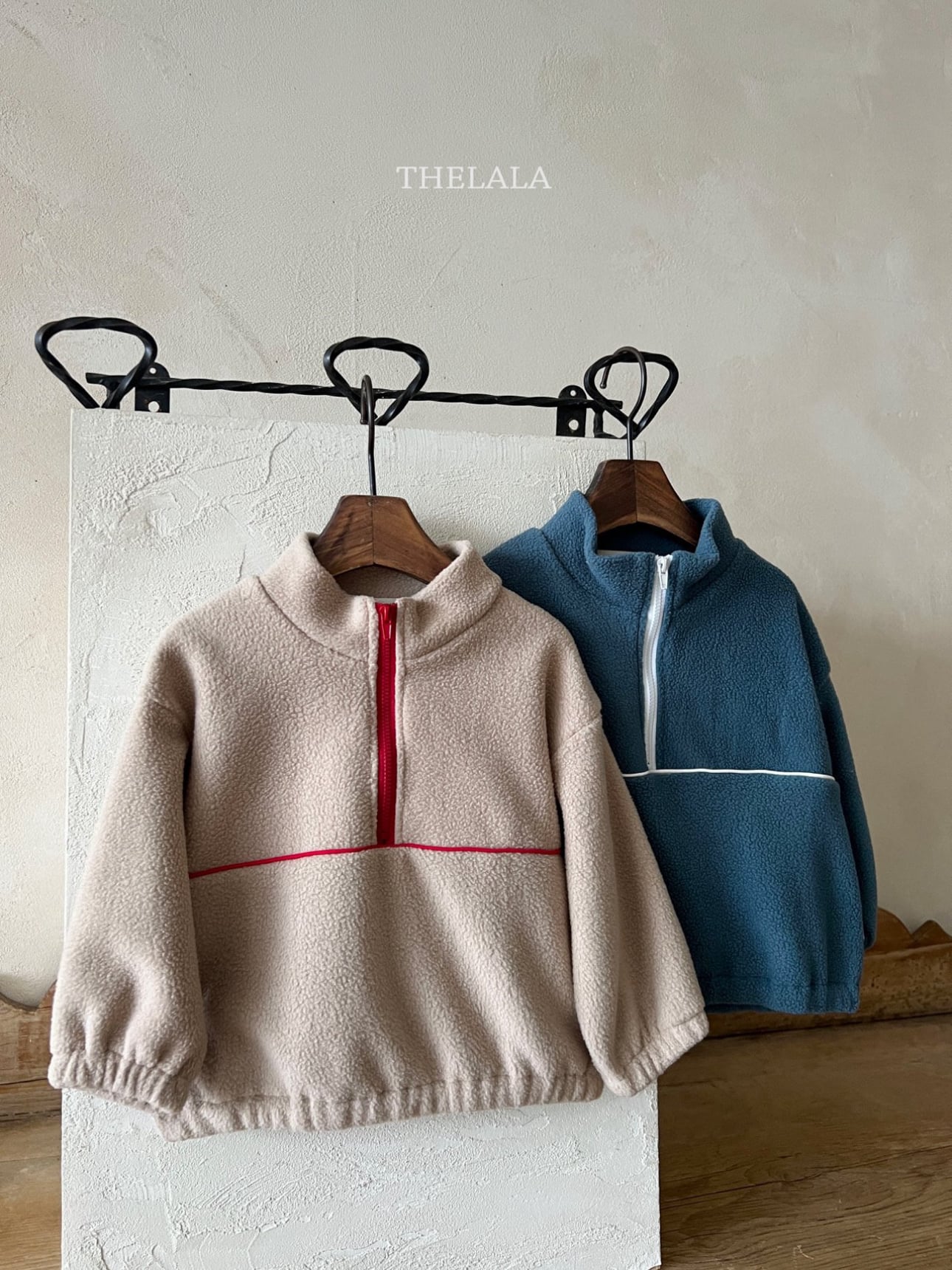 ❄️預訂 韓國直送❄️🇰🇷THELALA兩色撞色線條抓絨半拉鍊高領衛衣
