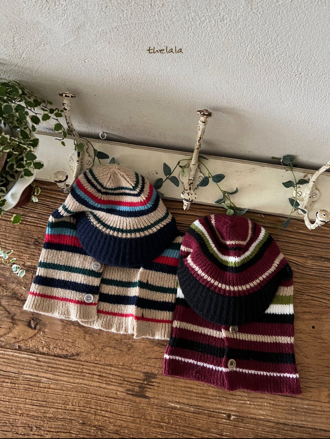 ❄️預訂 韓國直送❄️🇰🇷THELALA兩色標籤撞色條紋針織護耳帽