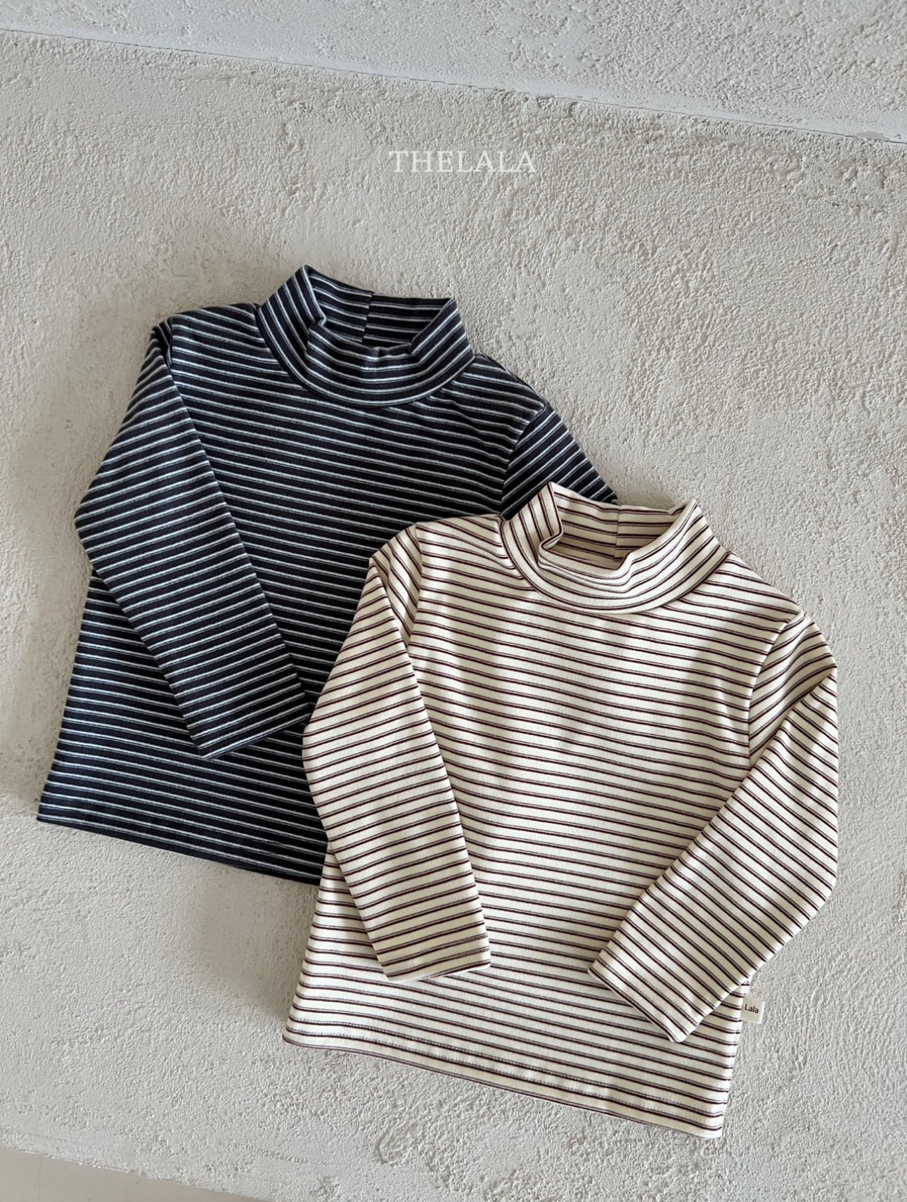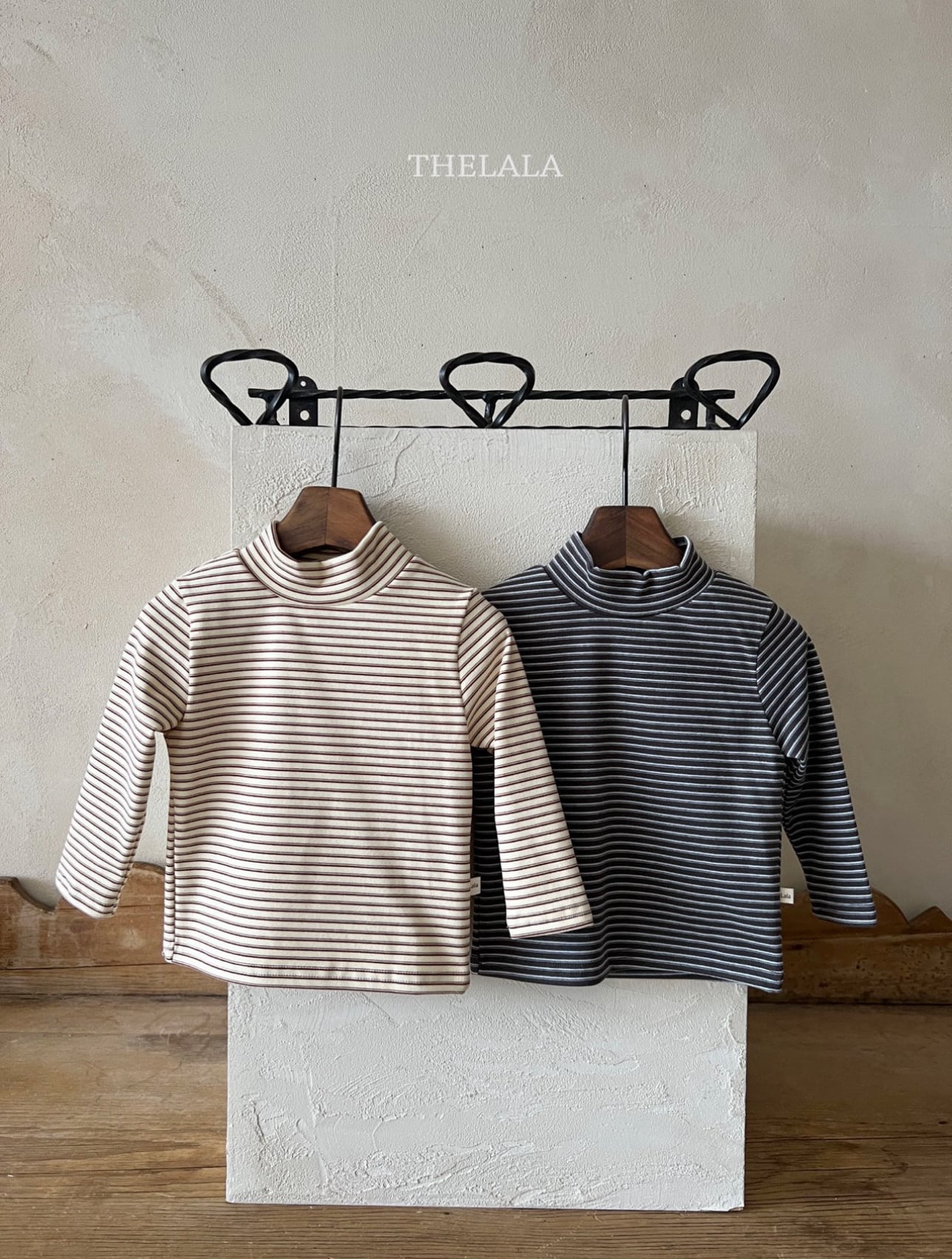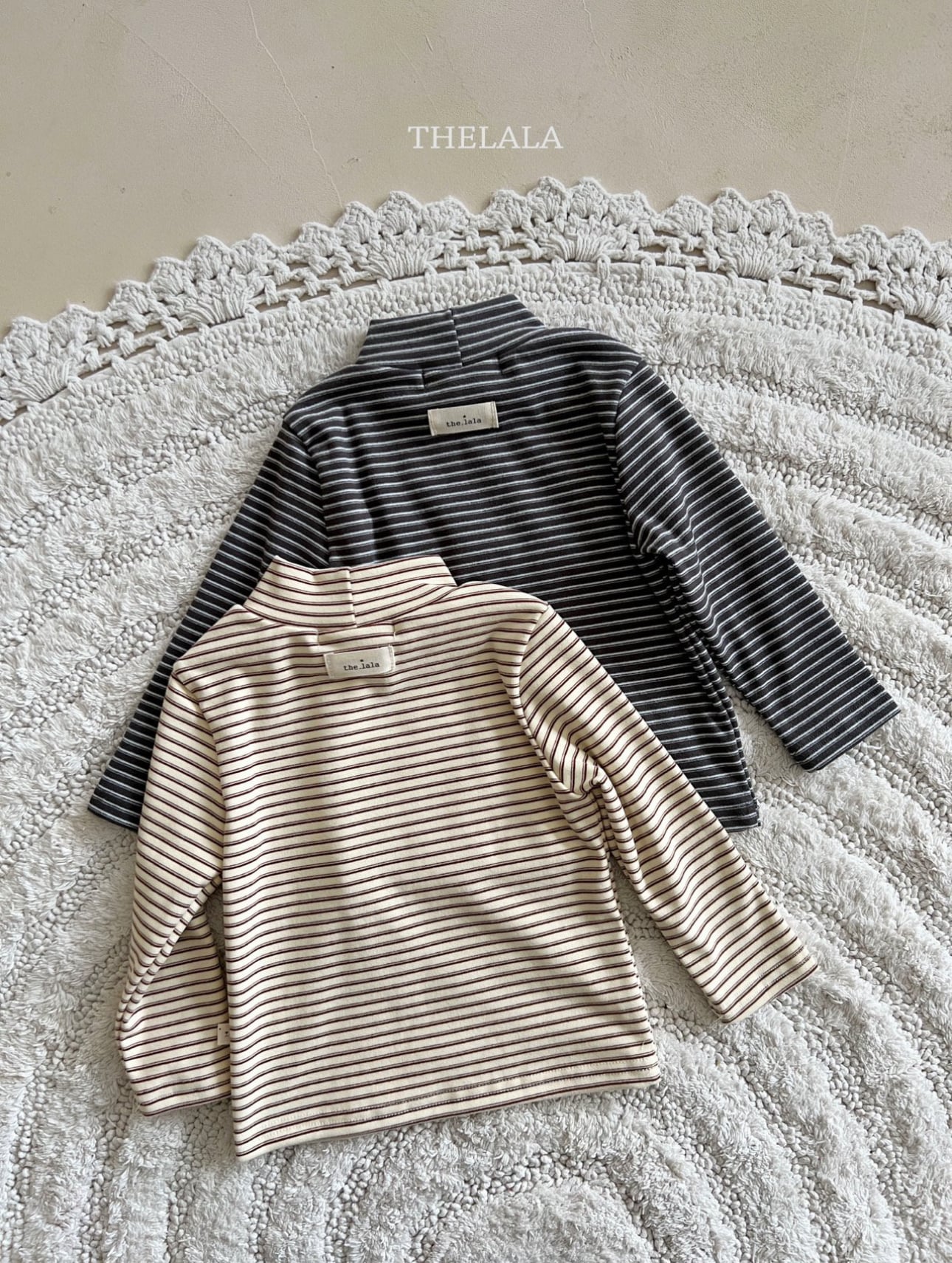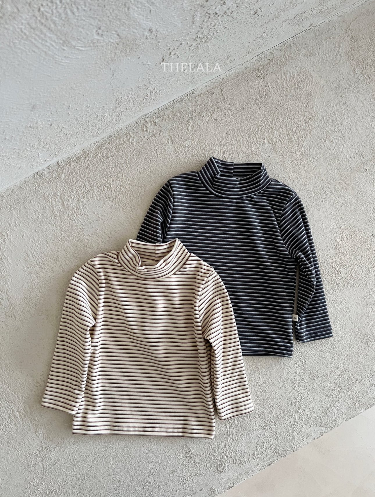 ❄️預訂 韓國直送❄️🇰🇷THELALA兩色標籤條紋高領長袖打底上衣