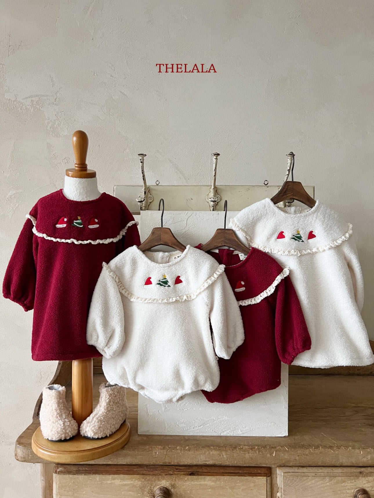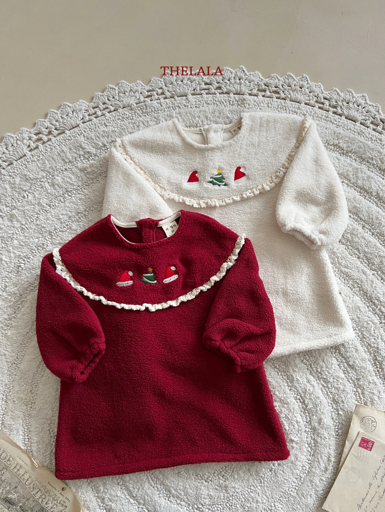 ❄️預訂 韓國直送❄️🇰🇷THELALA兩色聖誕圖案刺繡蕾絲花邊抓絨連身裙 *不包括其他服飾 🚚預計貨期:約14-21個工作日 (貨期有機會提早或延遲) 🎨顏色:象牙|紅色 📐尺碼:XS(80)|S(90)|M(100)|L(110)|XL(120) MADE IN KOREA🇰🇷 📦熱門貨品將跟據客人付款先後次序分配💞 🔺如產品出現斷貨將會全數退回🔺 ⚠️除非有列明 否則不包含其他服飾及配飾