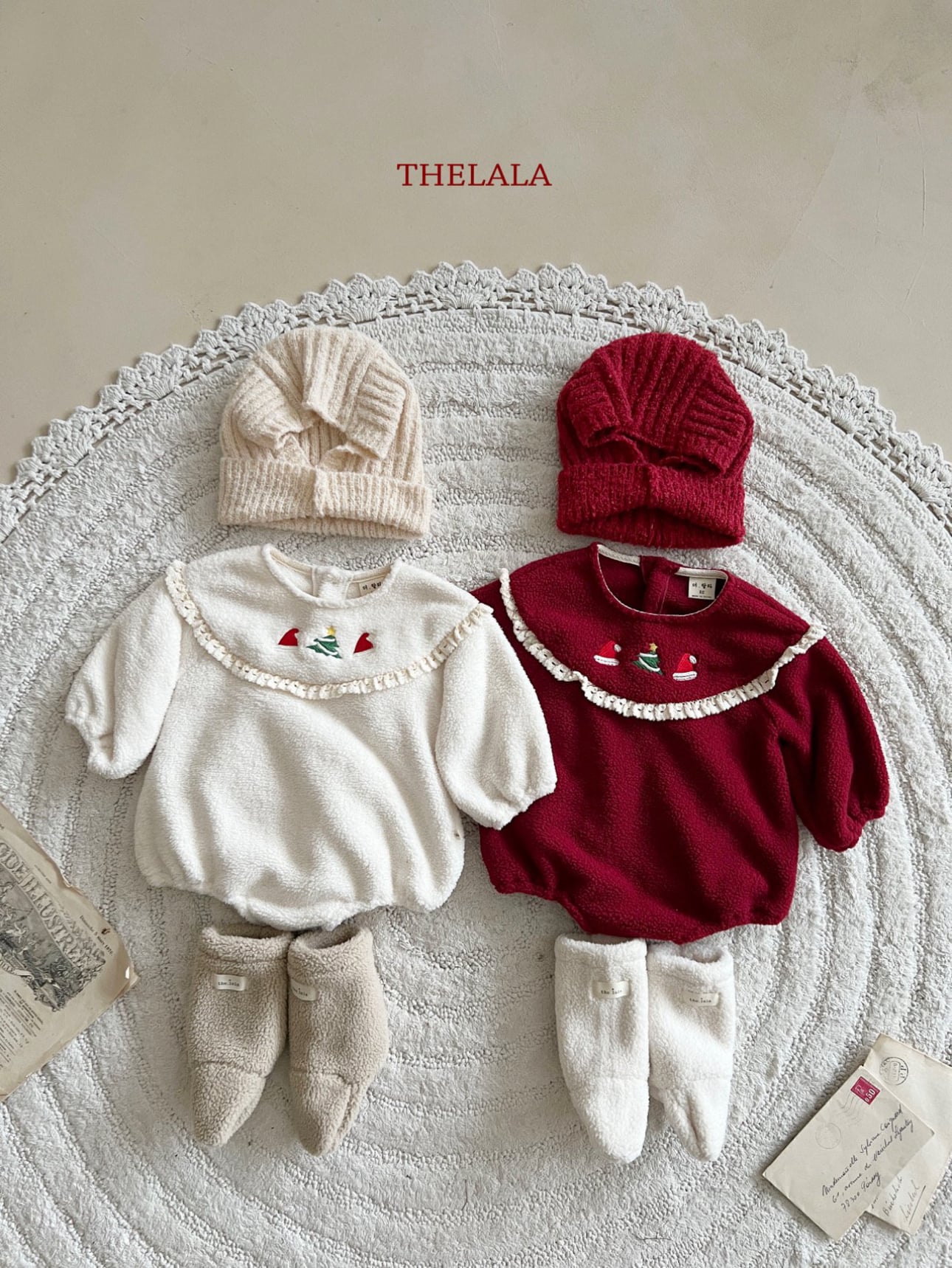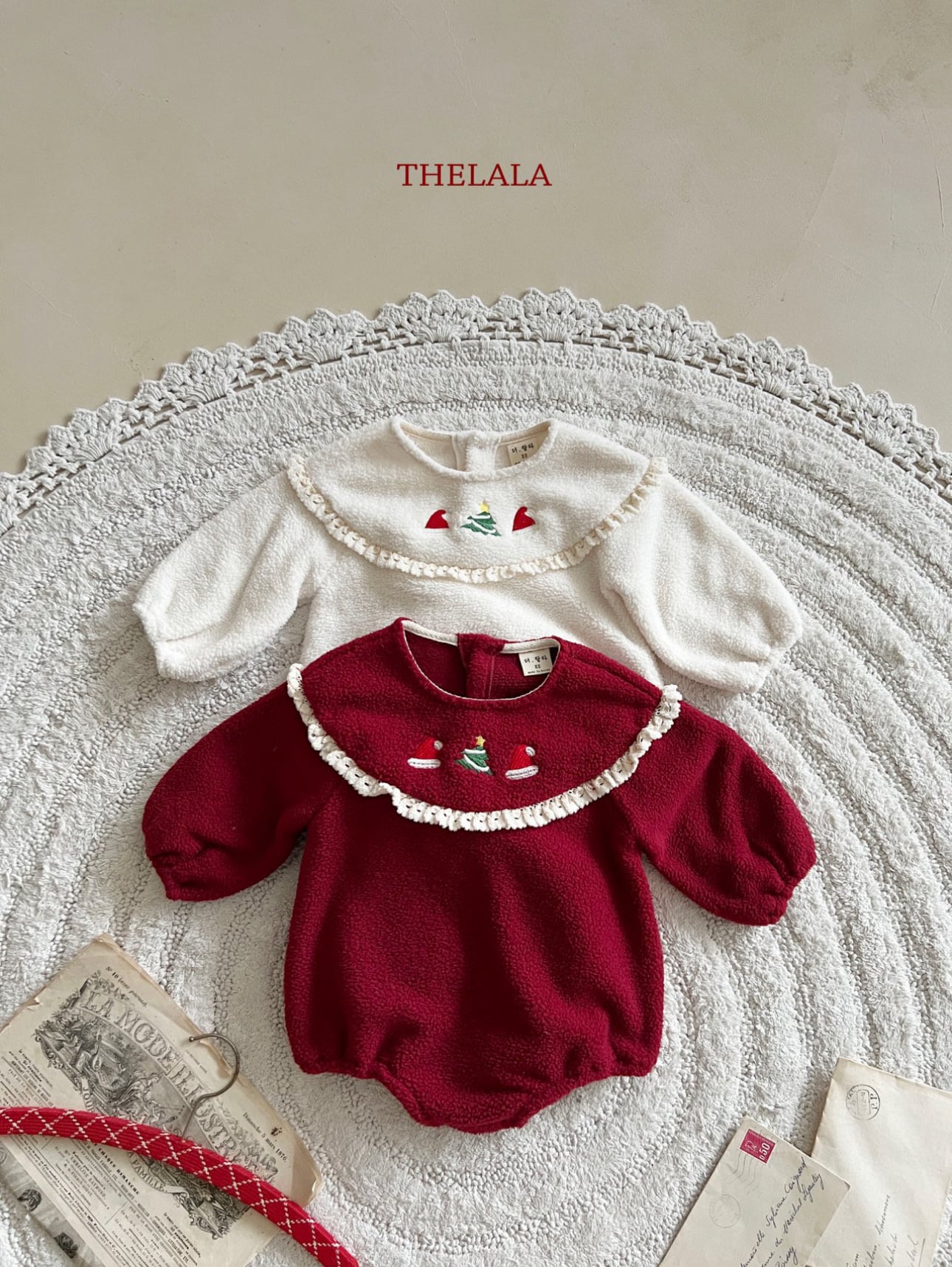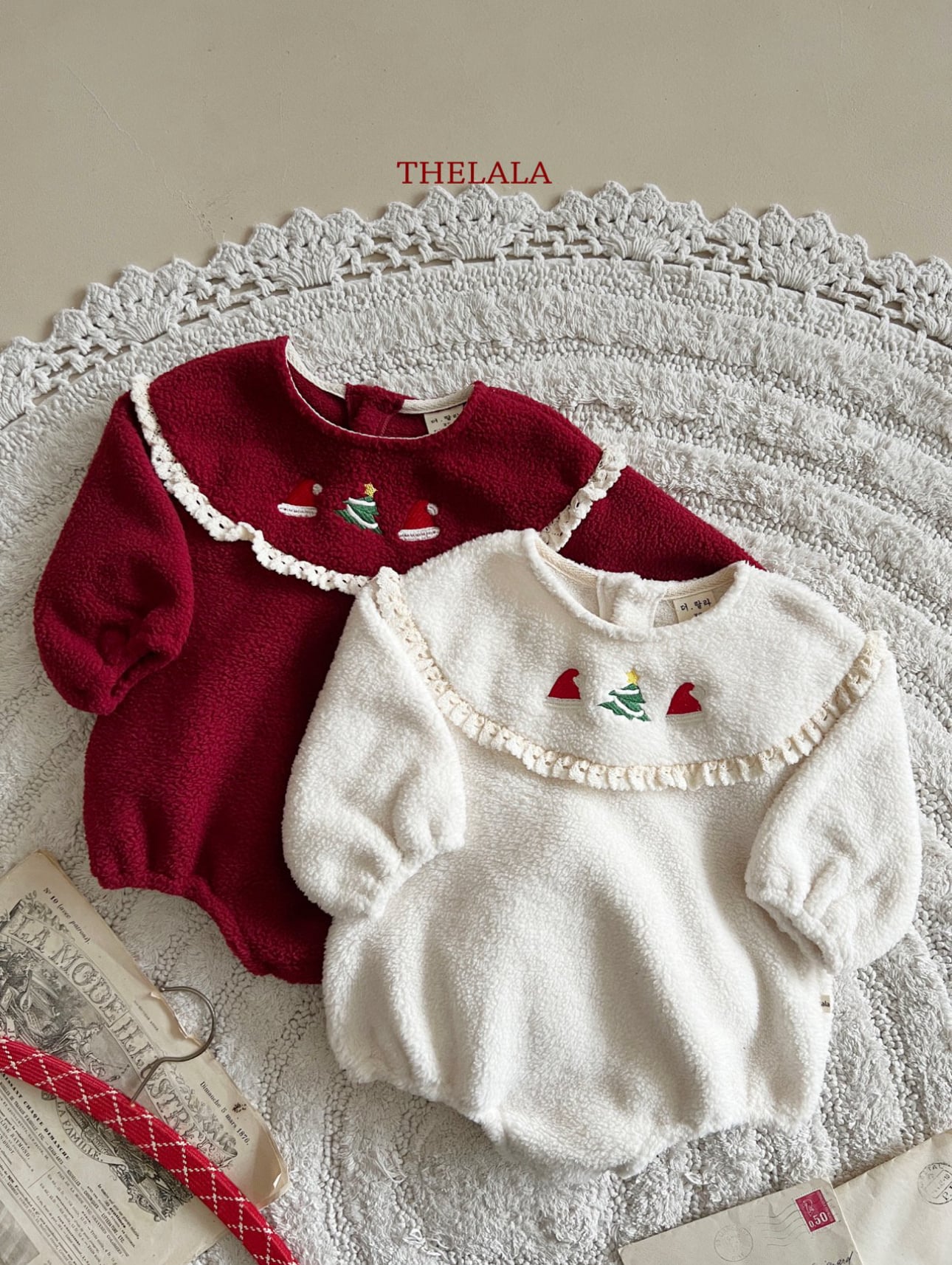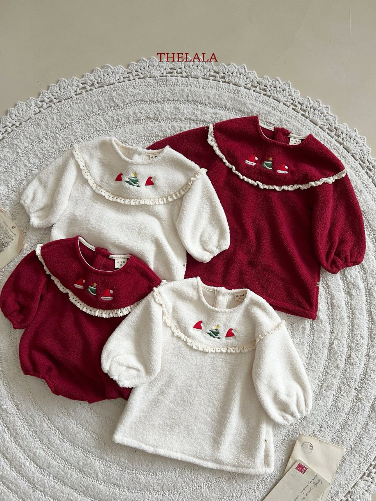 ❄️預訂 韓國直送❄️🇰🇷THELALA兩色聖誕圖案刺繡蕾絲花邊抓絨長袖包屁衣