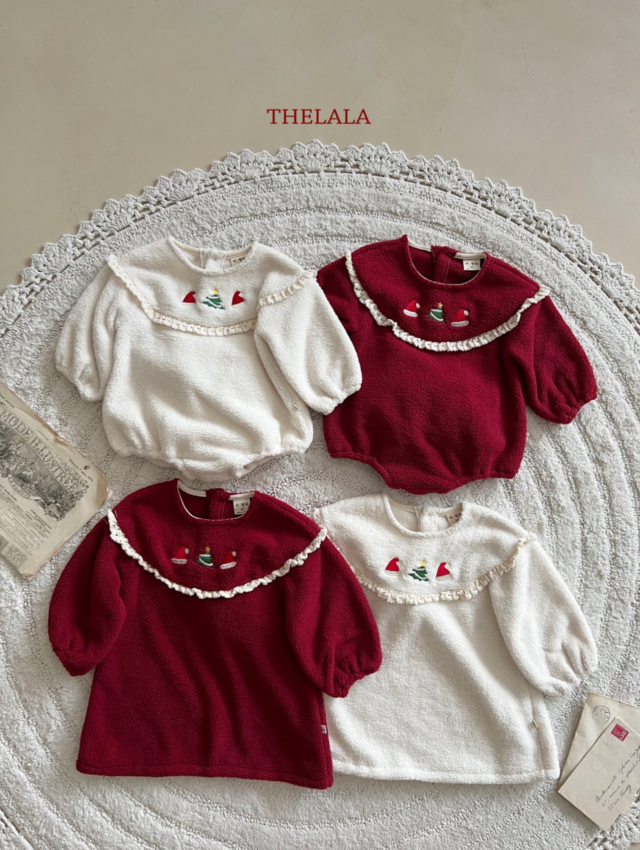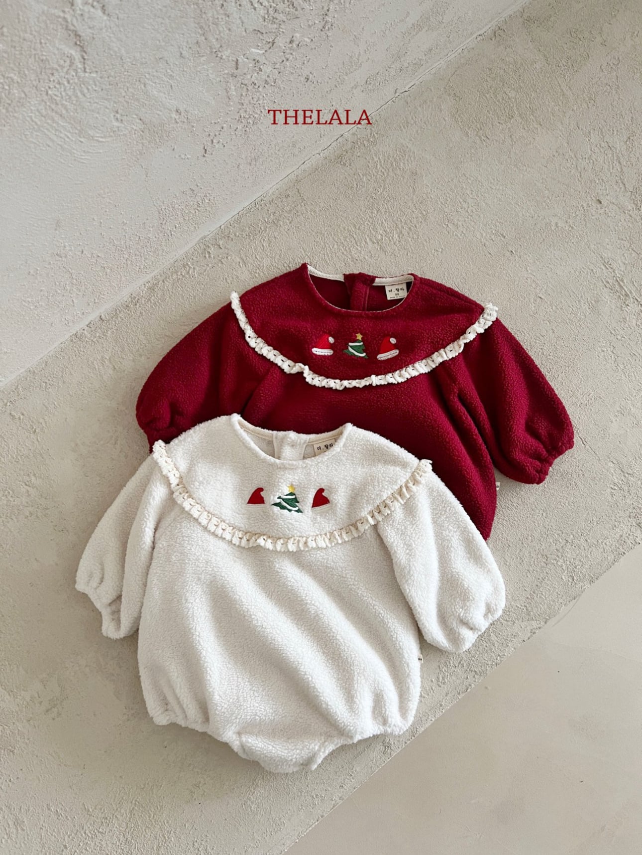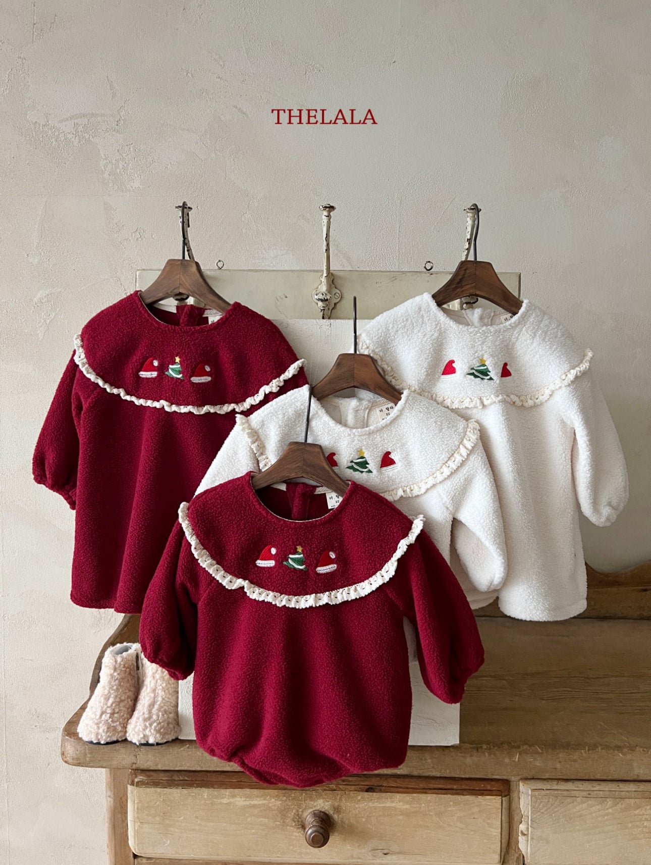 ❄️預訂 韓國直送❄️🇰🇷THELALA兩色聖誕圖案刺繡蕾絲花邊抓絨長袖包屁衣