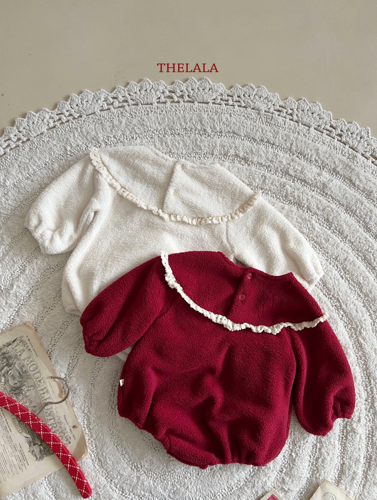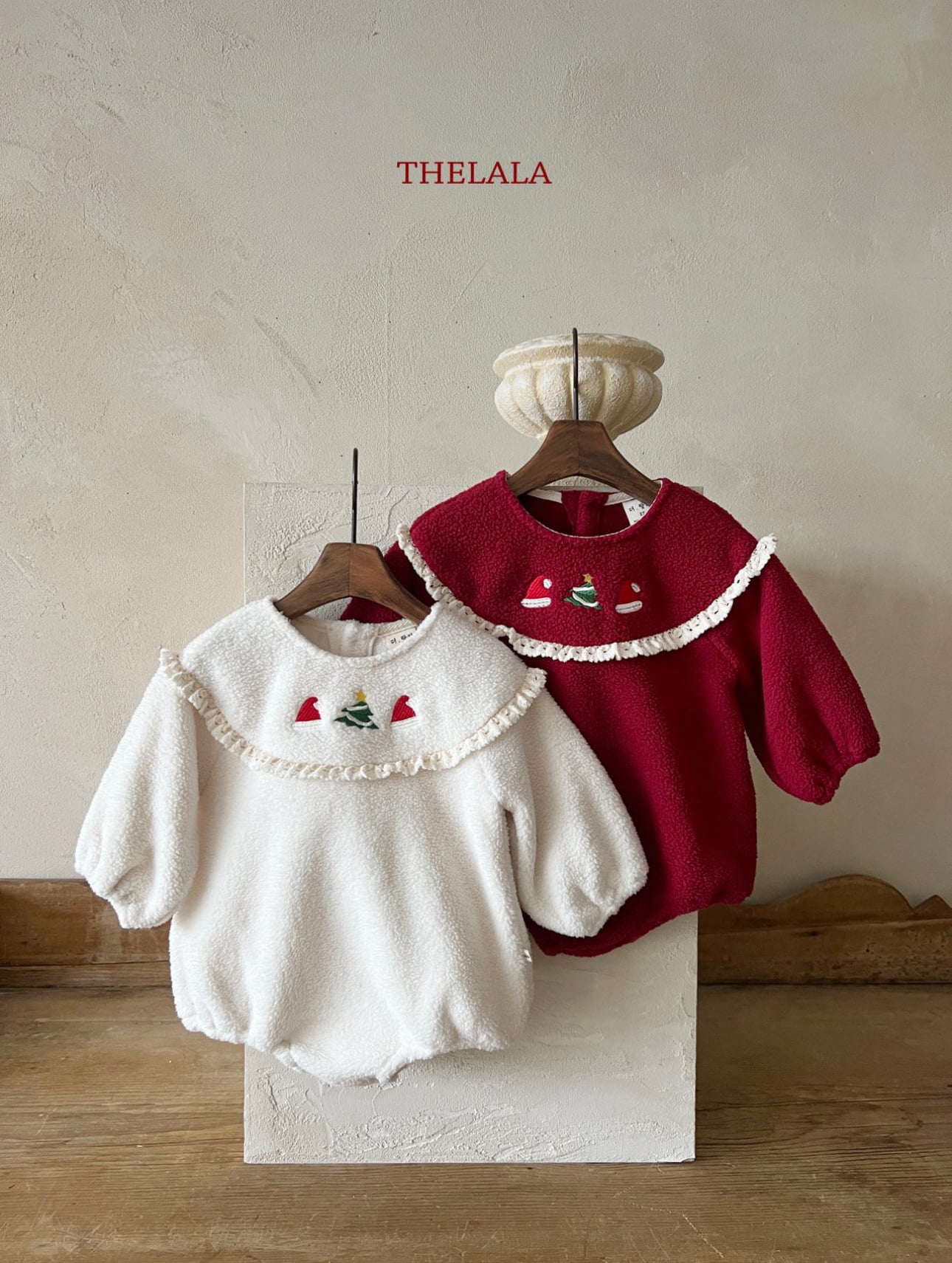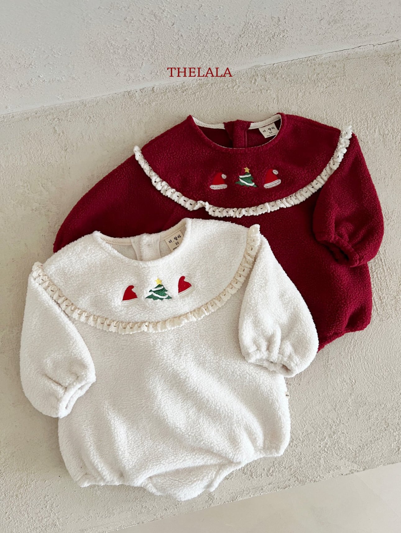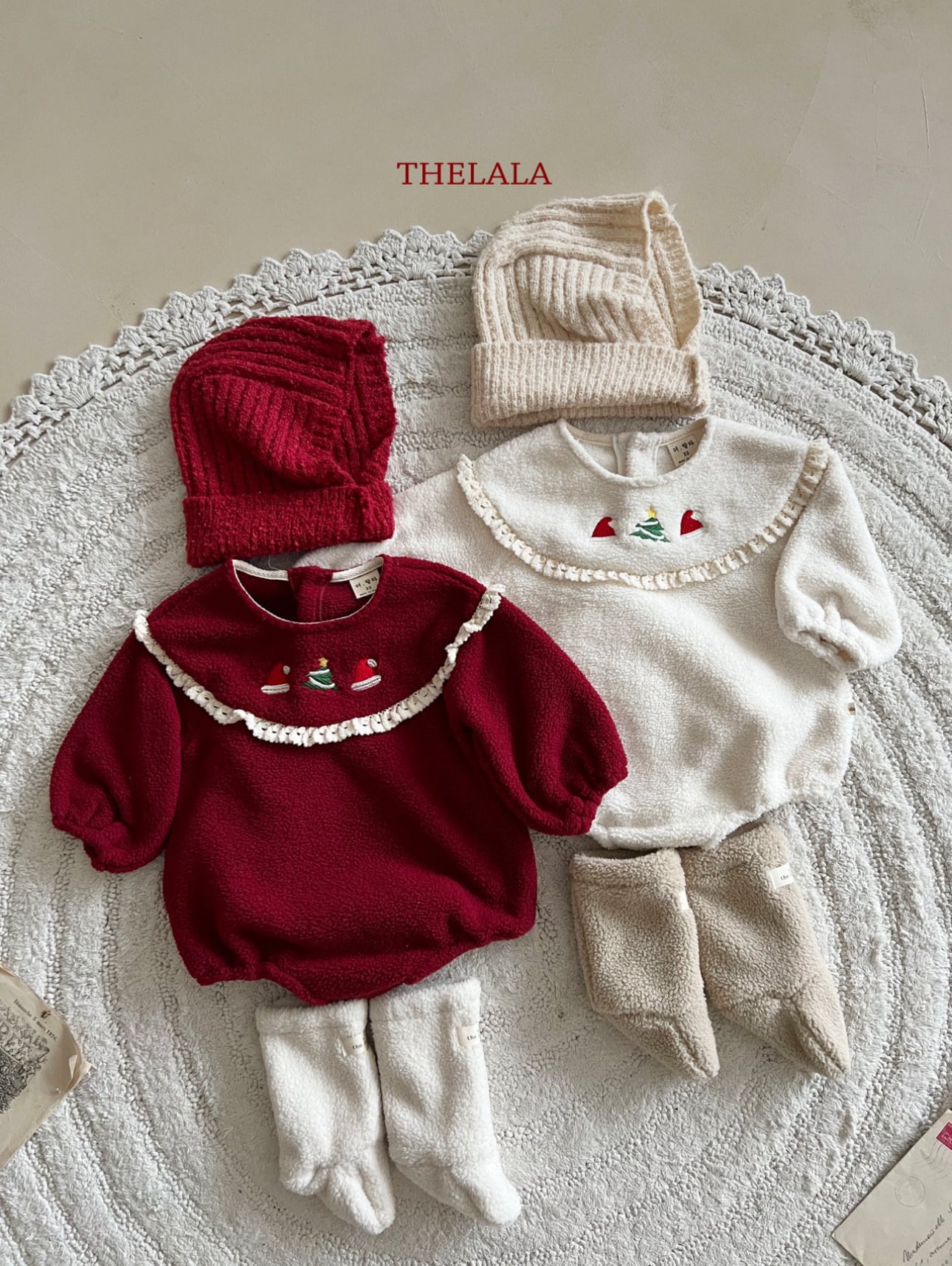 ❄️預訂 韓國直送❄️🇰🇷THELALA兩色聖誕圖案刺繡蕾絲花邊抓絨長袖包屁衣