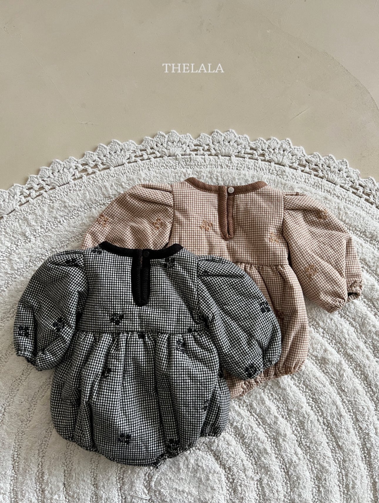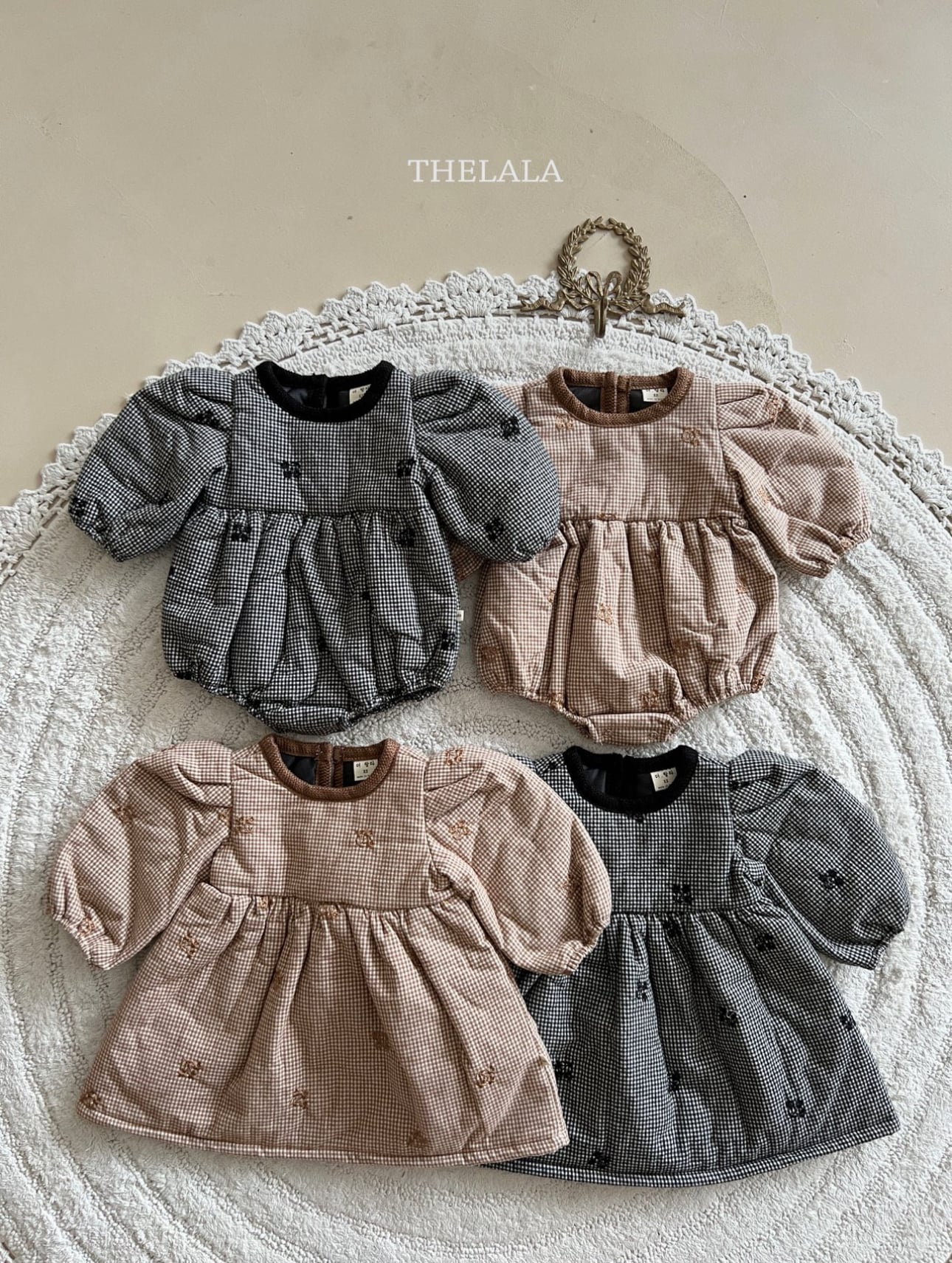 ❄️預訂 韓國直送❄️🇰🇷THELALA兩色花卉刺繡格紋泡泡袖包屁衣
