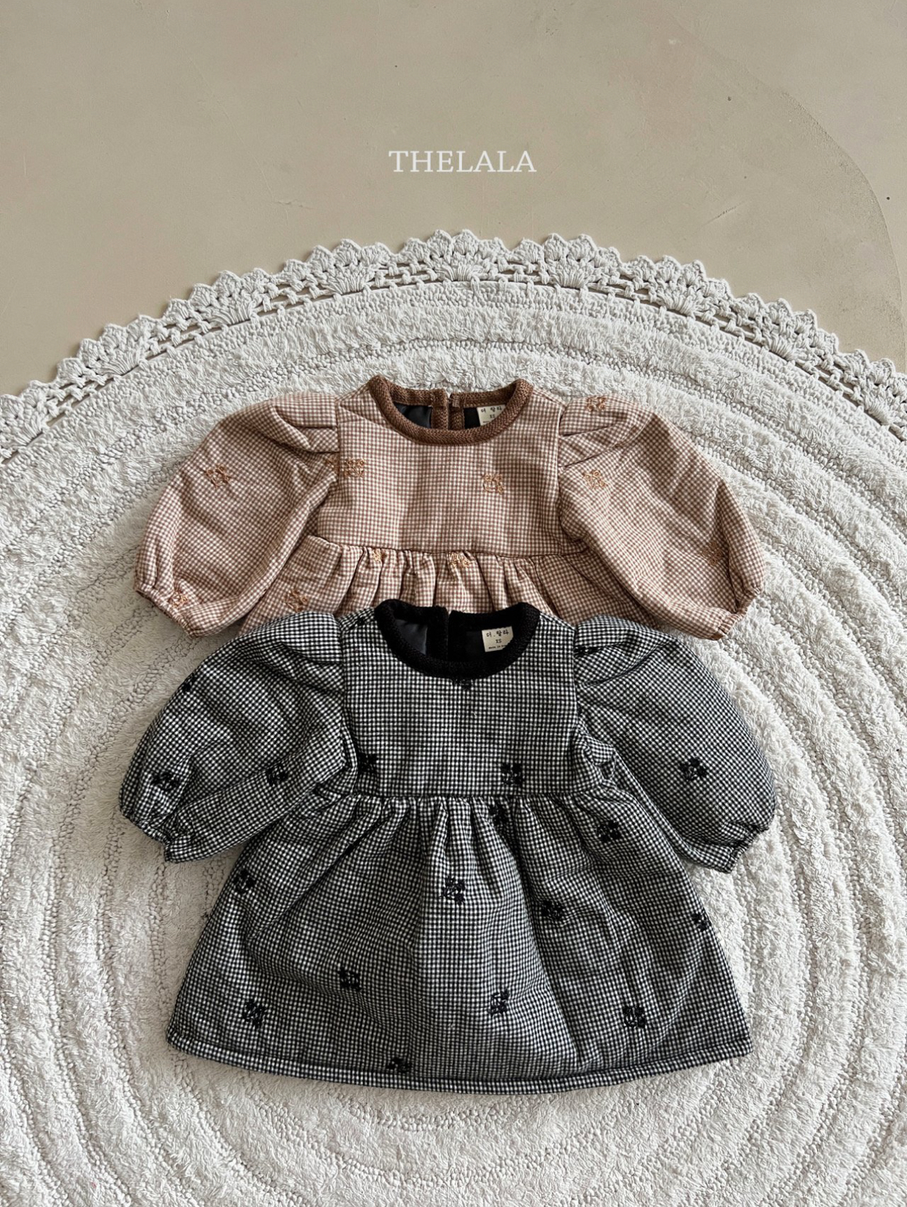 ❄️預訂 韓國直送❄️🇰🇷THELALA兩色花卉刺繡格紋泡泡袖連身裙
