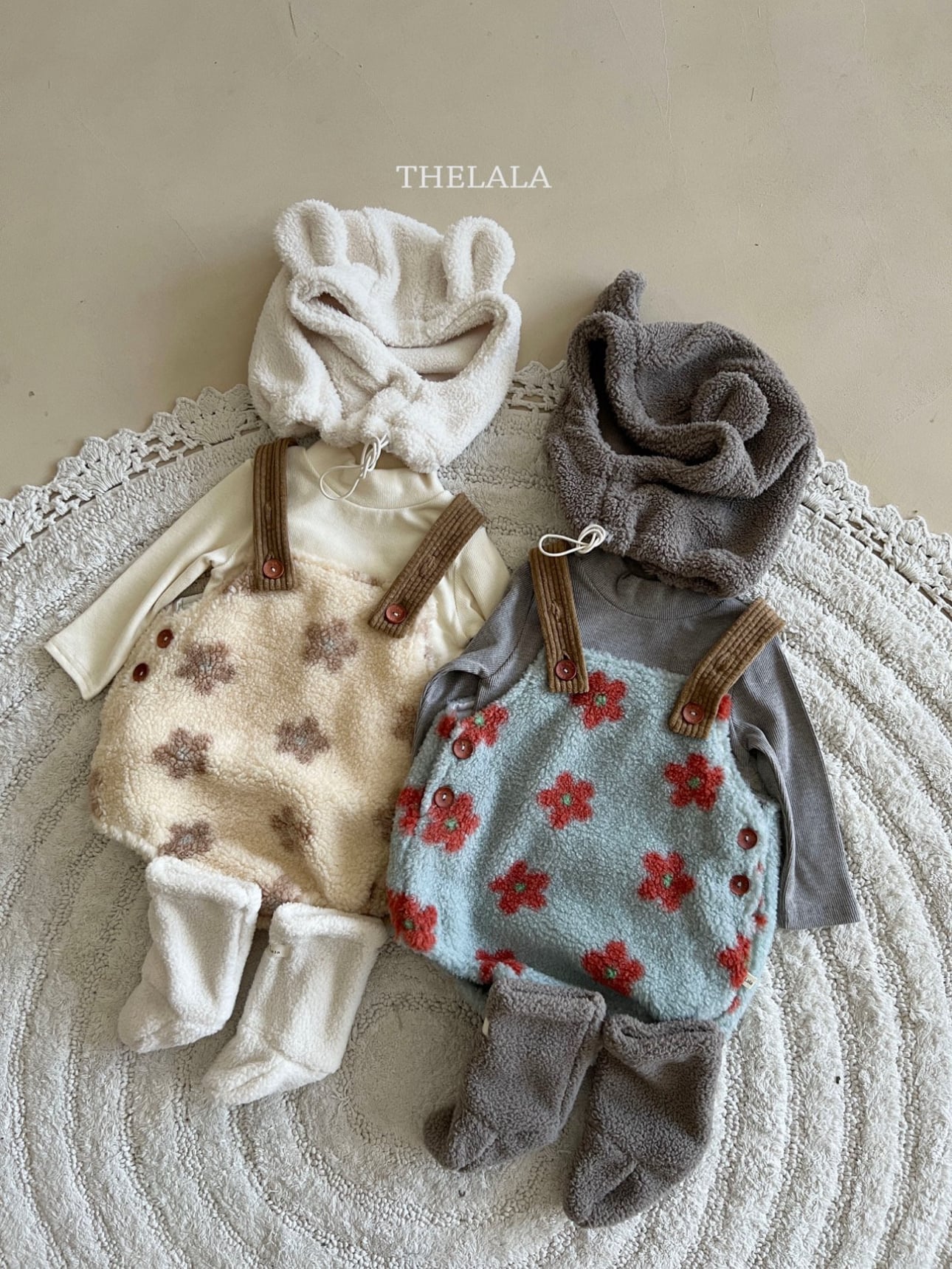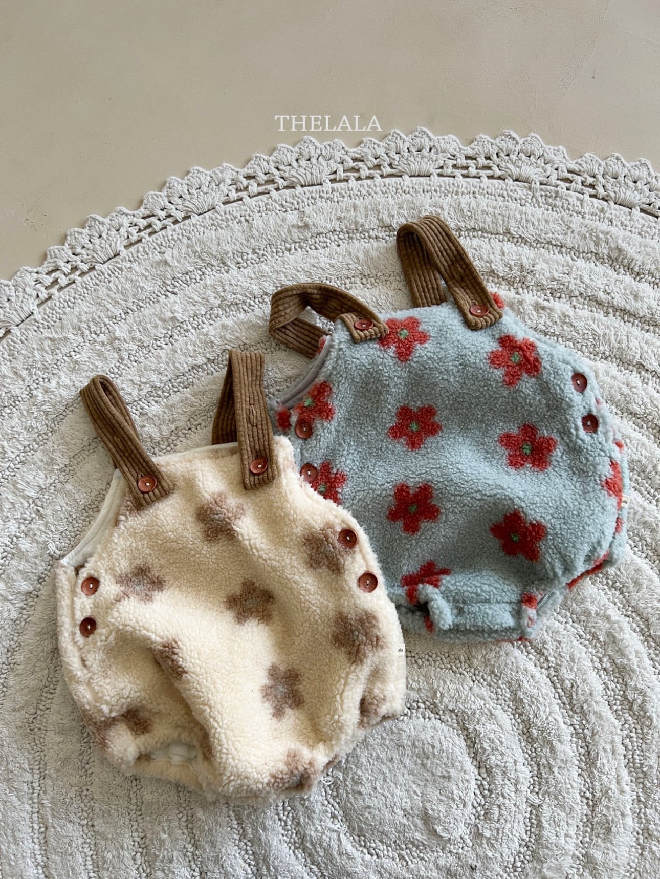 ❄️預訂 韓國直送❄️🇰🇷THELALA兩色花花圖案抓絨吊帶包屁衣