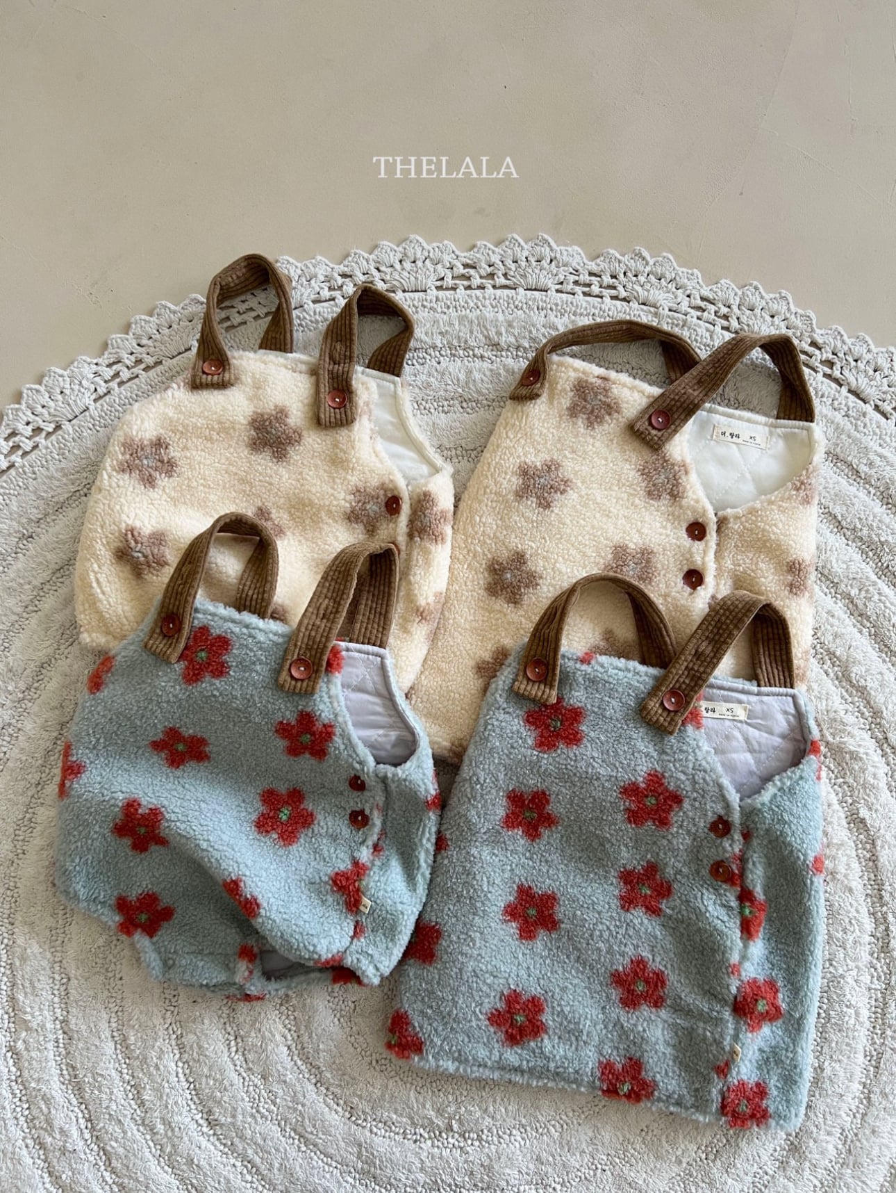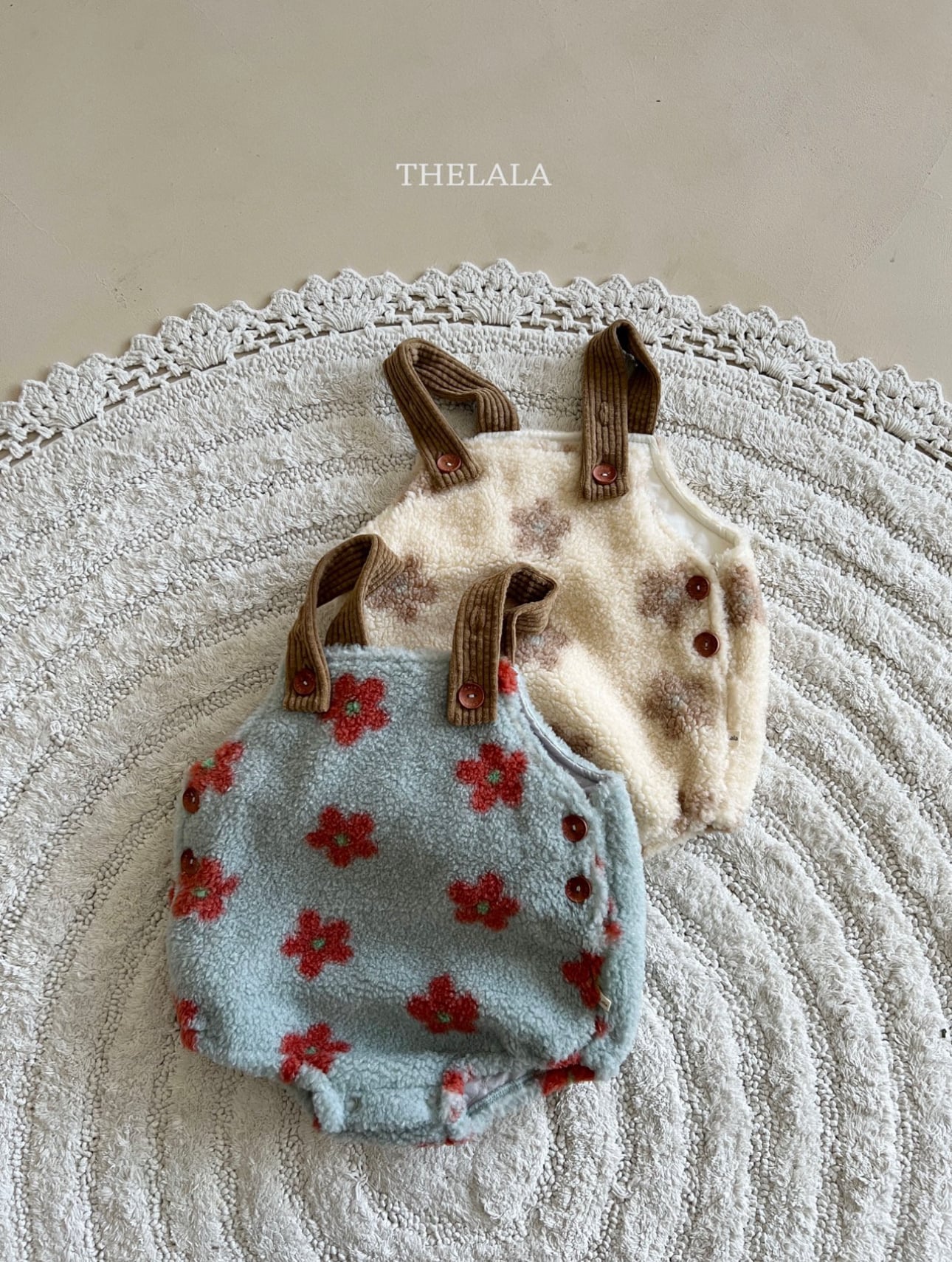 ❄️預訂 韓國直送❄️🇰🇷THELALA兩色花花圖案抓絨吊帶包屁衣 *不包括其他服飾 🚚預計貨期:約14-21個工作日 (貨期有機會提早或延遲) 🎨顏色:奶油|天藍 📐尺碼:XS(70)|S(80)|M(90) MADE IN KOREA🇰🇷 📦熱門貨品將跟據客人付款先後次序分配💞 🔺如產品出現斷貨將會全數退回🔺 ⚠️除非有列明 否則不包含其他服飾及配飾