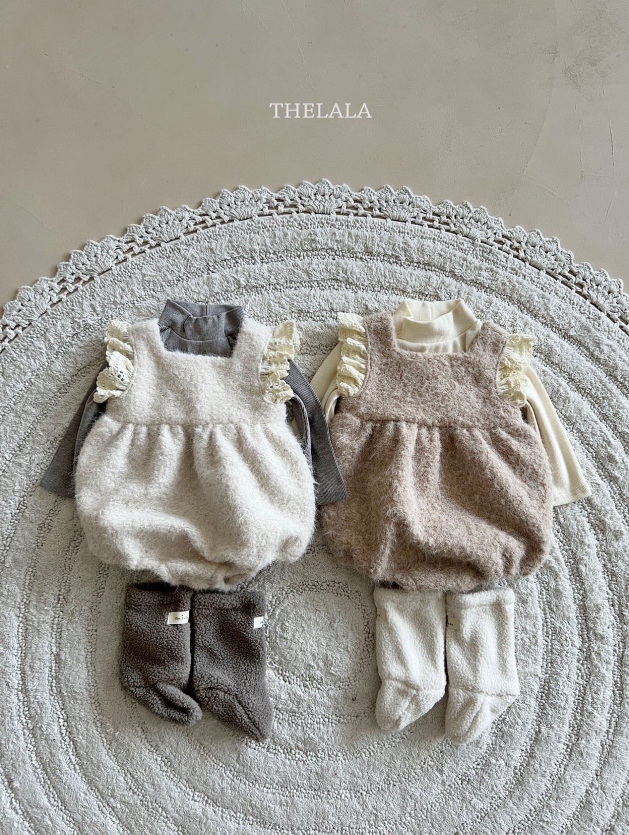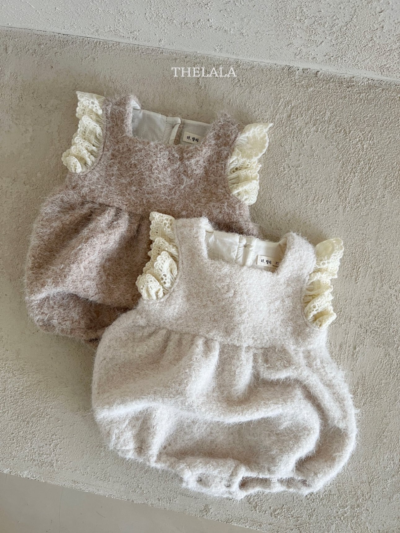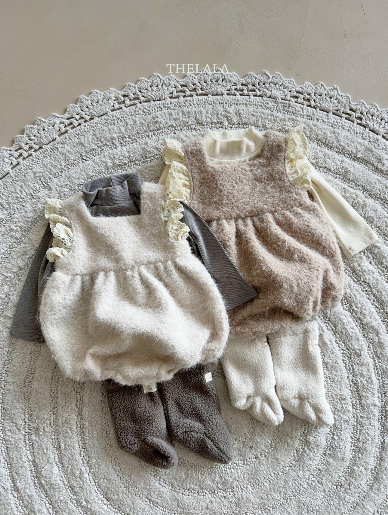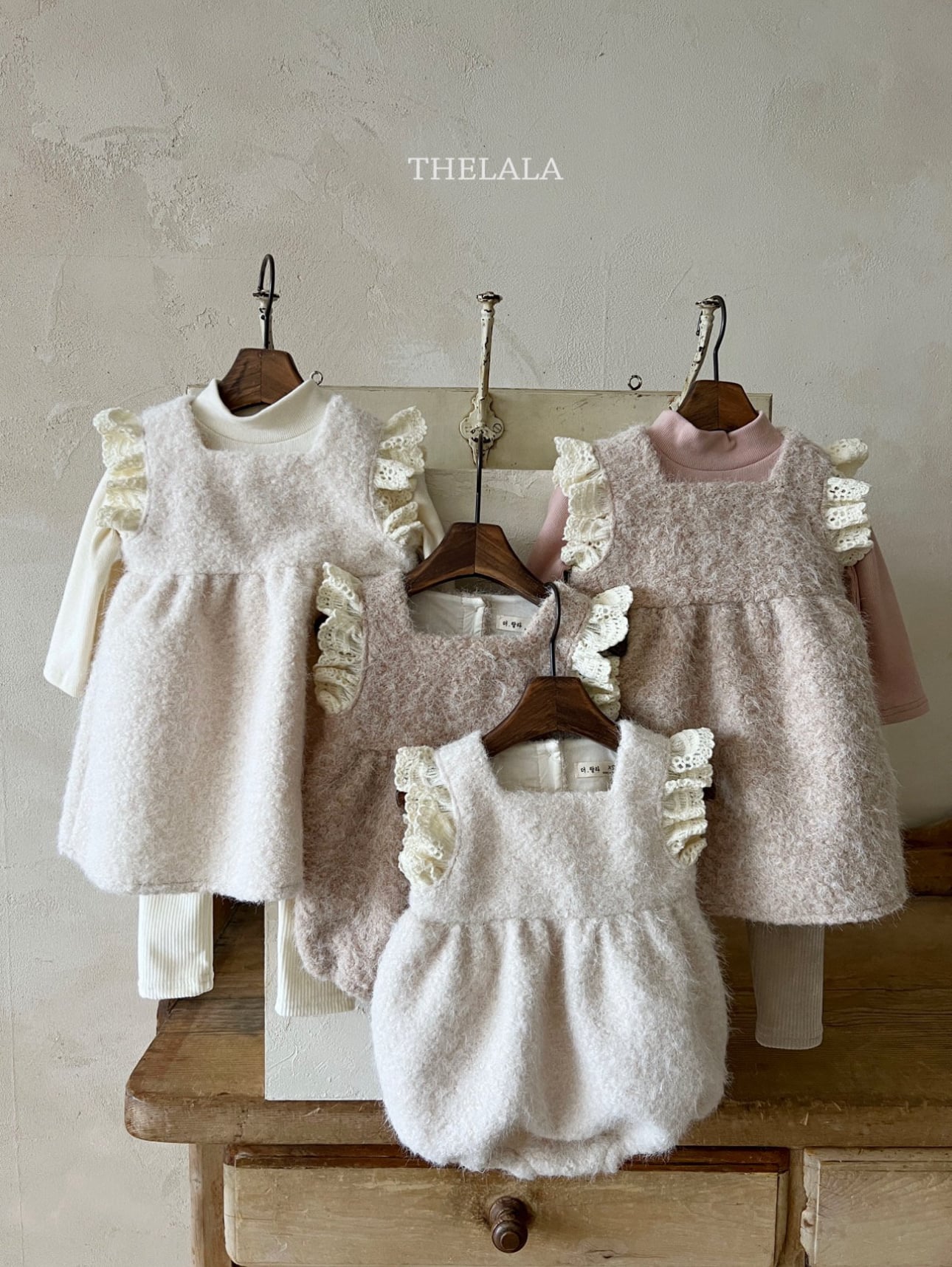 ❄️預訂 韓國直送❄️🇰🇷THELALA兩色蕾絲花邊絨布背心包屁衣