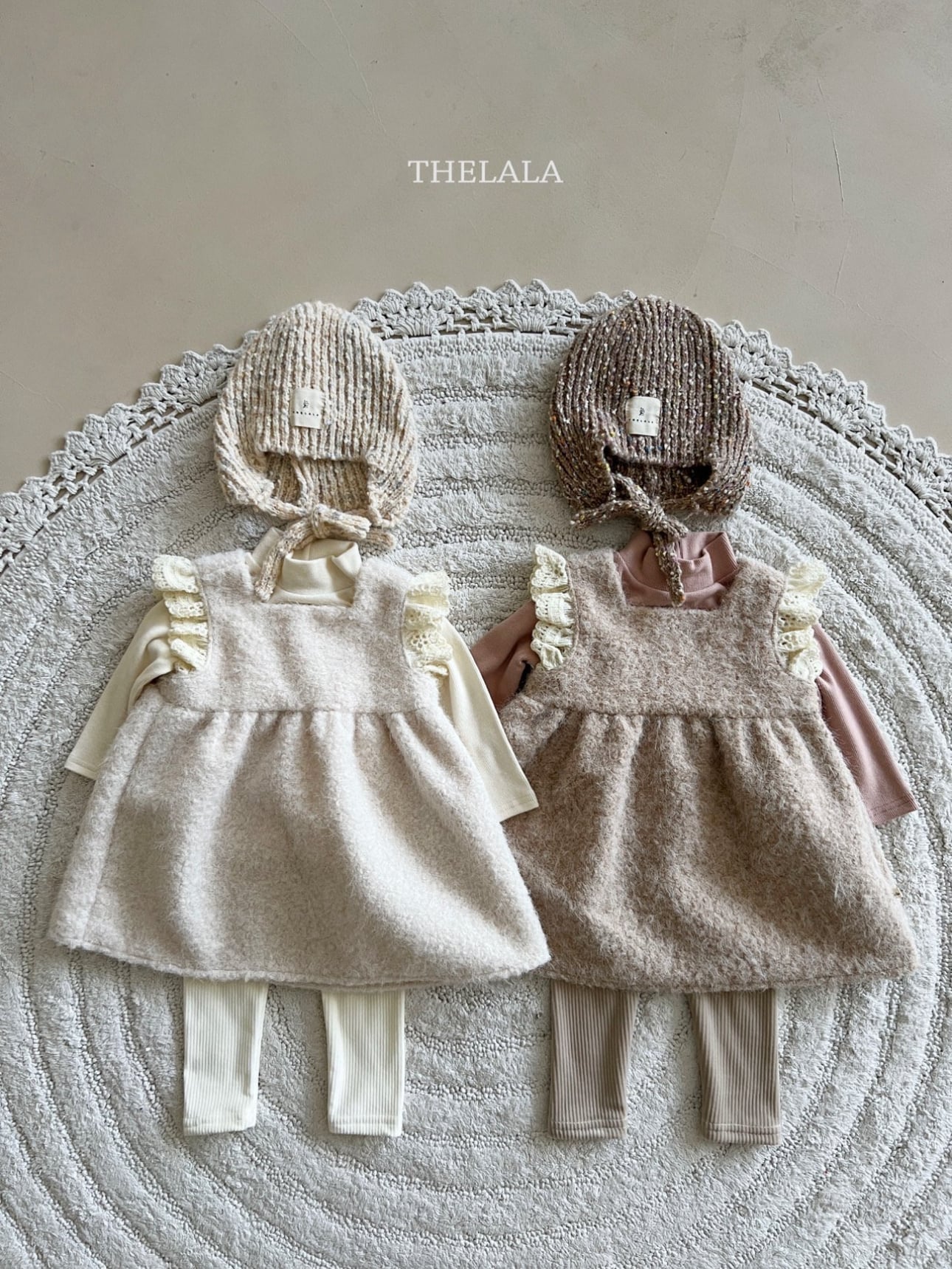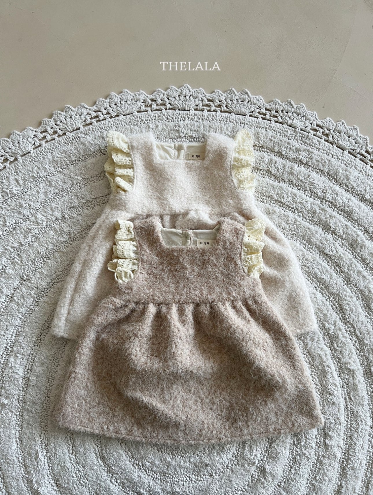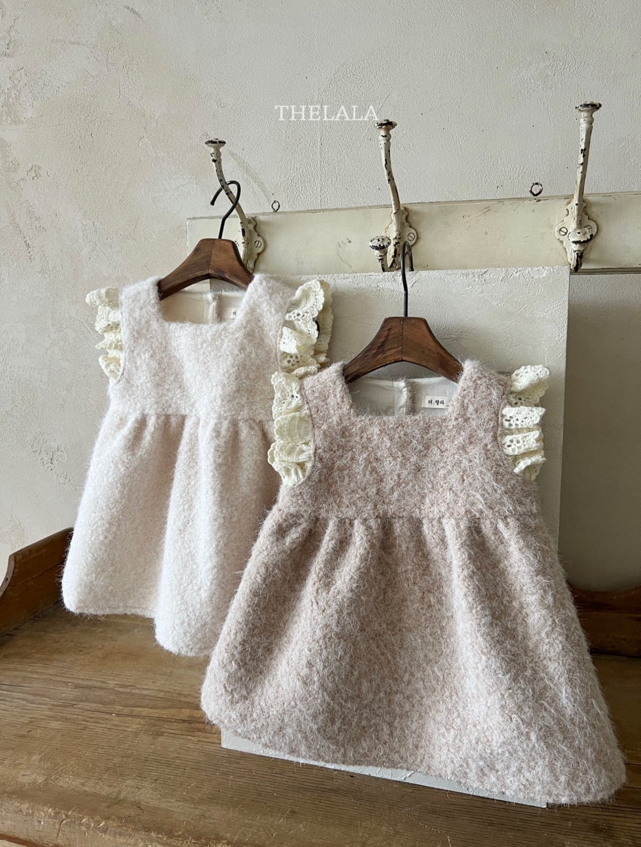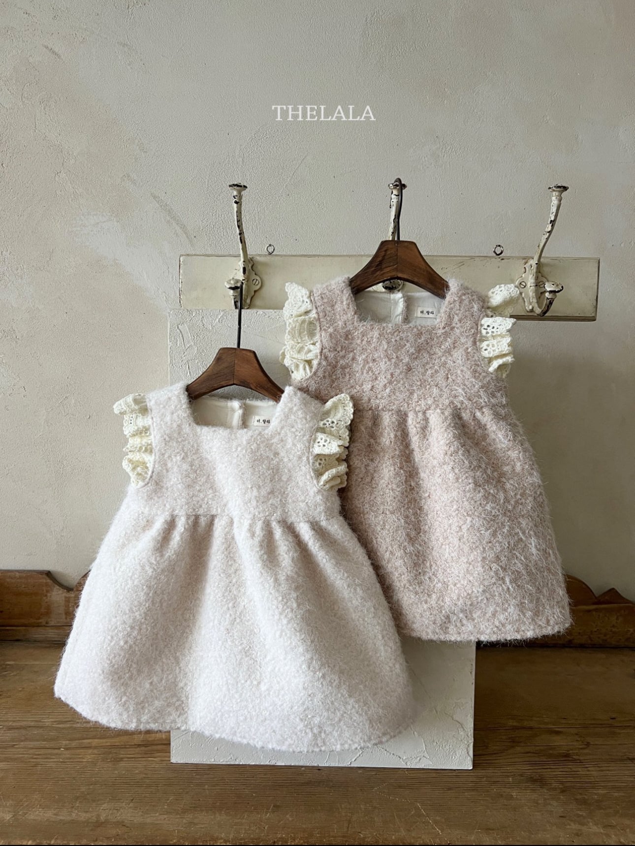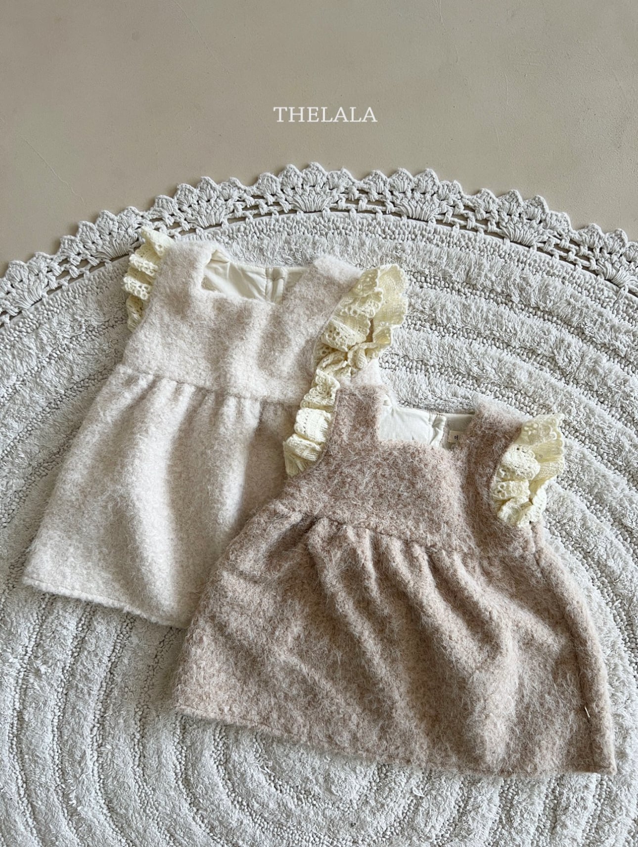 ❄️預訂 韓國直送❄️🇰🇷THELALA兩色蕾絲花邊絨布背心連身裙