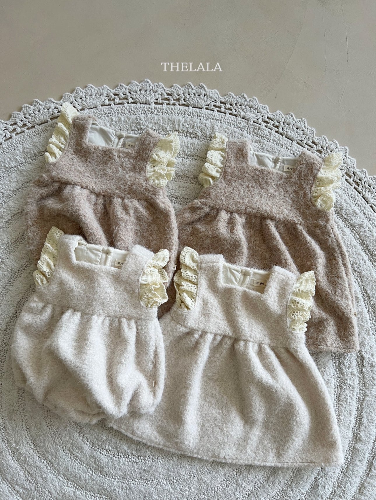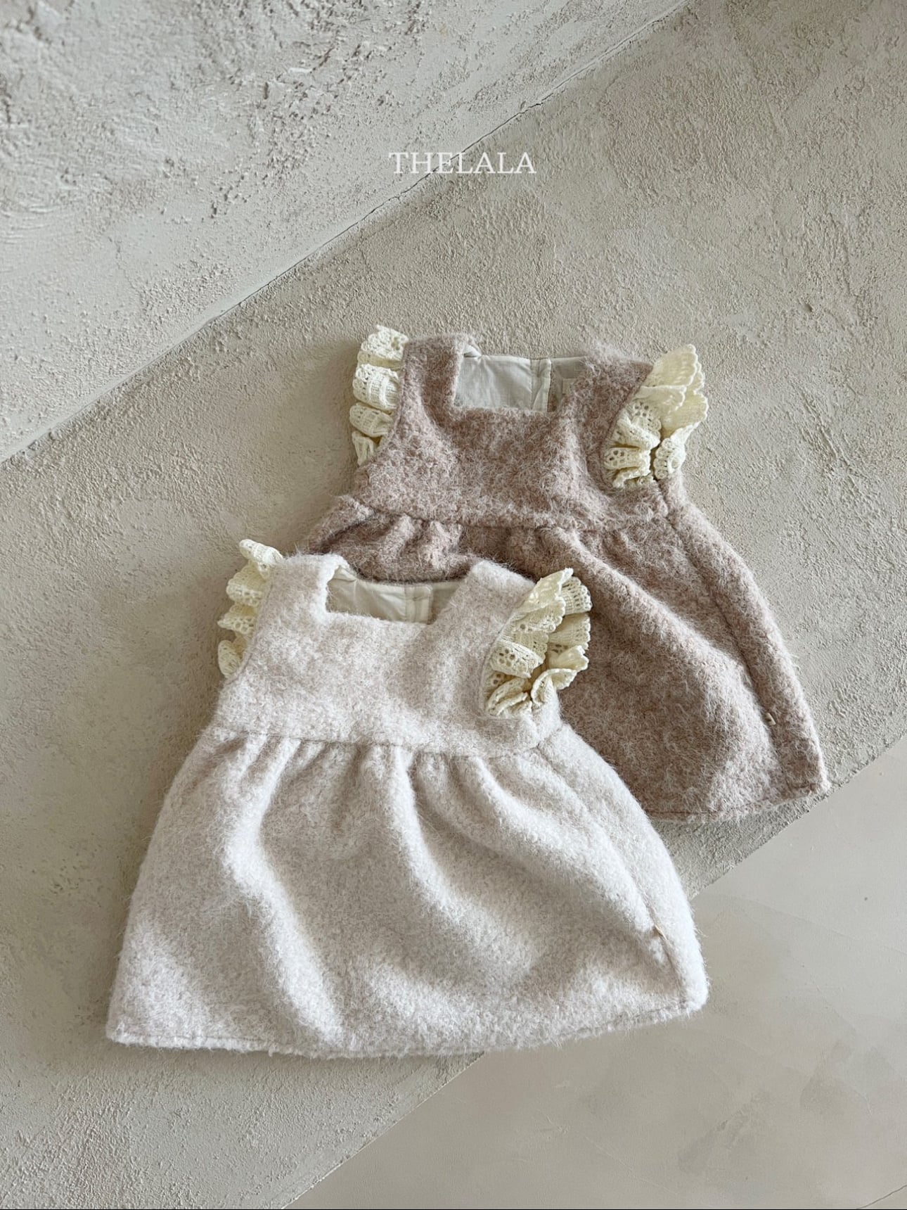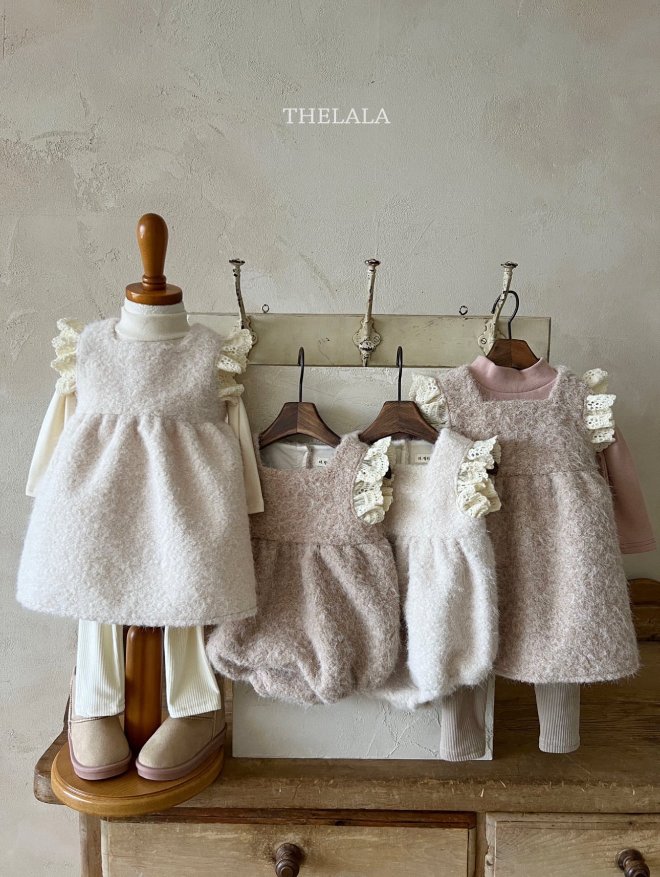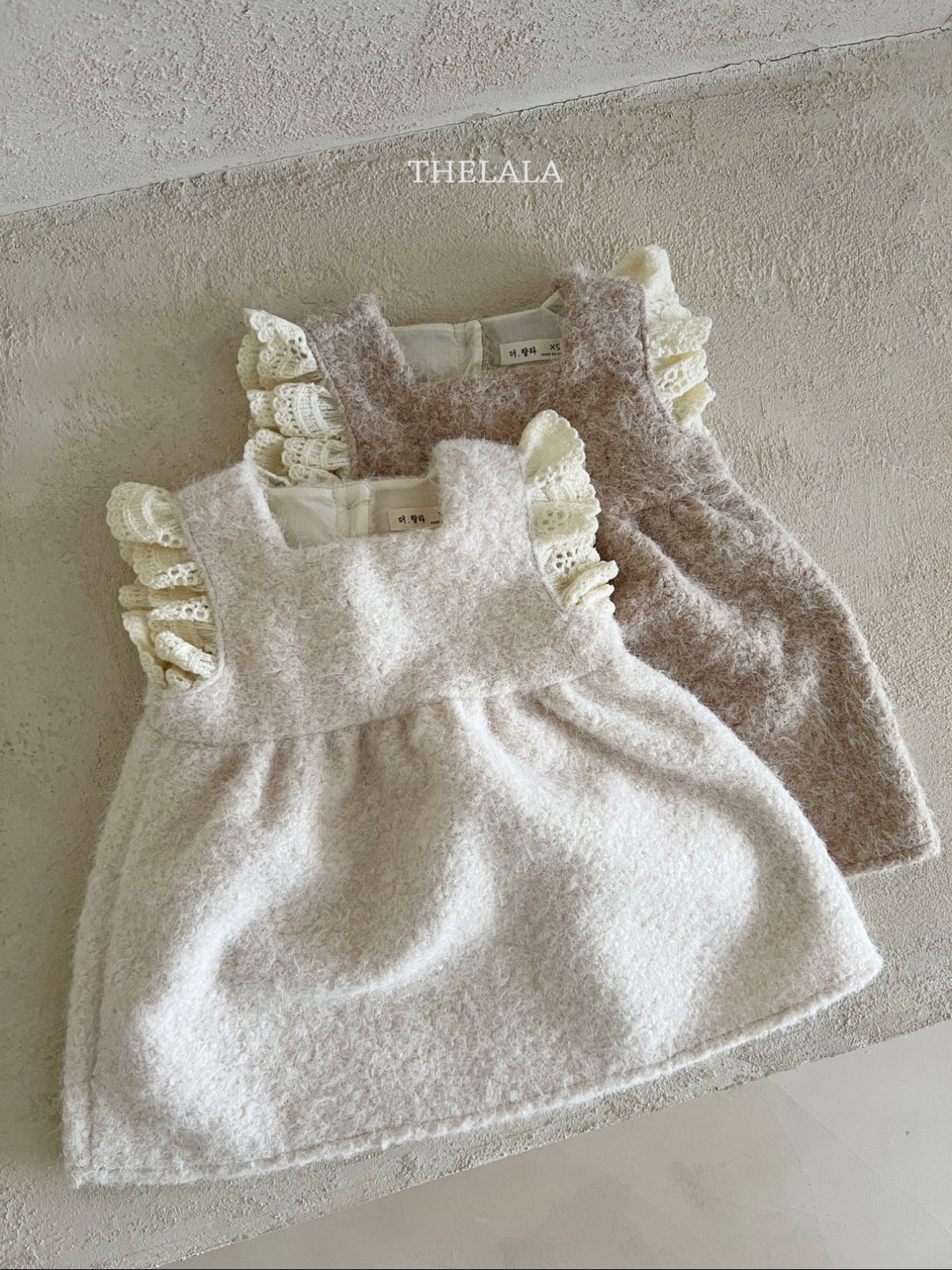 ❄️預訂 韓國直送❄️🇰🇷THELALA兩色蕾絲花邊絨布背心連身裙 *不包括其他服飾 🚚預計貨期:約14-21個工作日 (貨期有機會提早或延遲) 🎨顏色:米白|米粉 📐尺碼:XS(80)|S(90)|M(100)|L(110)|XL(120) MADE IN KOREA🇰🇷 📦熱門貨品將跟據客人付款先後次序分配💞 🔺如產品出現斷貨將會全數退回🔺 ⚠️除非有列明 否則不包含其他服飾及配飾