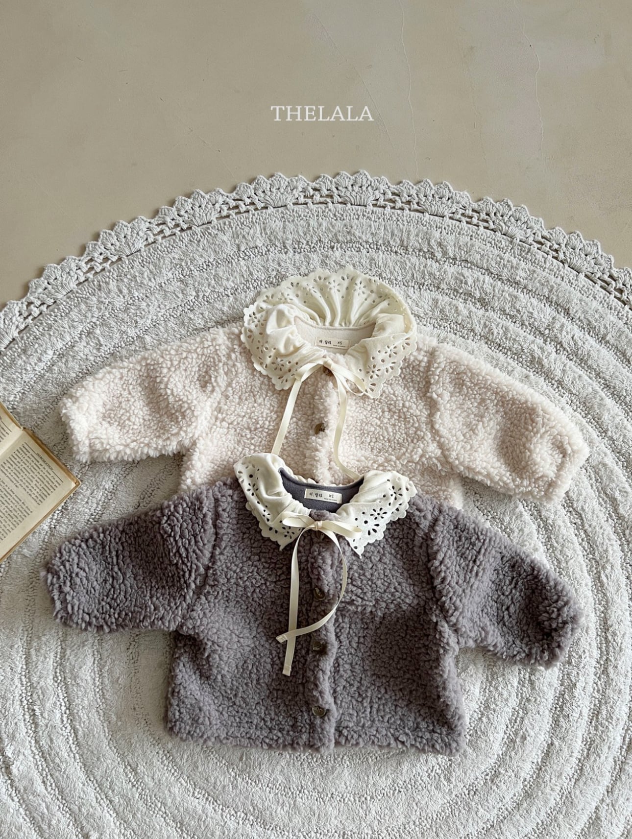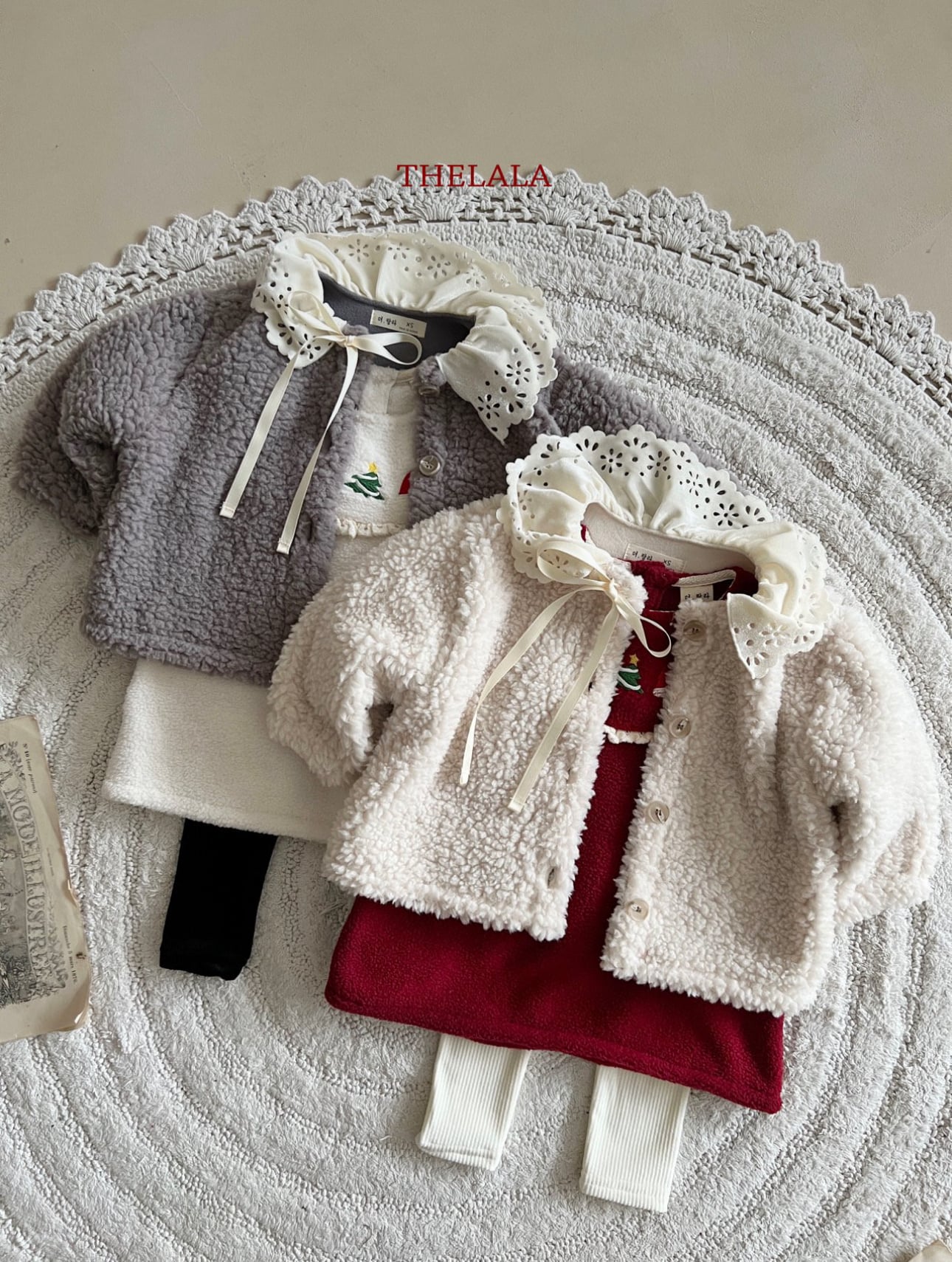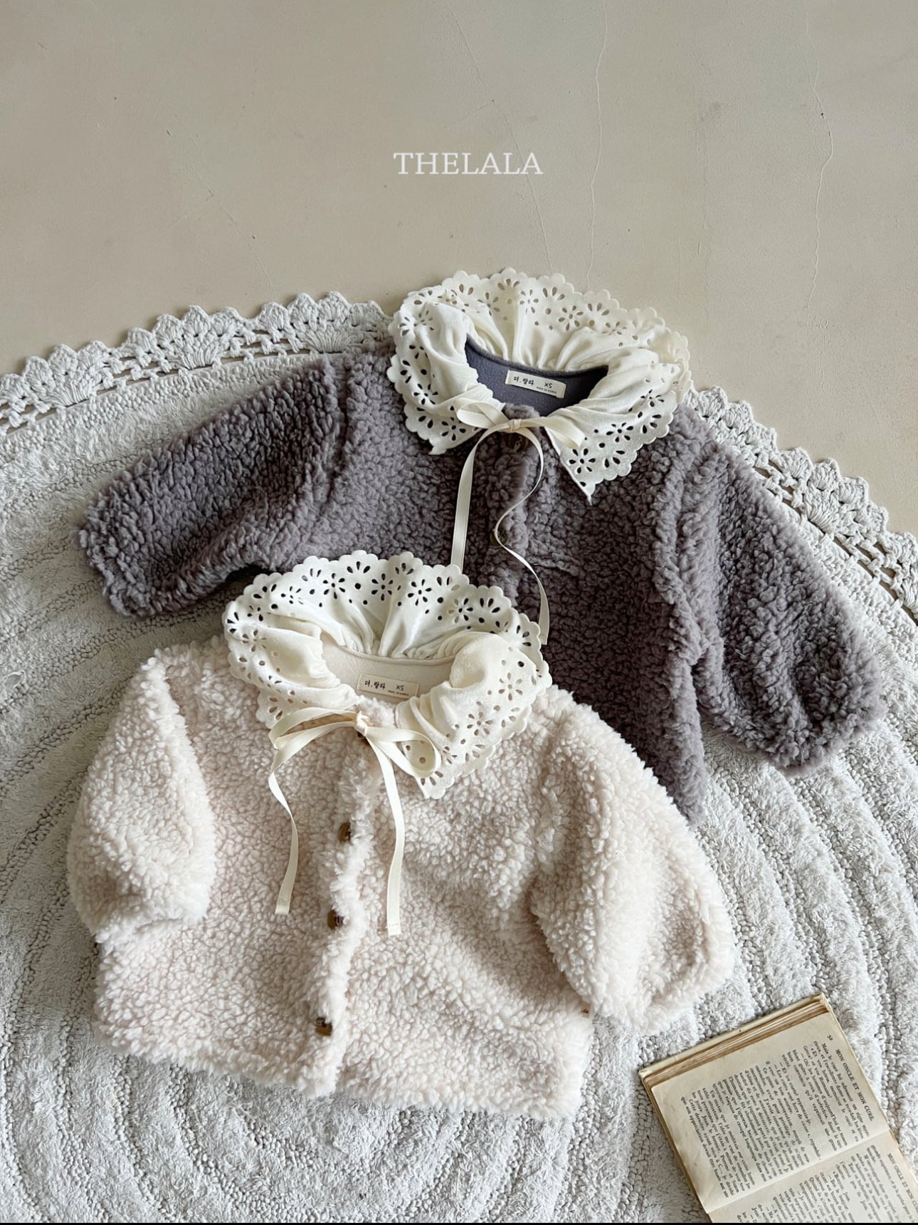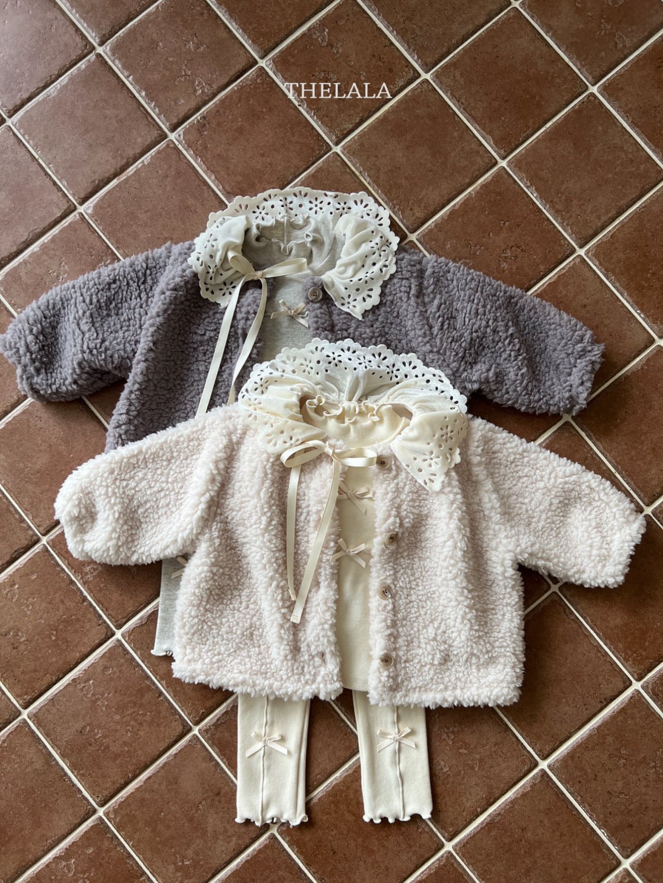 ❄️預訂 韓國直送❄️🇰🇷THELALA兩色蕾絲領絲帶抓絨開襟外套