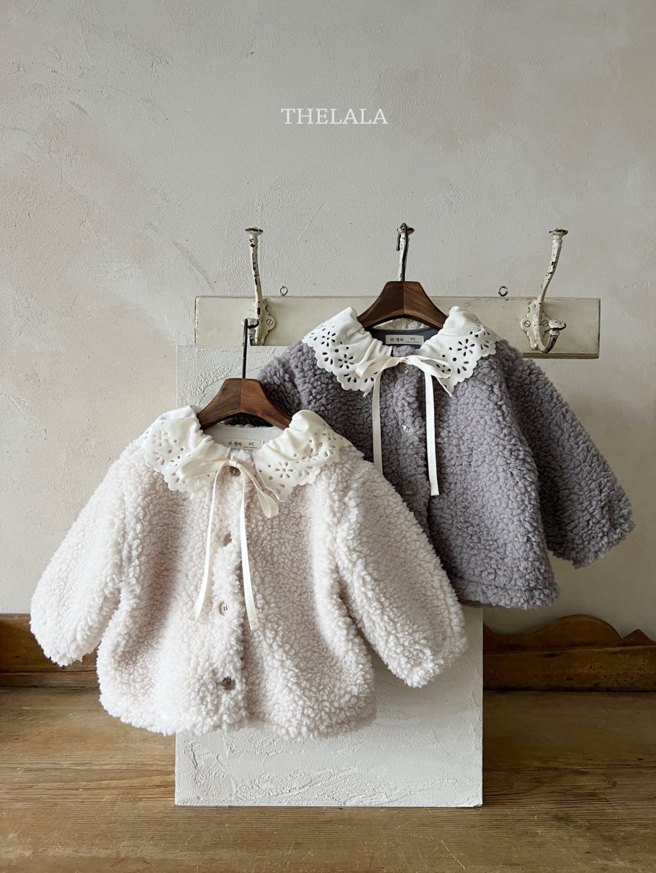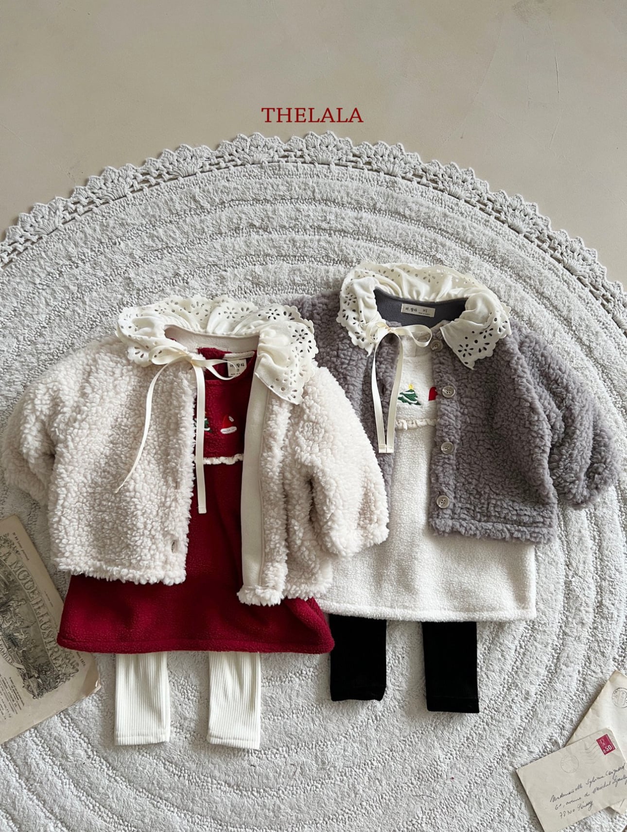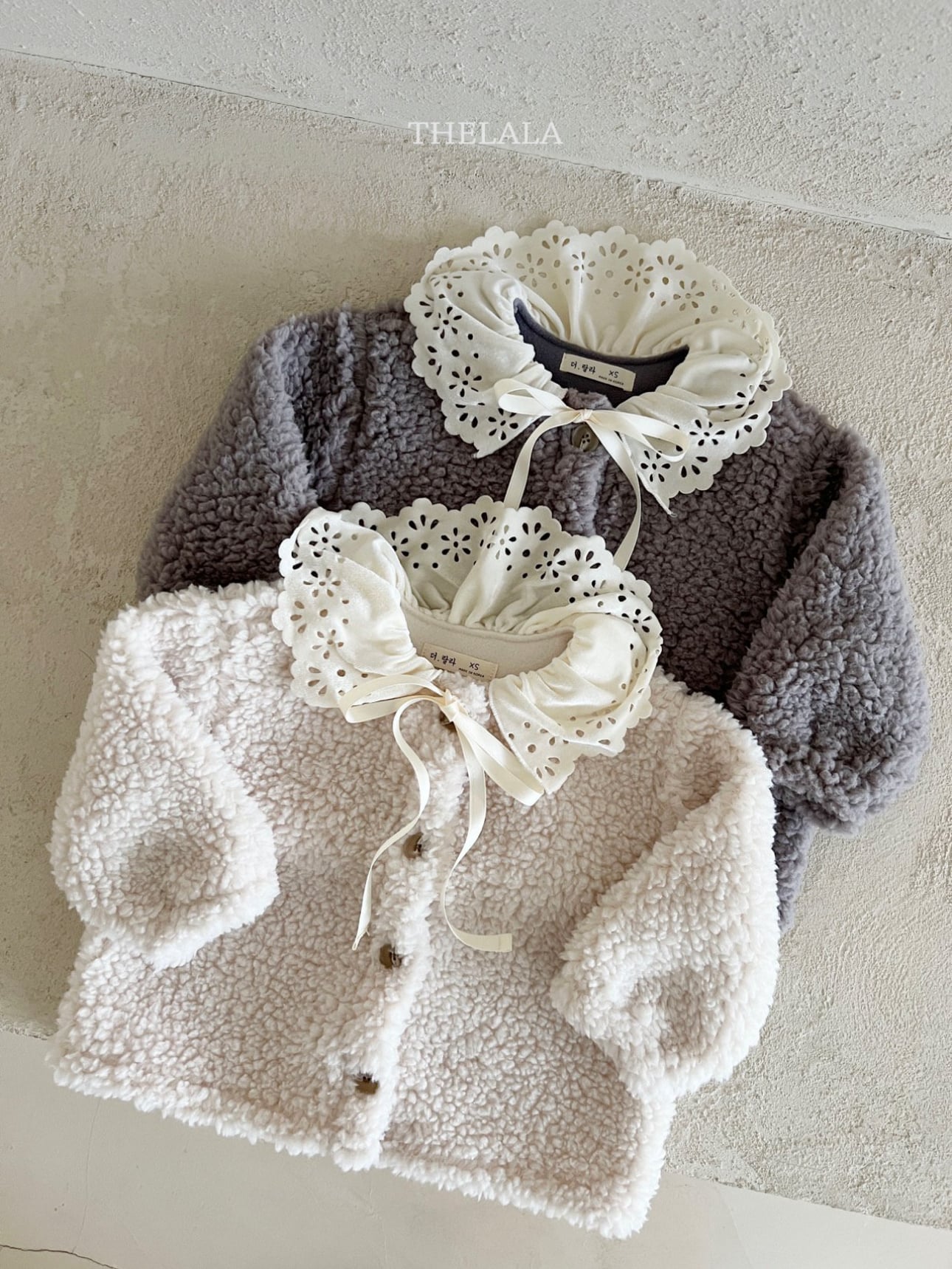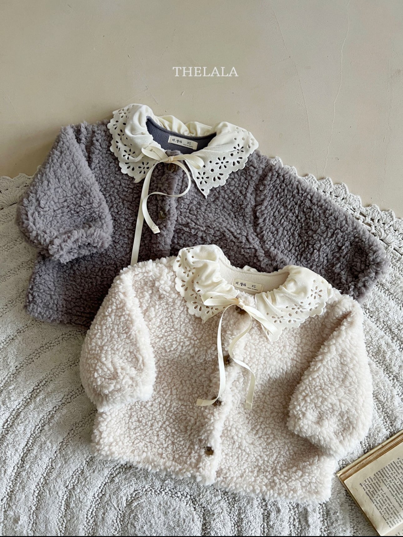 ❄️預訂 韓國直送❄️🇰🇷THELALA兩色蕾絲領絲帶抓絨開襟外套