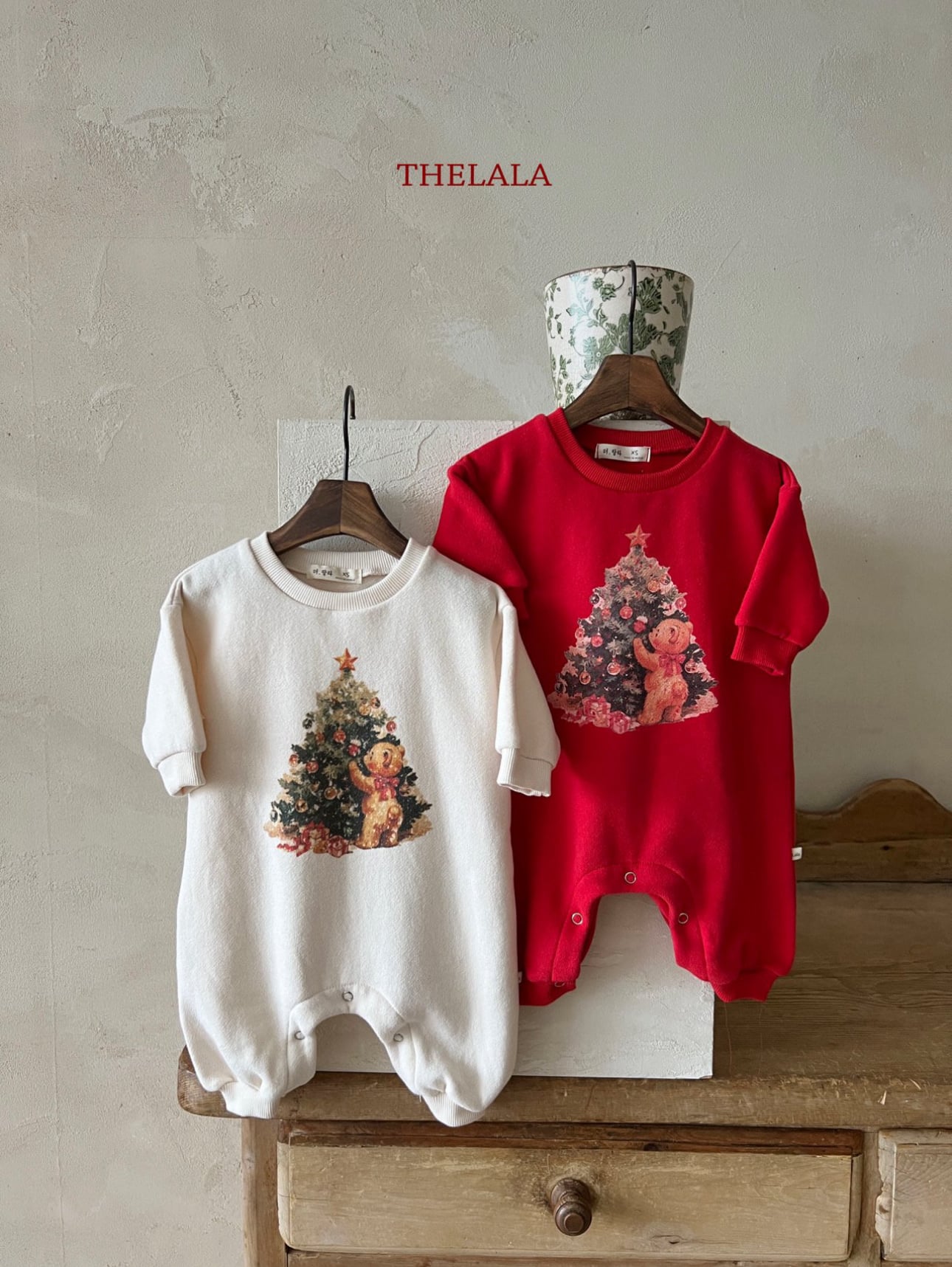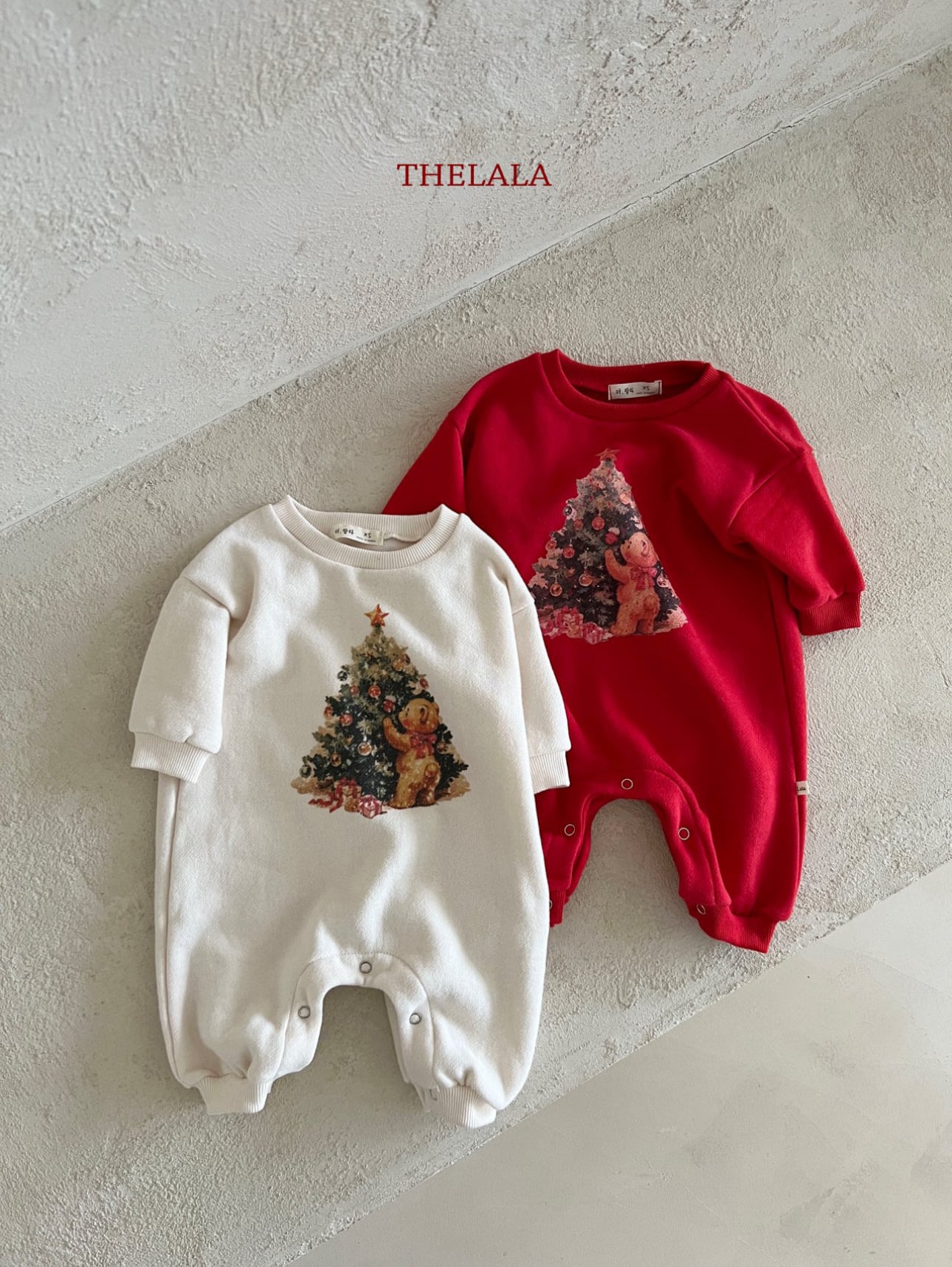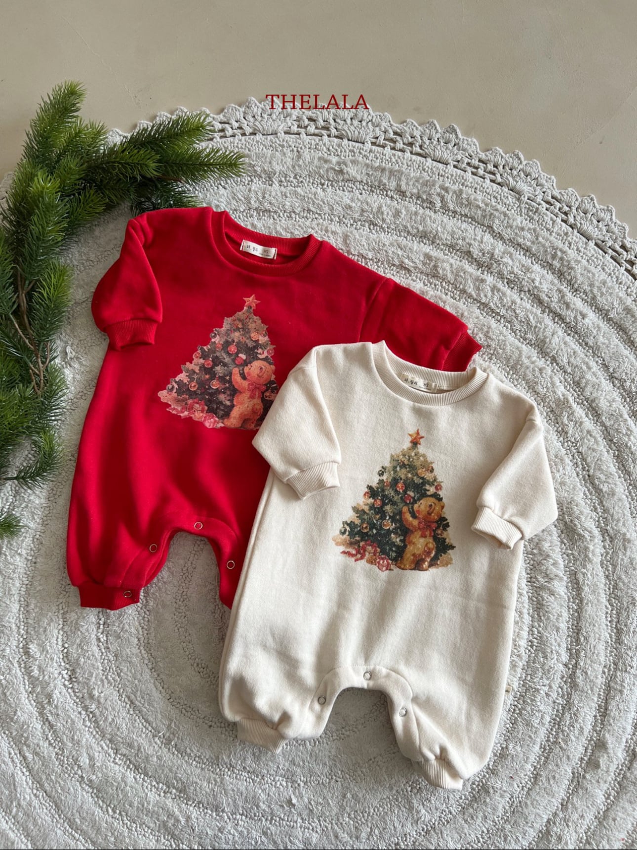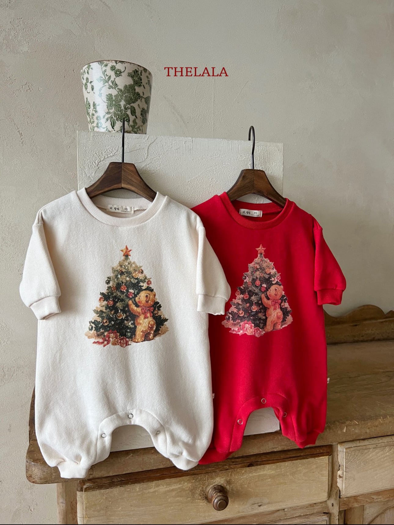 ❄️預訂 韓國直送❄️🇰🇷THELALA兩色親子款聖誕樹小熊印花抓絨長袖連身服
