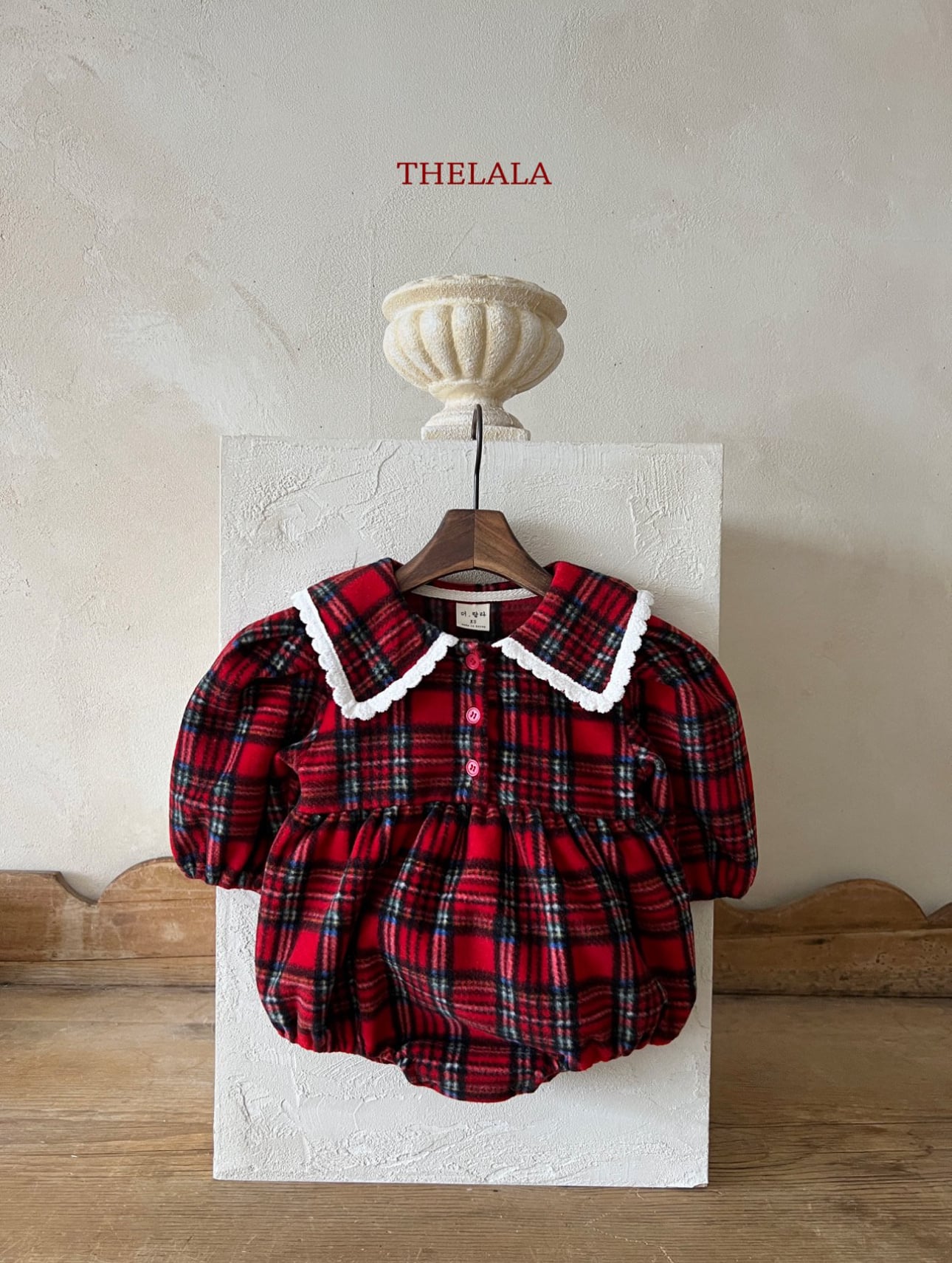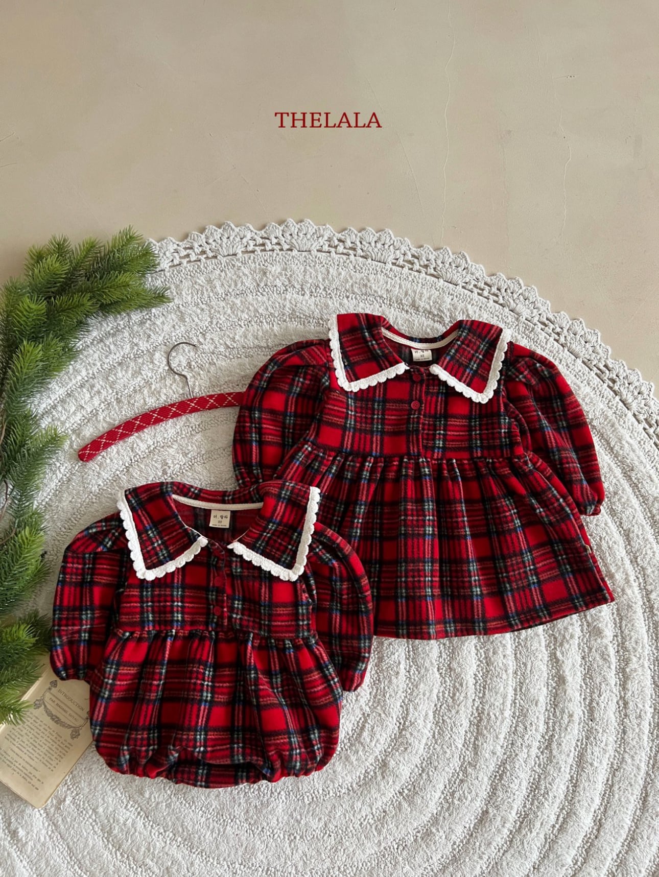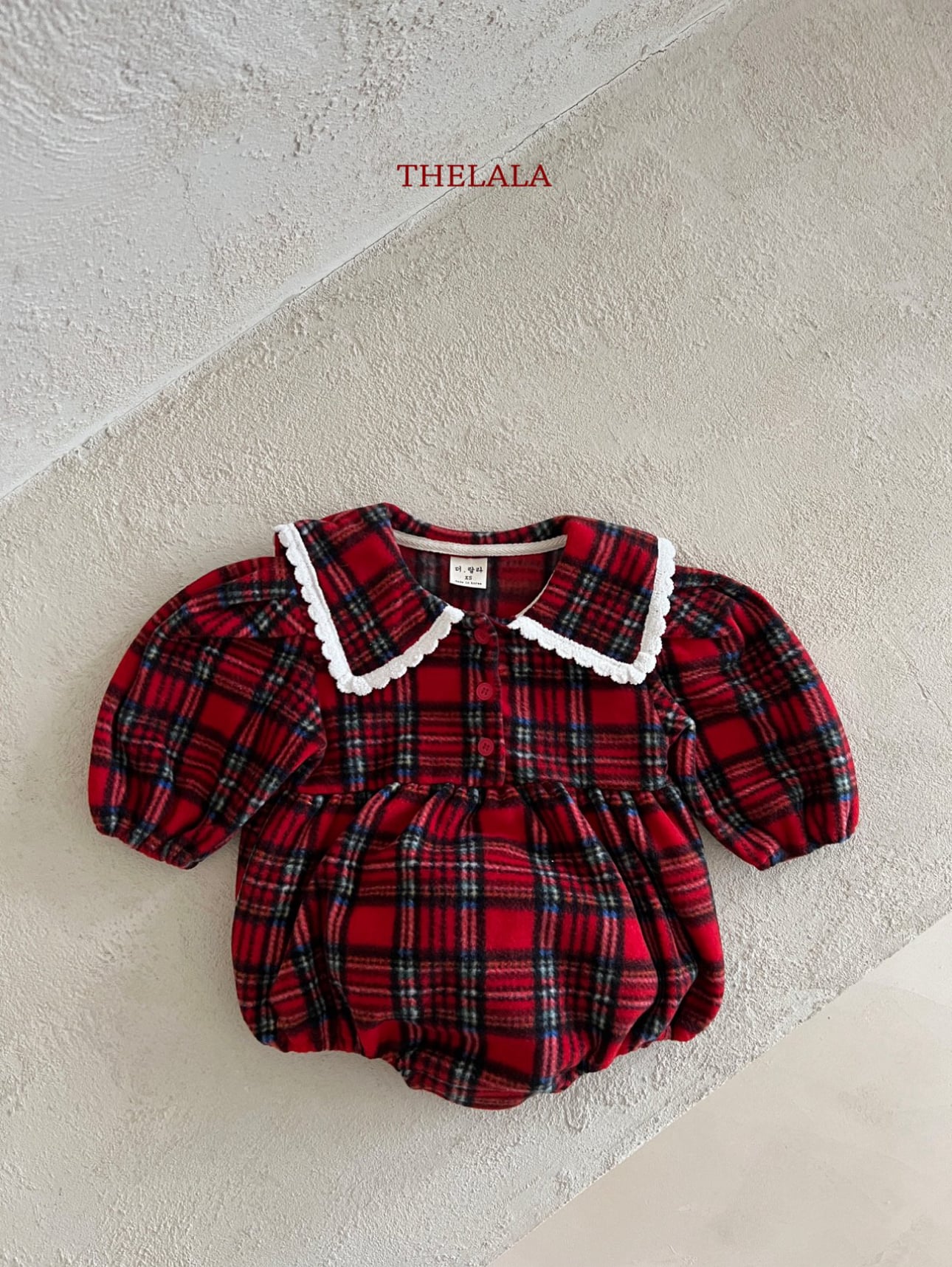 ❄️預訂 韓國直送❄️🇰🇷THELALA紅色格紋蕾絲花邊翻領長袖包屁衣