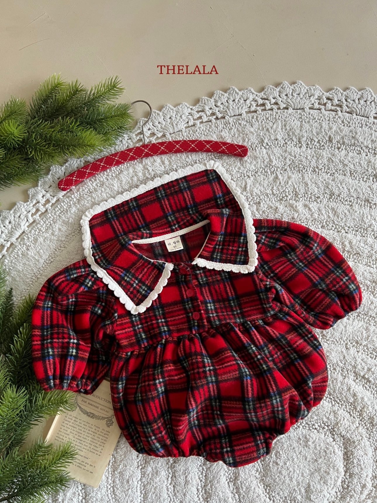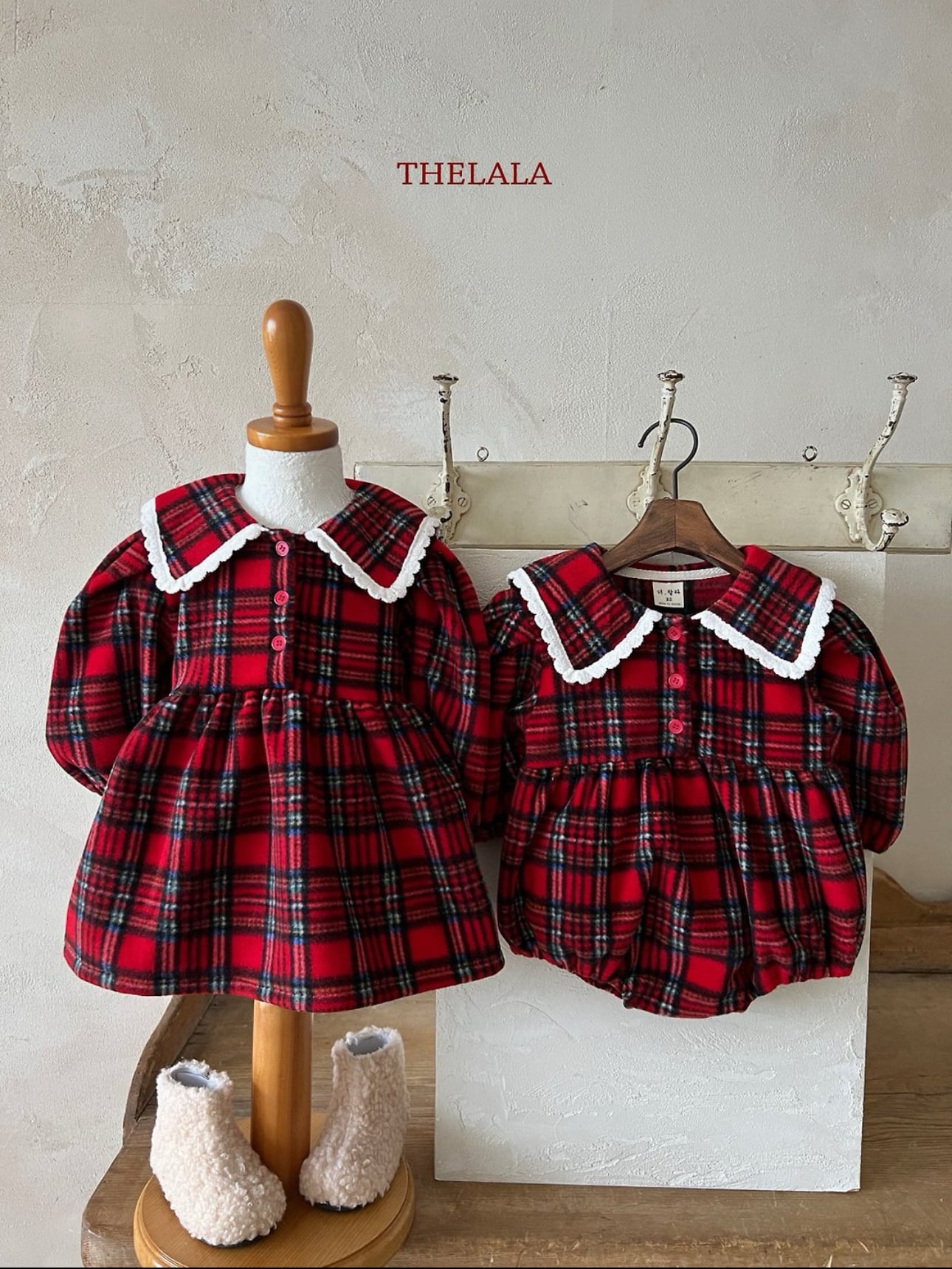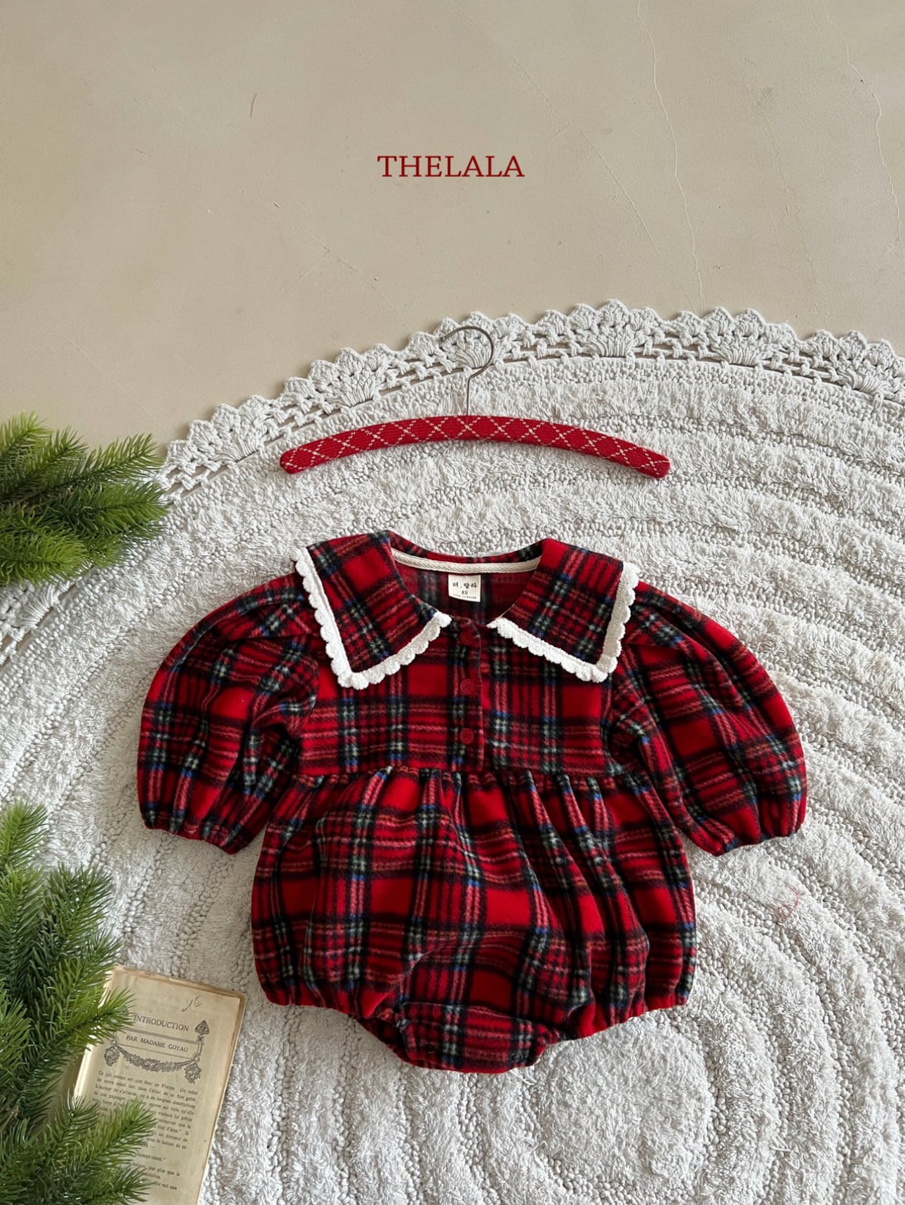 ❄️預訂 韓國直送❄️🇰🇷THELALA紅色格紋蕾絲花邊翻領長袖包屁衣