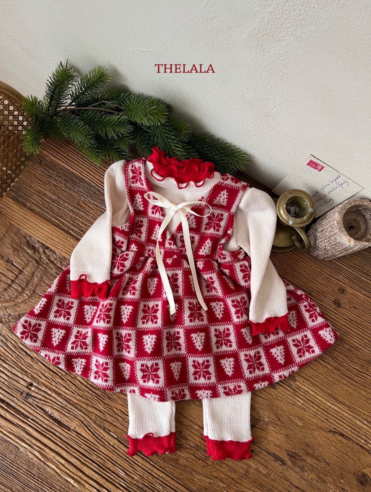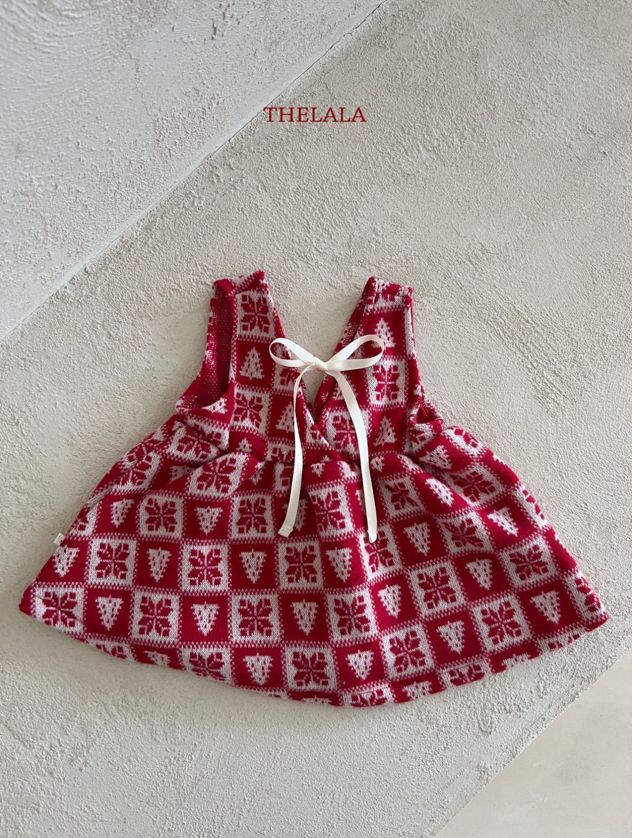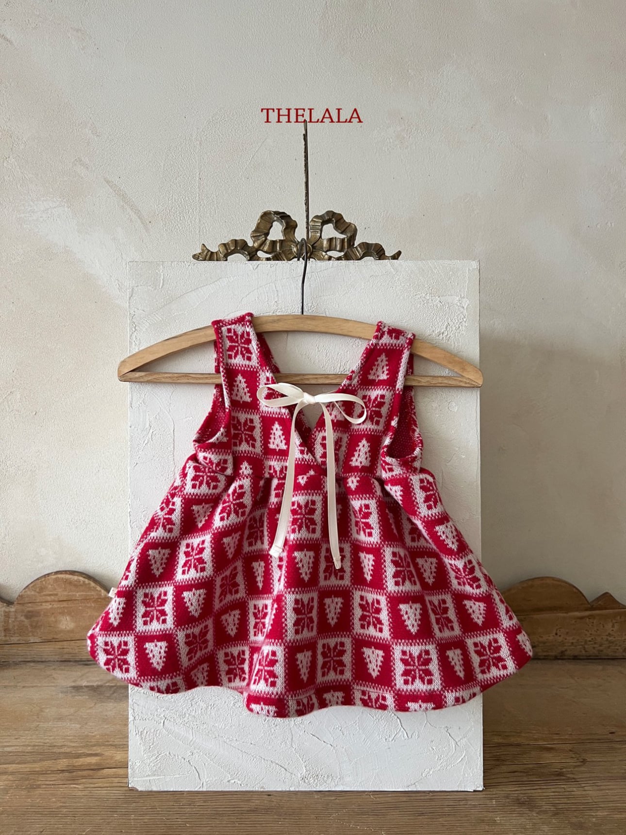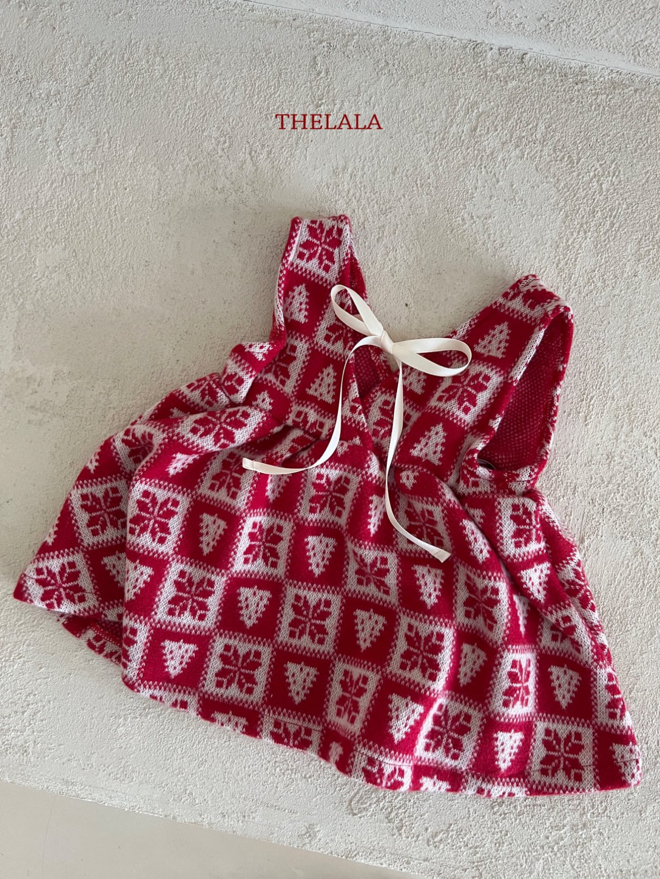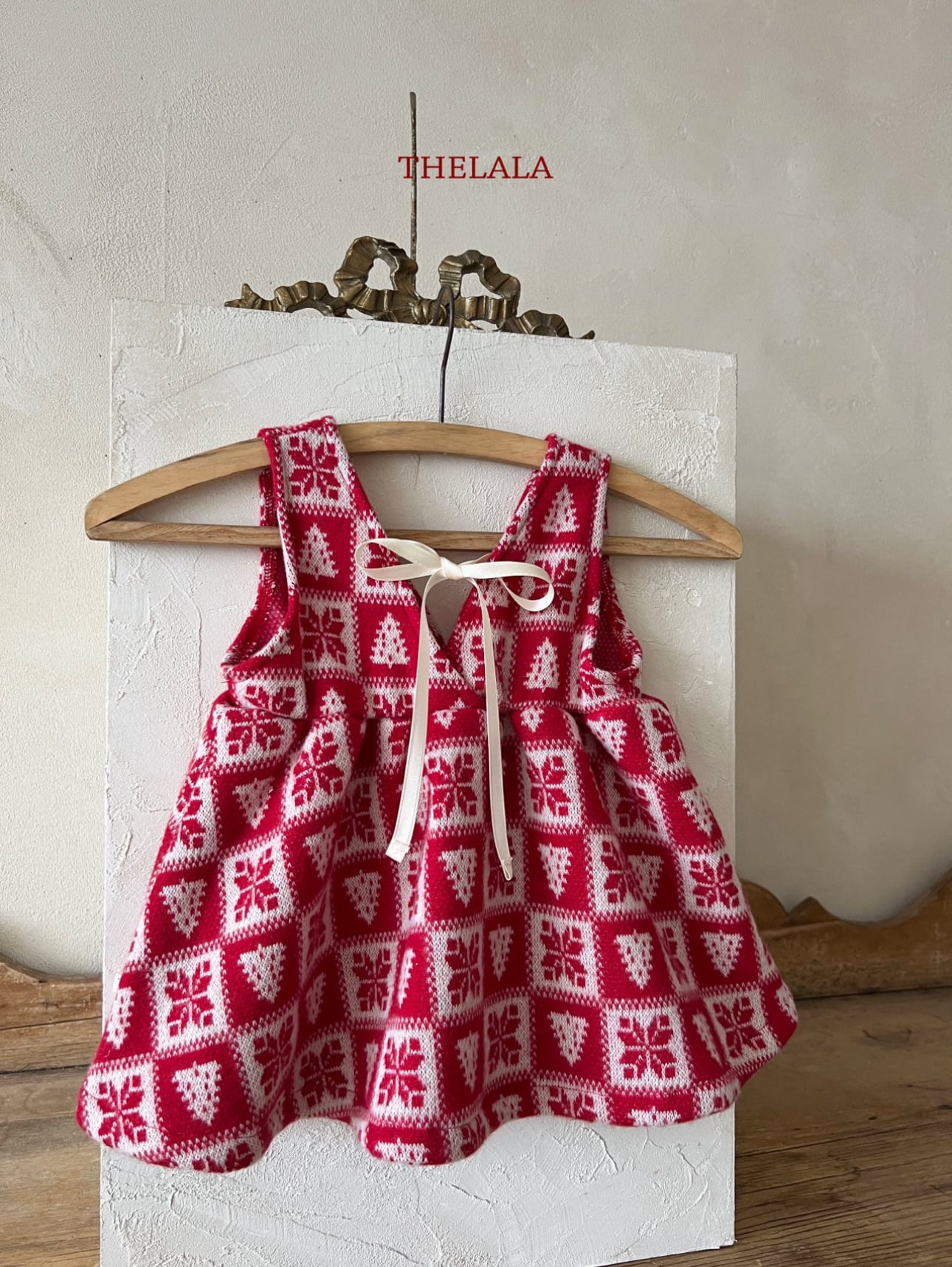 ❄️預訂 韓國直送❄️🇰🇷THELALA紅色聖誕圖案絲帶針織背心連身裙