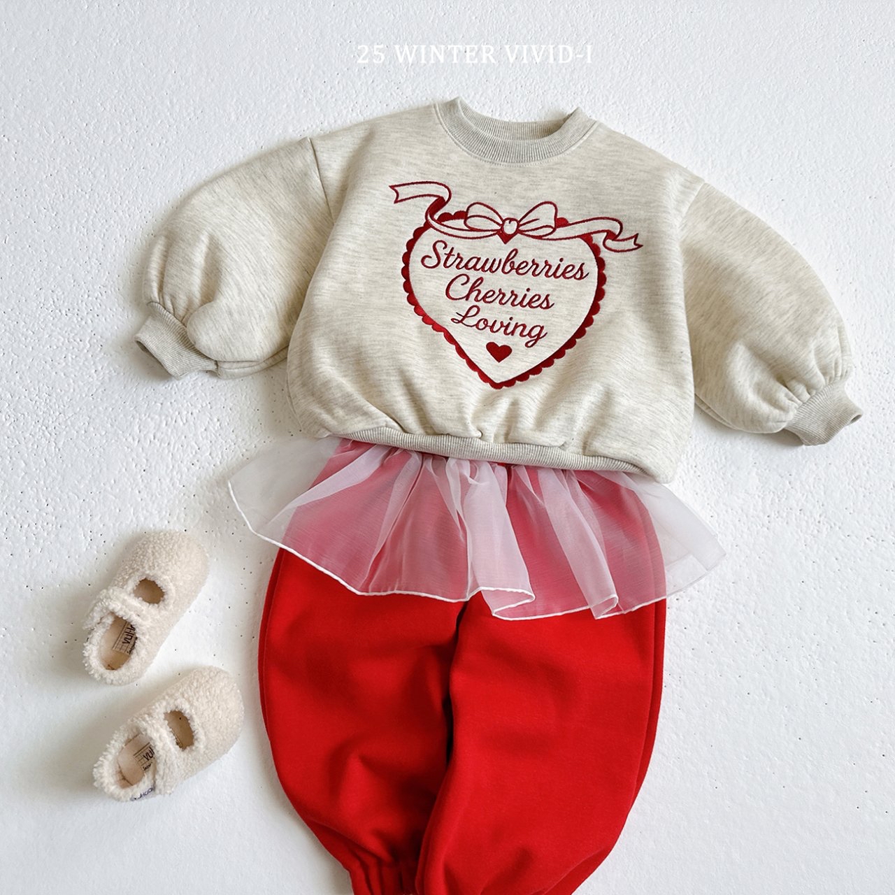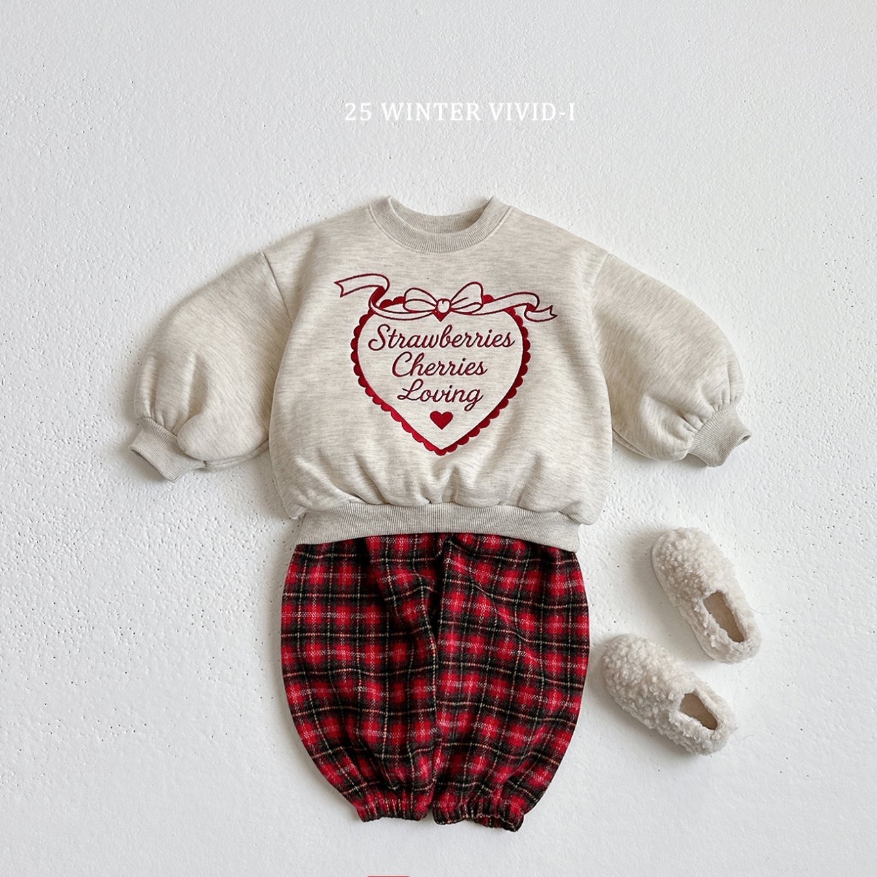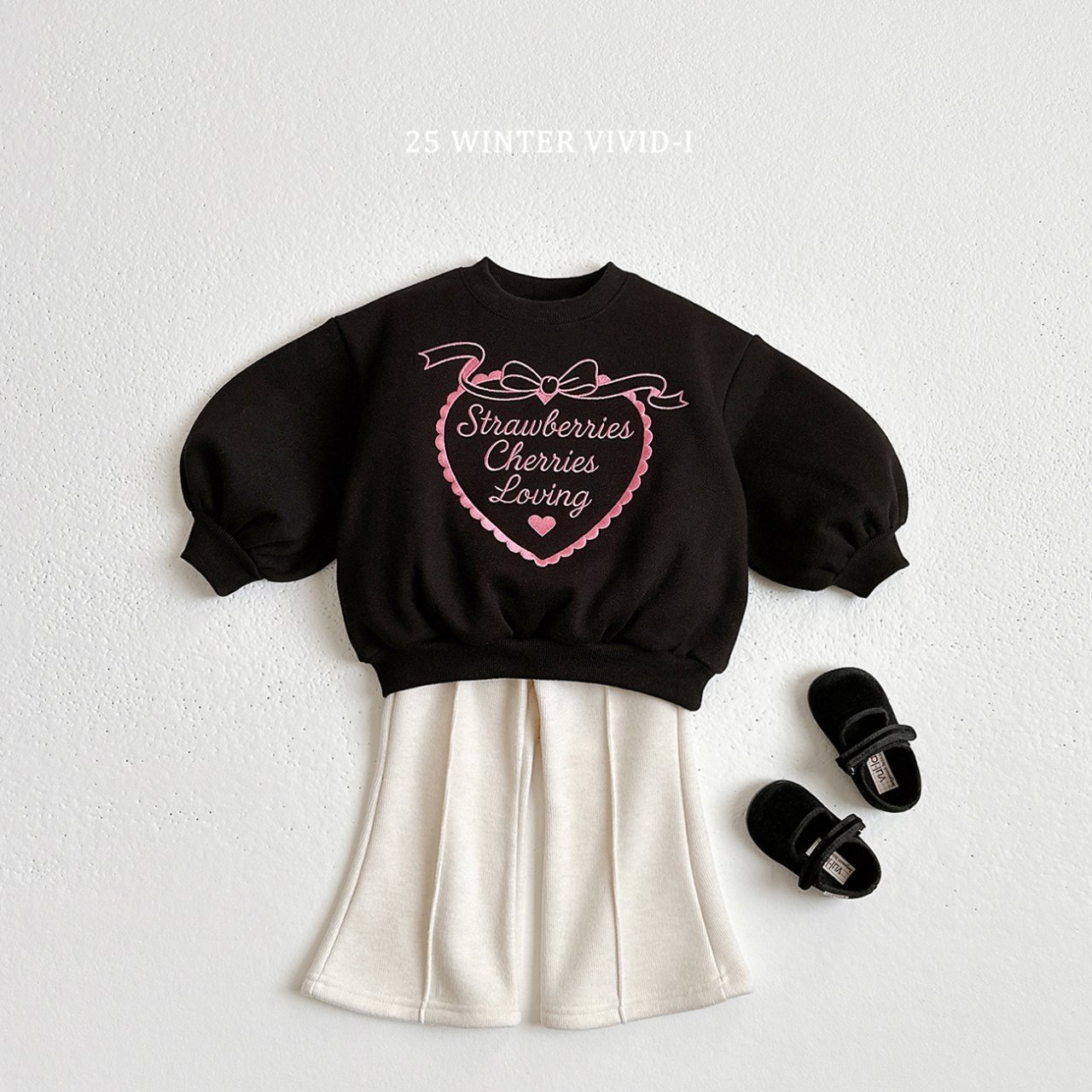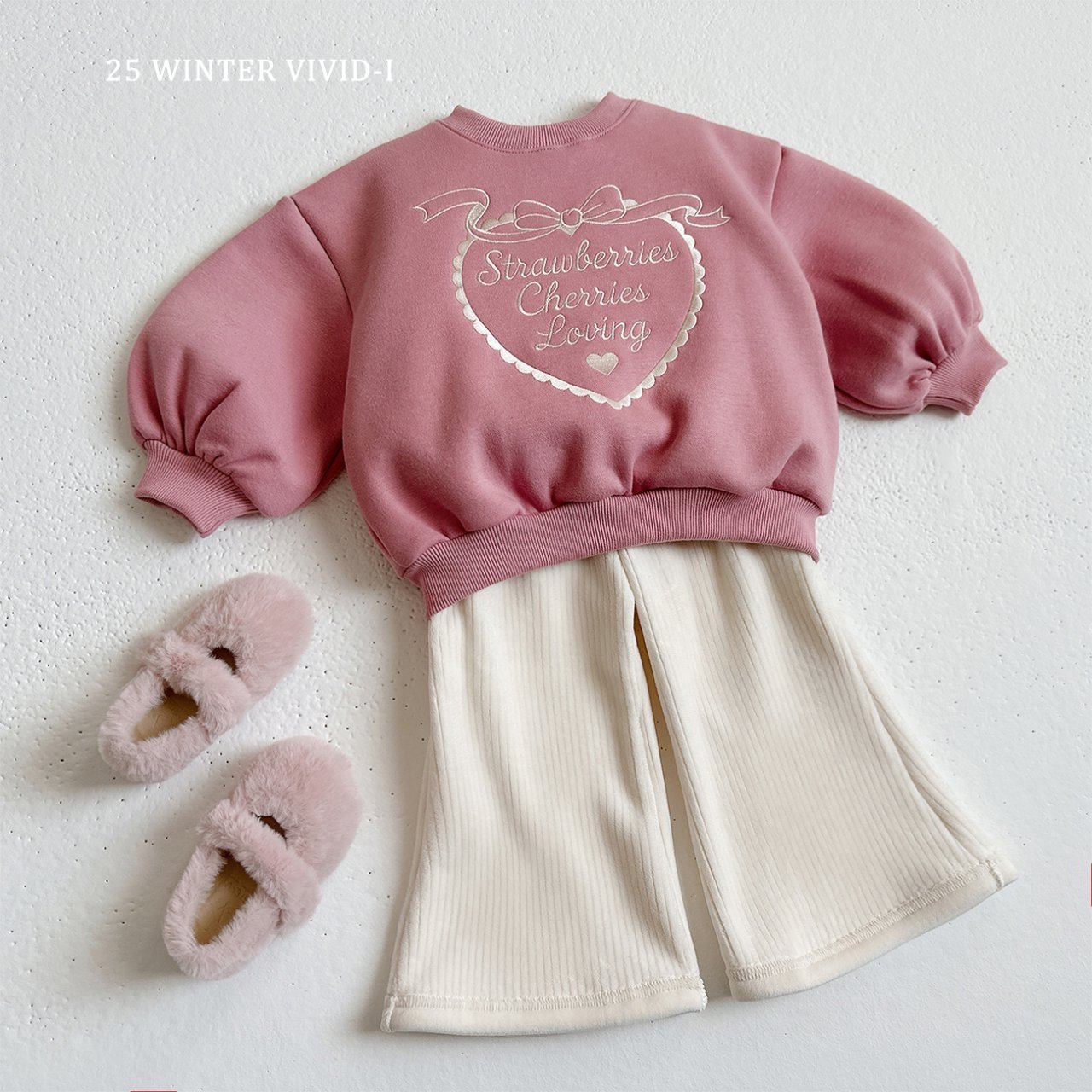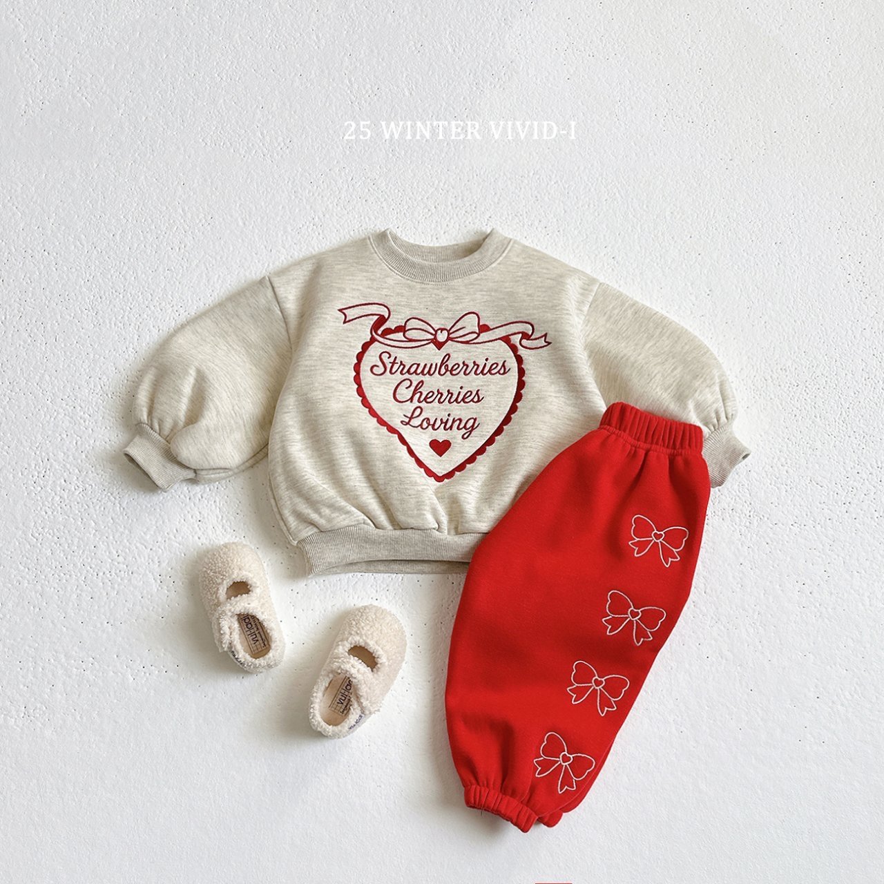 ❄️預訂 韓國直送❄️🇰🇷VIVIDI三色愛心字母刺繡拉絨泡泡袖衛衣上下套裝
