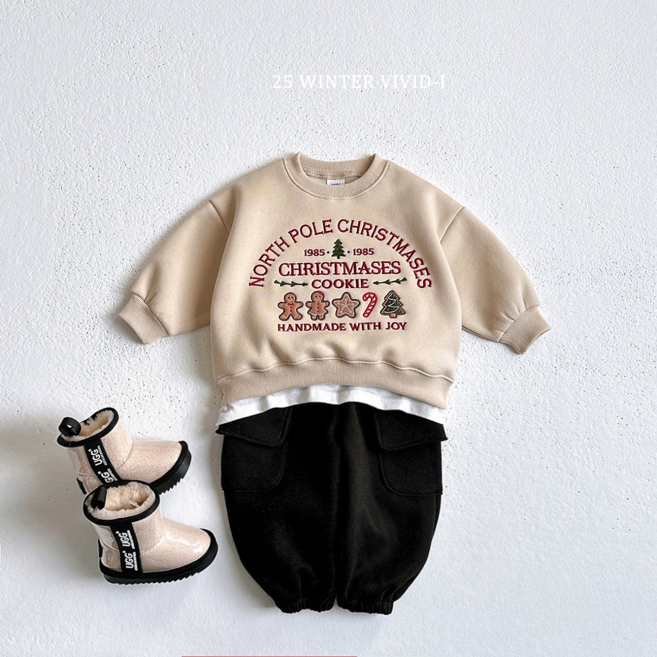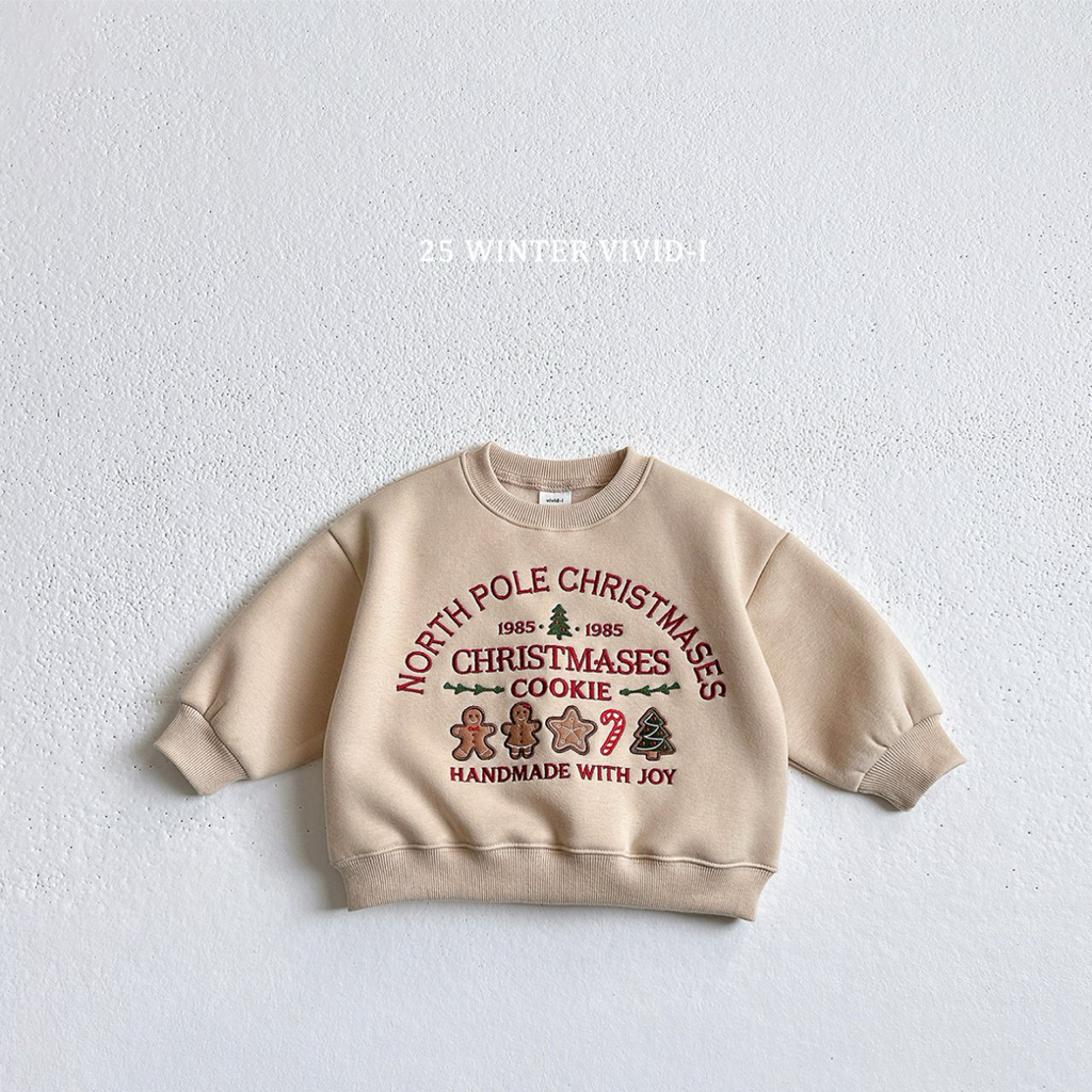 ❄️預訂 韓國直送❄️🇰🇷VIVIDI三色聖誕薑餅人刺繡貼花拉絨衛衣